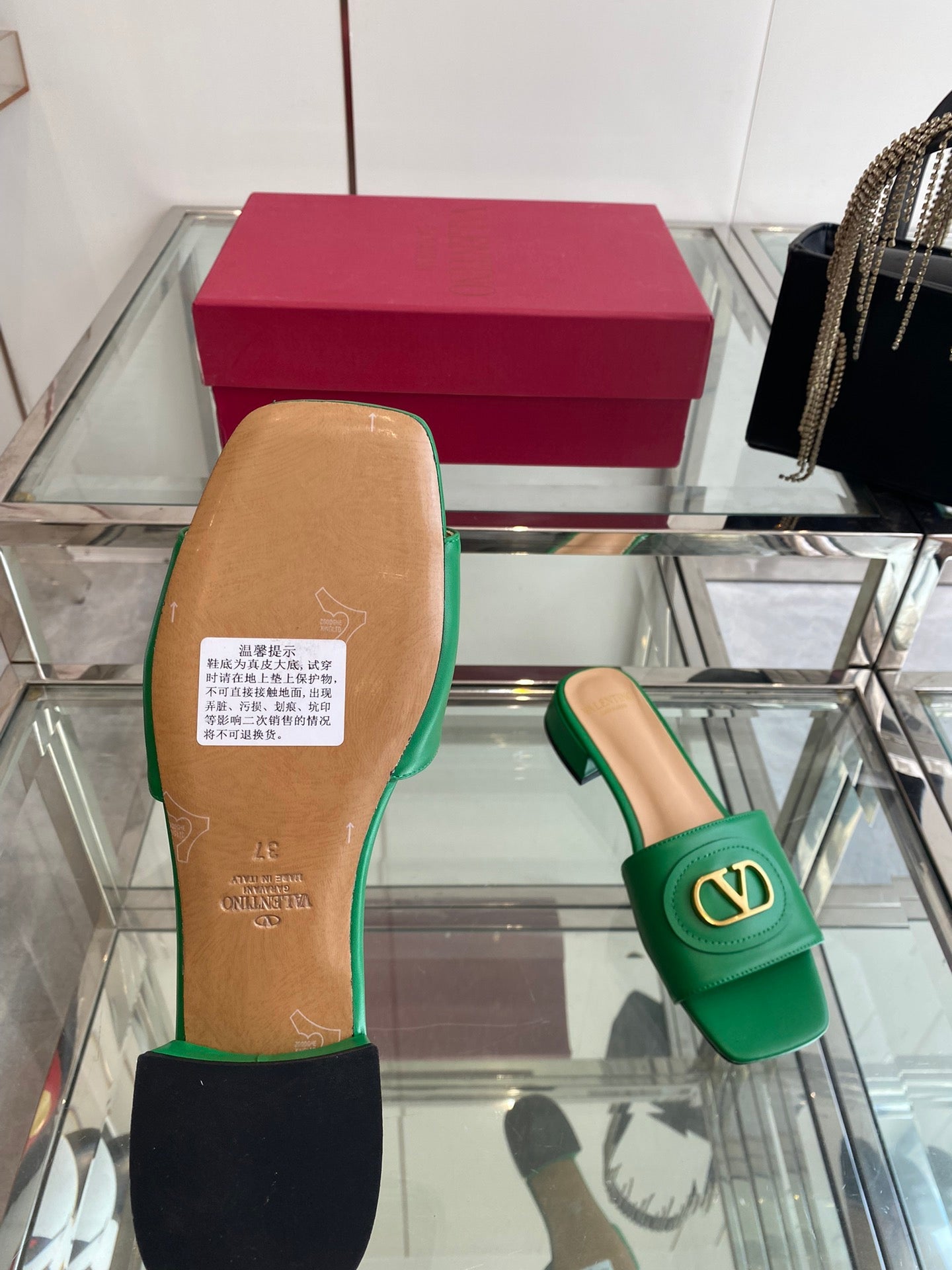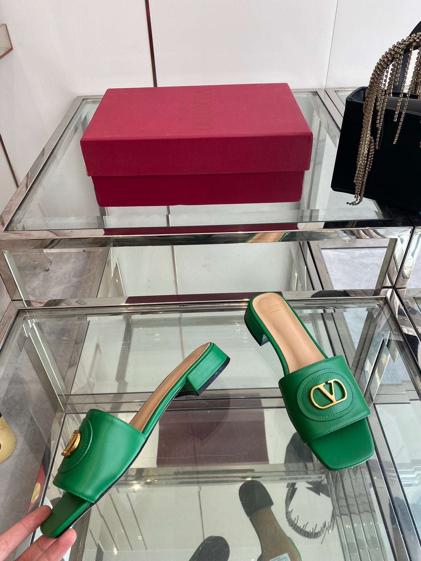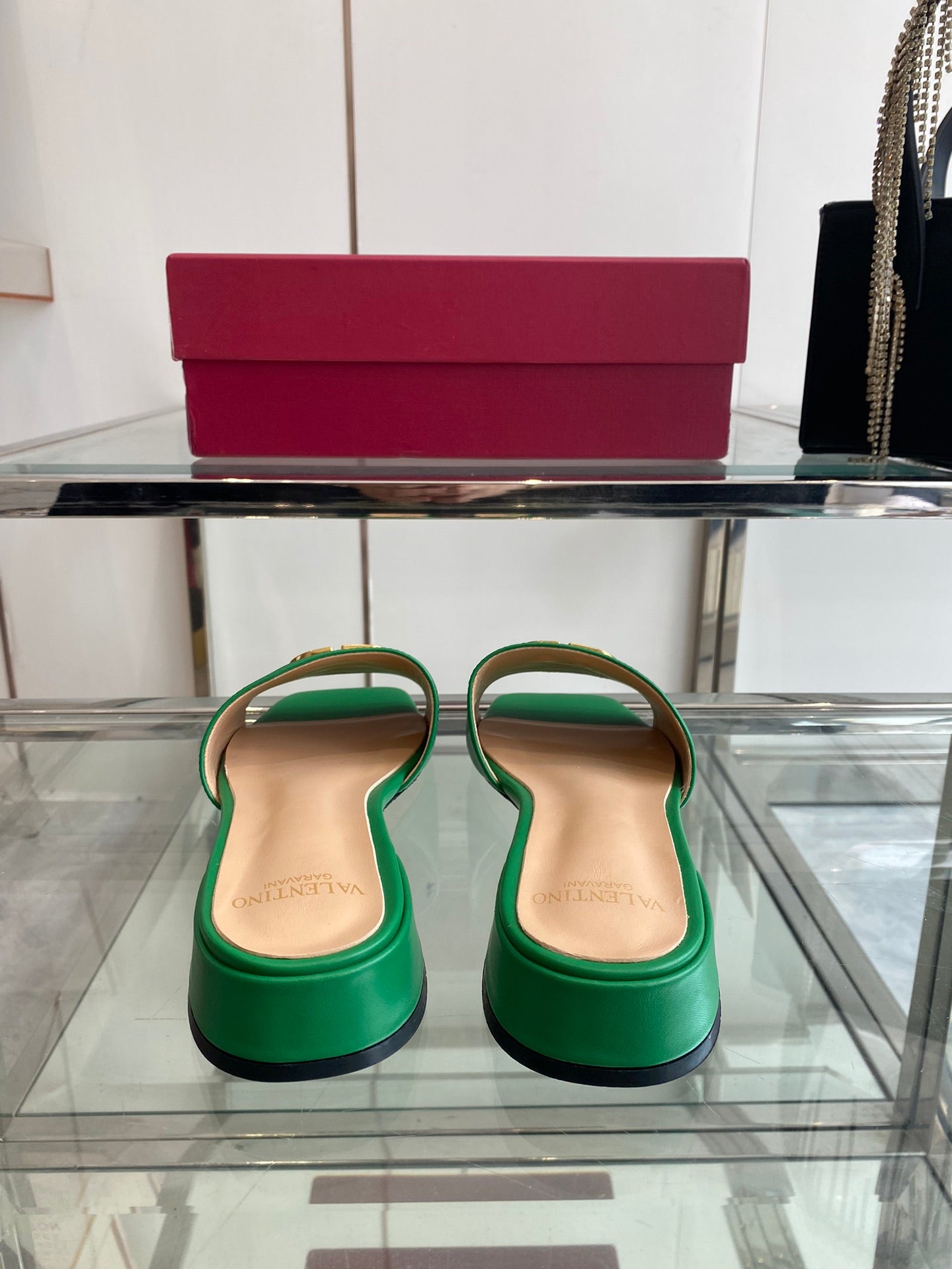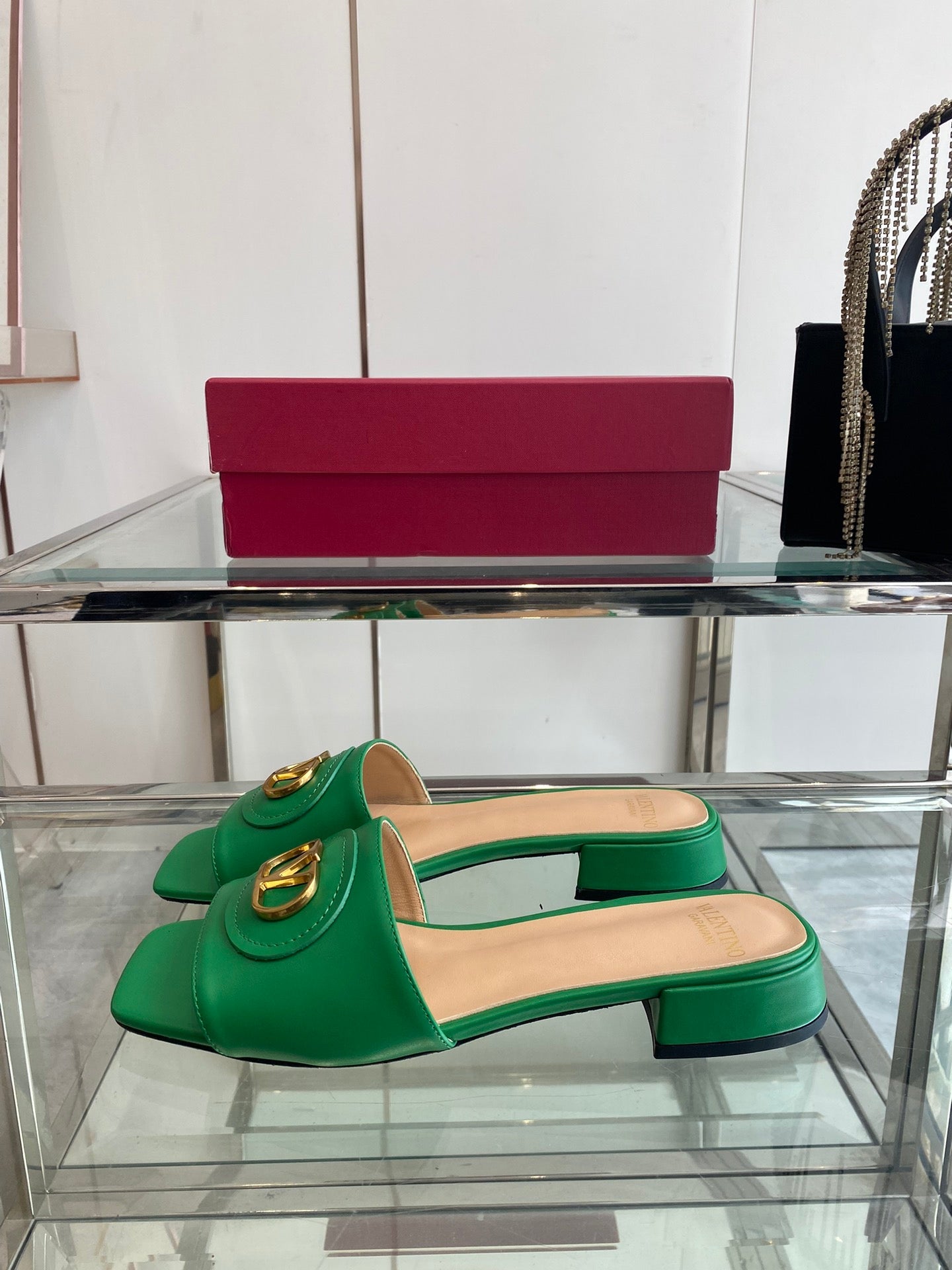 VLTN HIGH HEEL 25S 30 MM IN GREEN LAMBSKIN WITH GOLD HARDWARE
