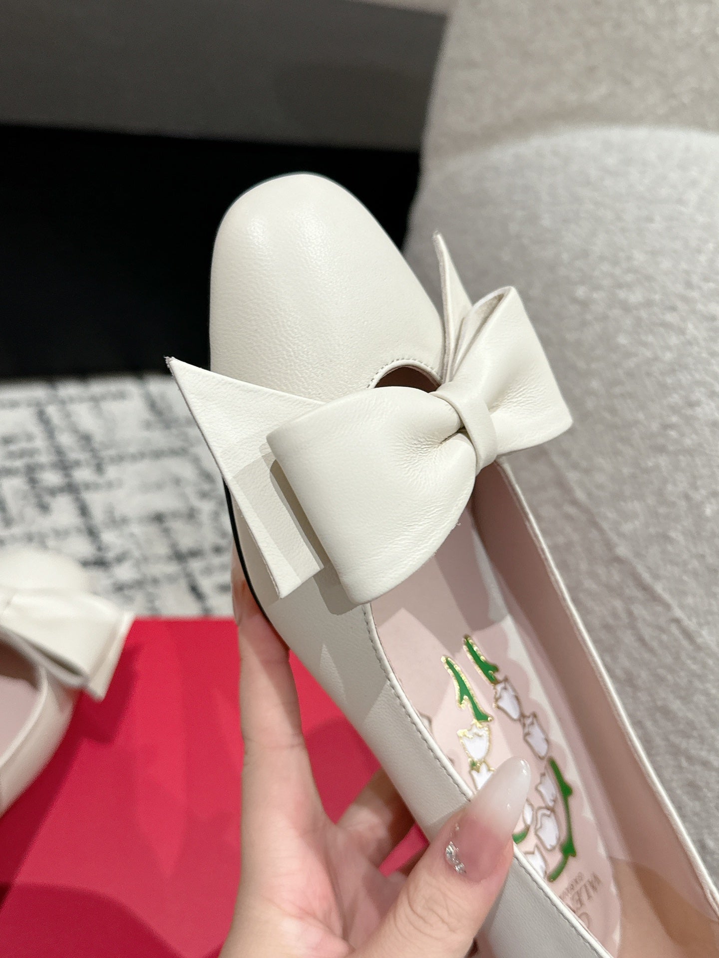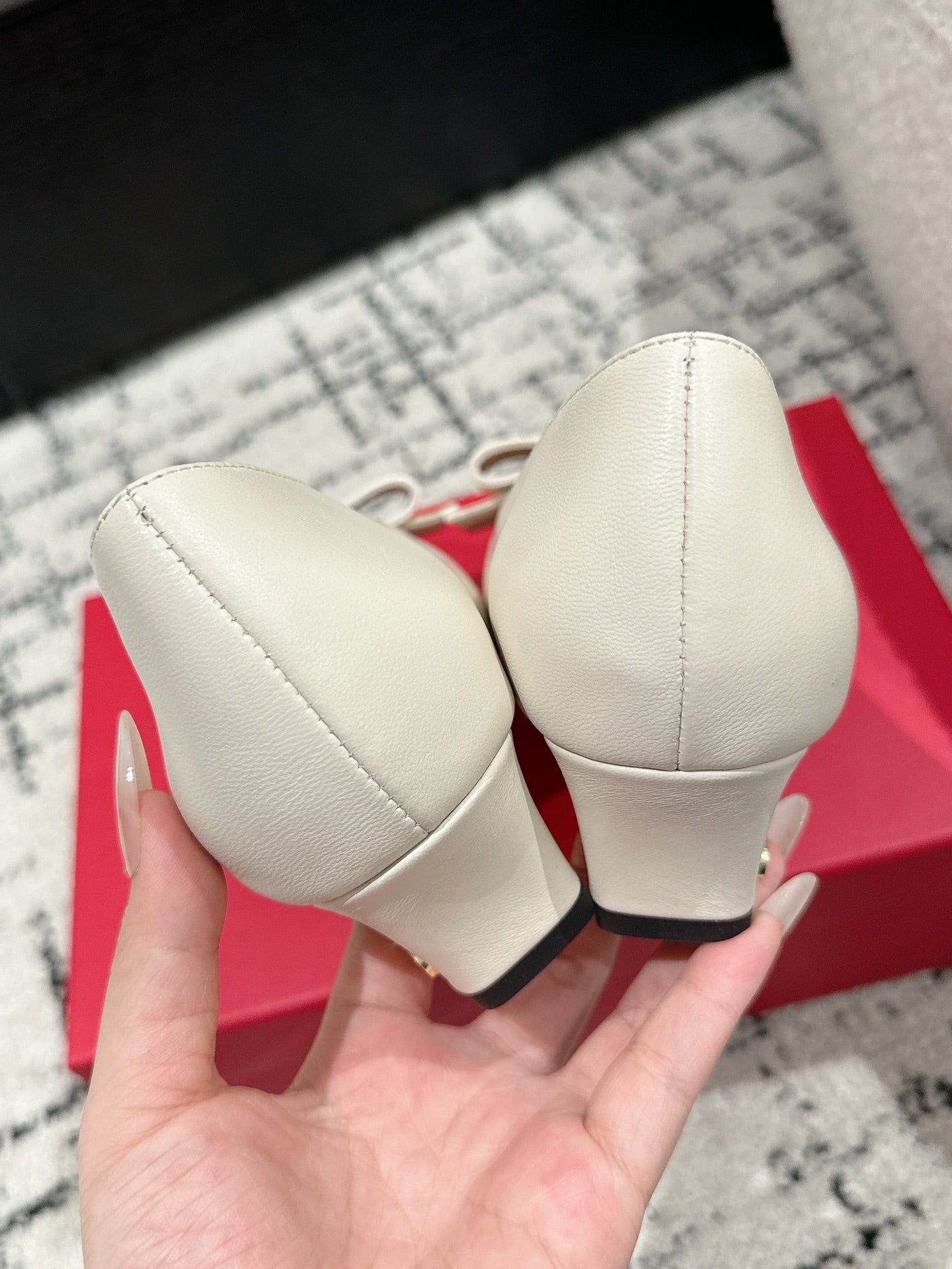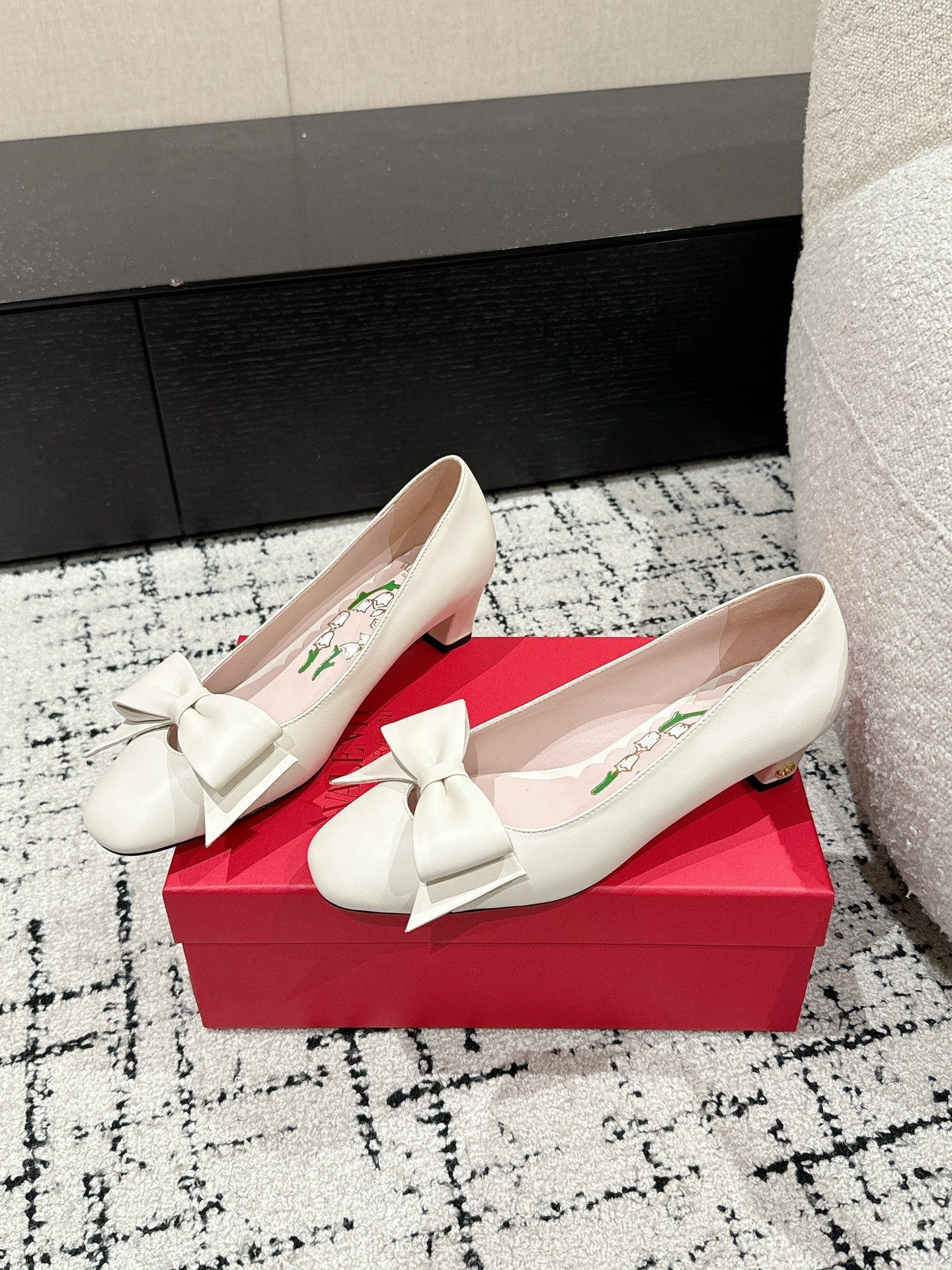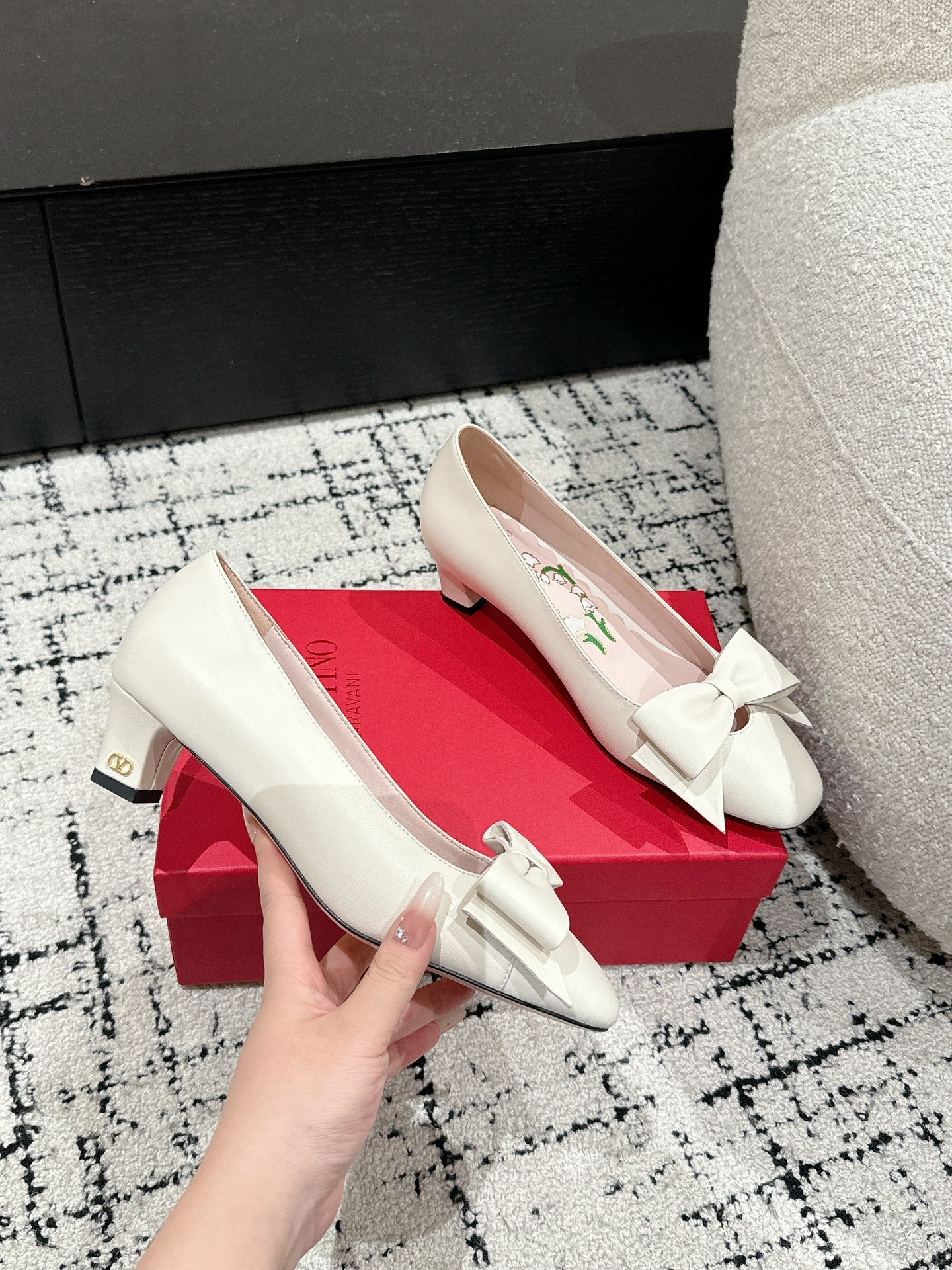 VLTN HIGH HEEL 25S 40 MM IN CREAM WHITE CALFSKIN WITH BOW