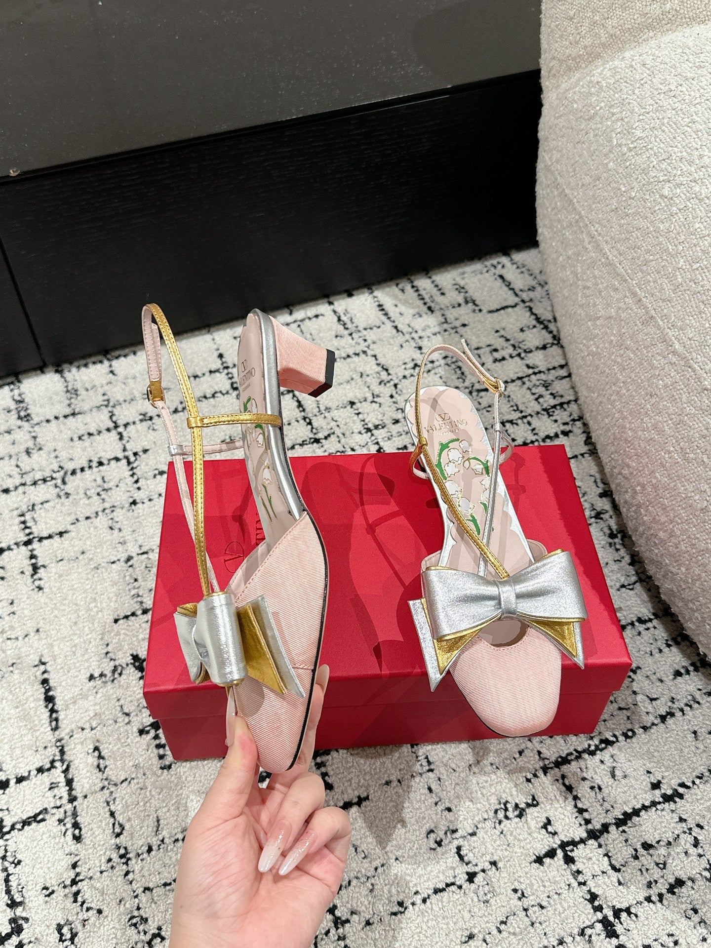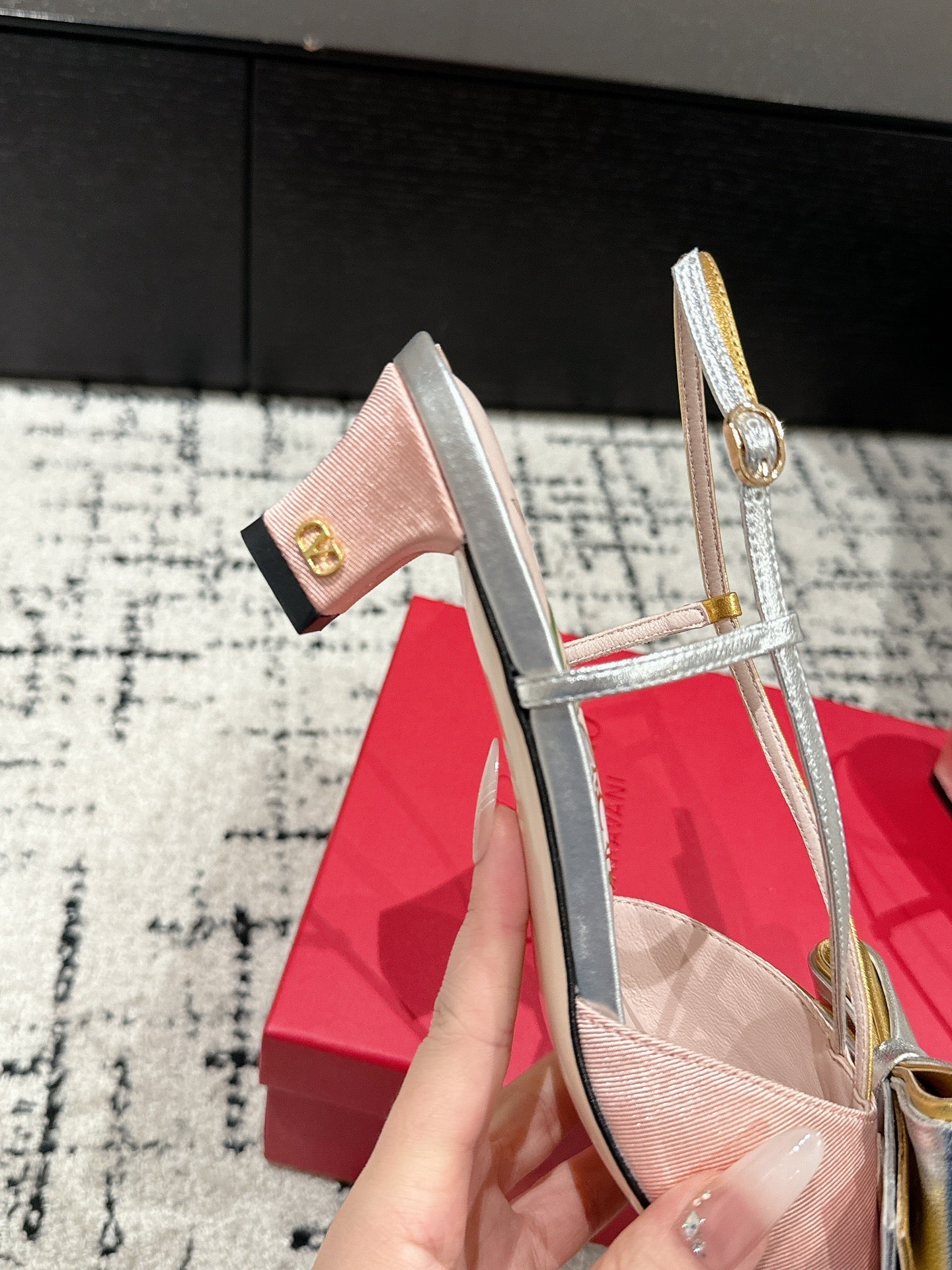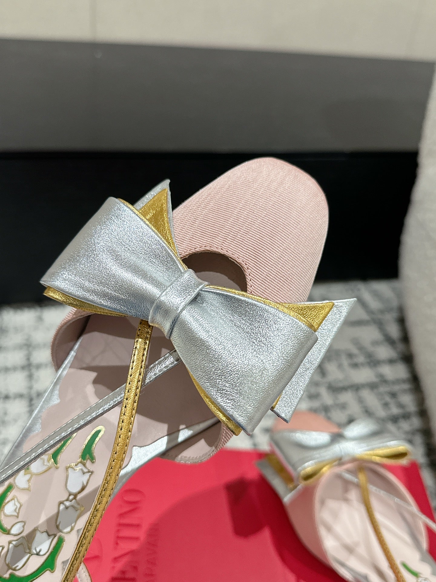 VLTN HIGH HEEL 25S 40 MM IN LIGHT PINK FABRIC MIX SILVER CALFSKIN WITH BOW