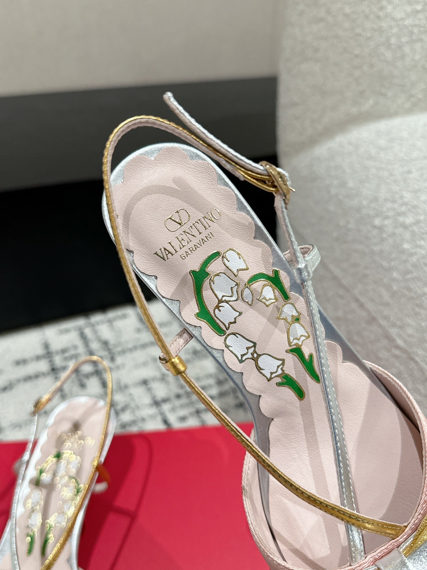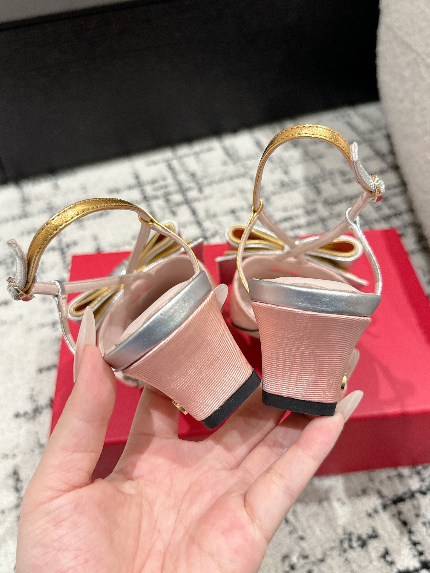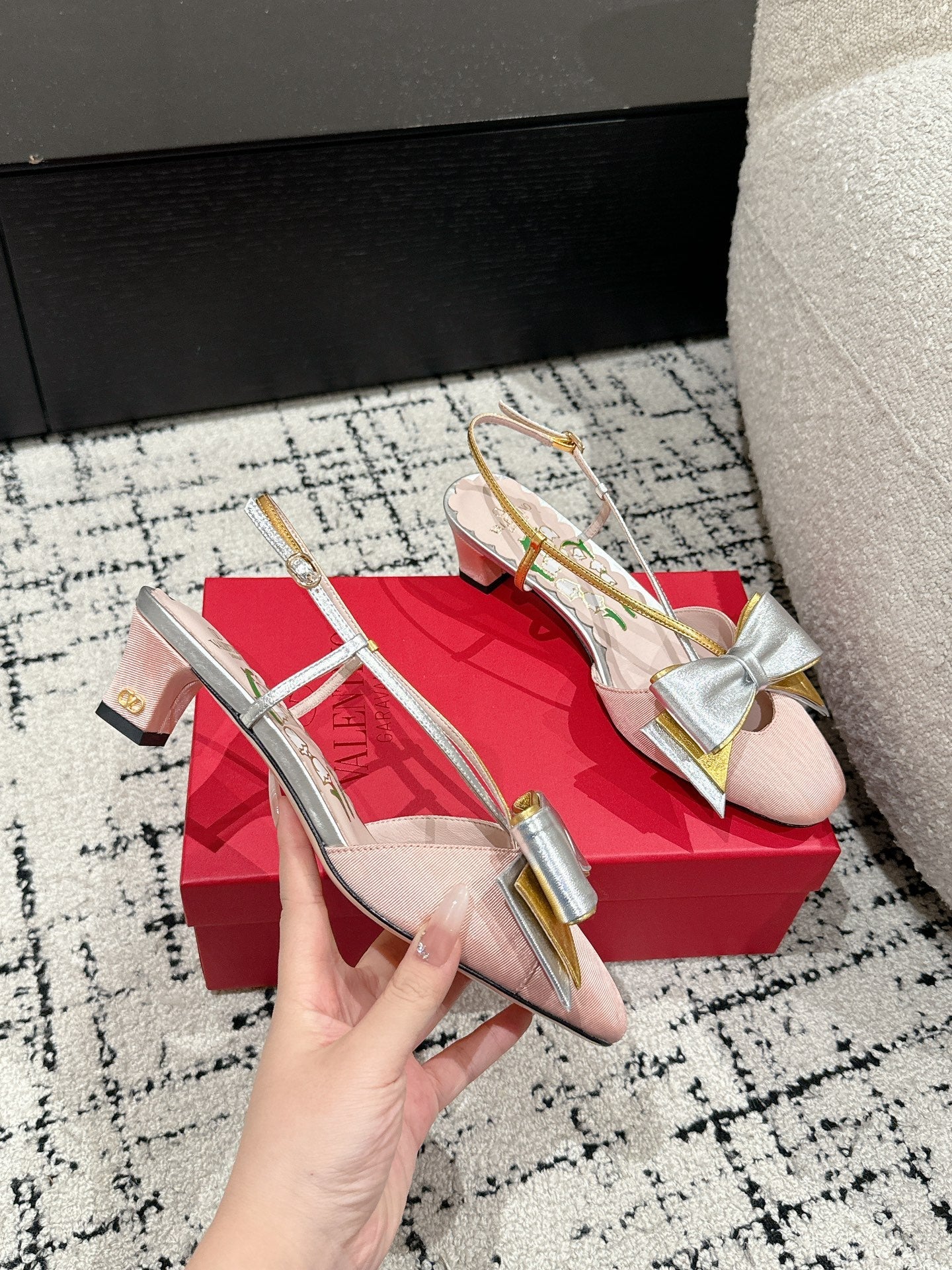 VLTN HIGH HEEL 25S 40 MM IN LIGHT PINK FABRIC MIX SILVER CALFSKIN WITH BOW