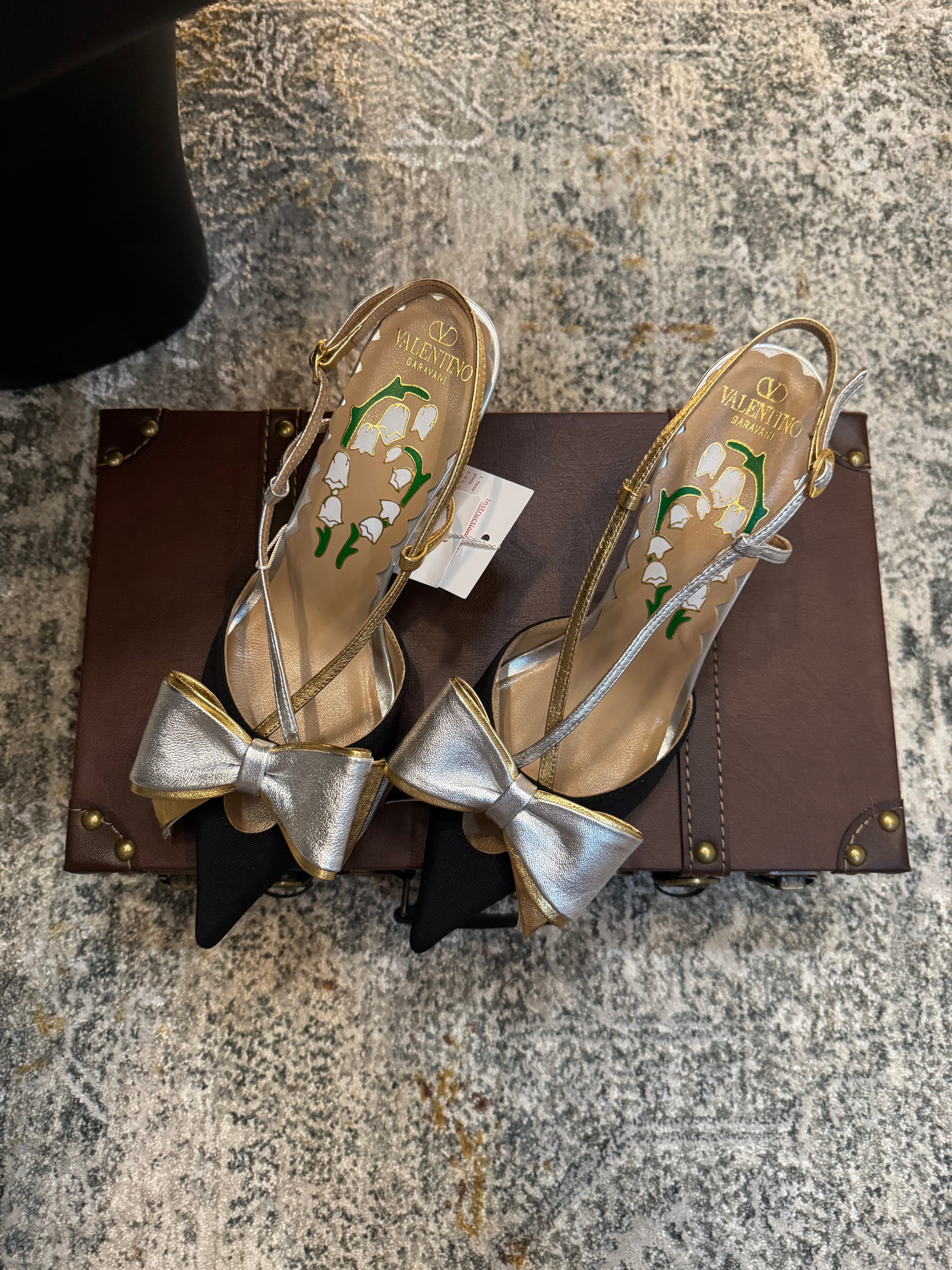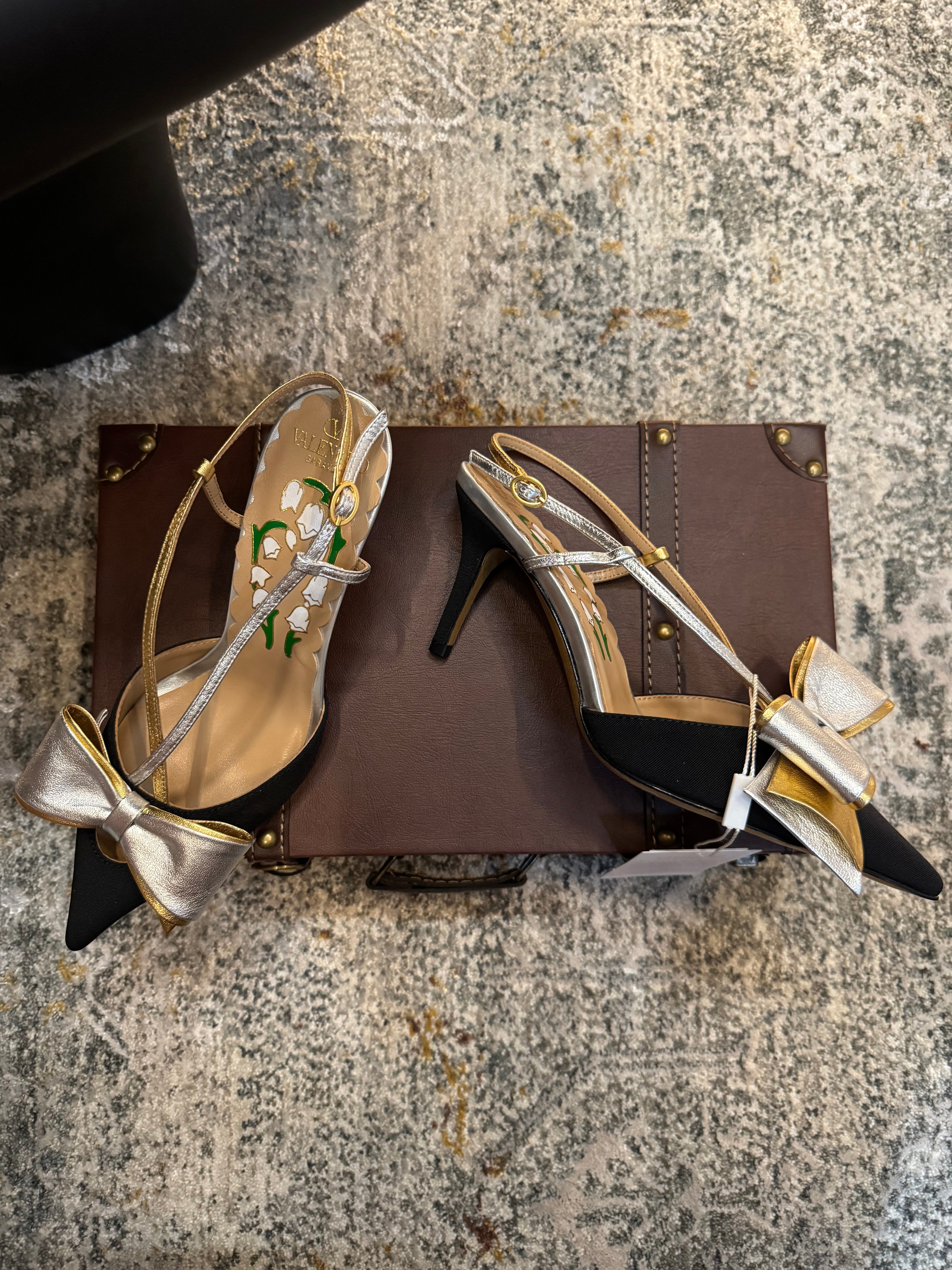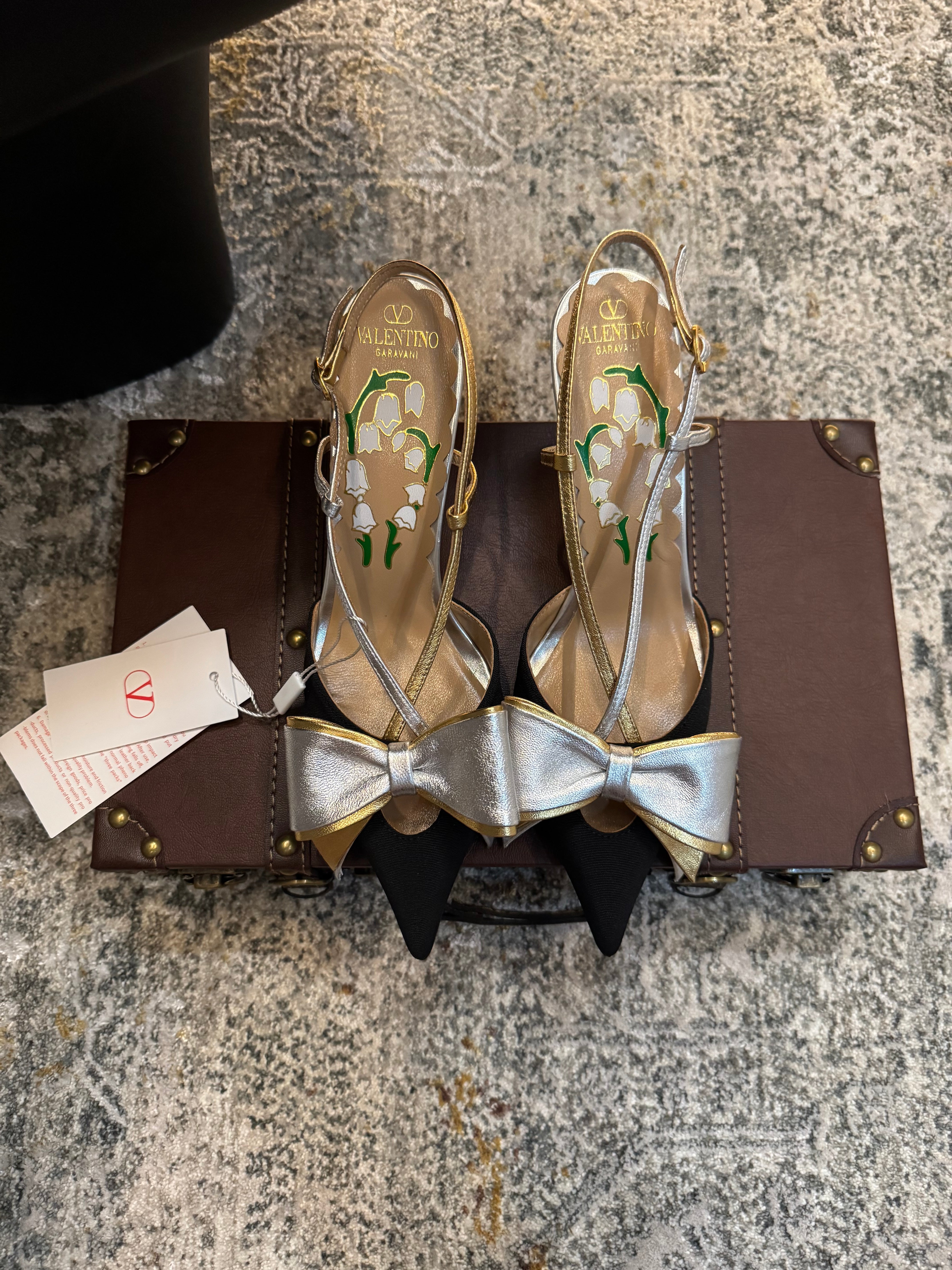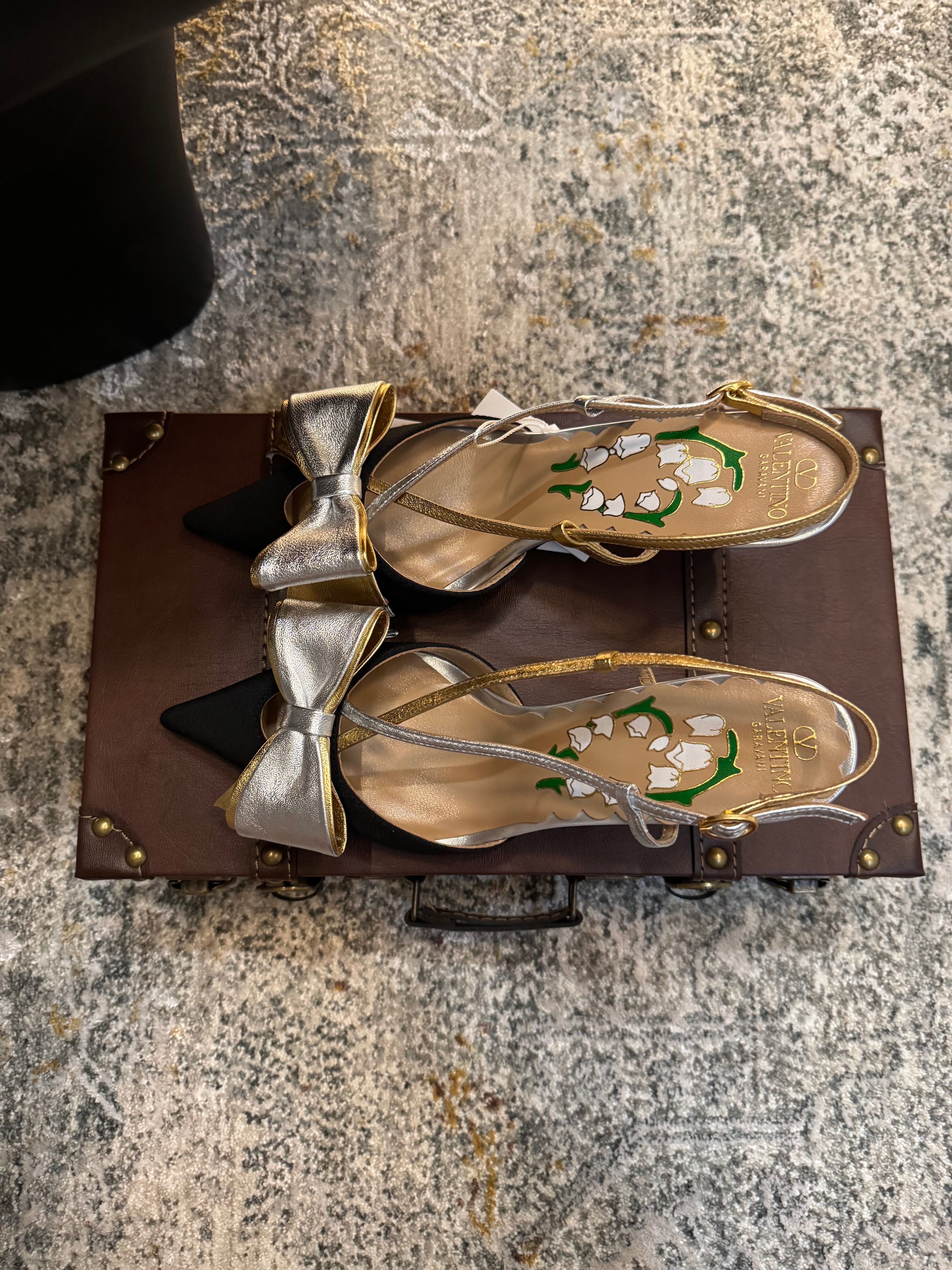 VLTN HIGH HEEL 25S 80 MM IN BLACK FABRIC MIX SILVER CALFSKIN WITH BOW