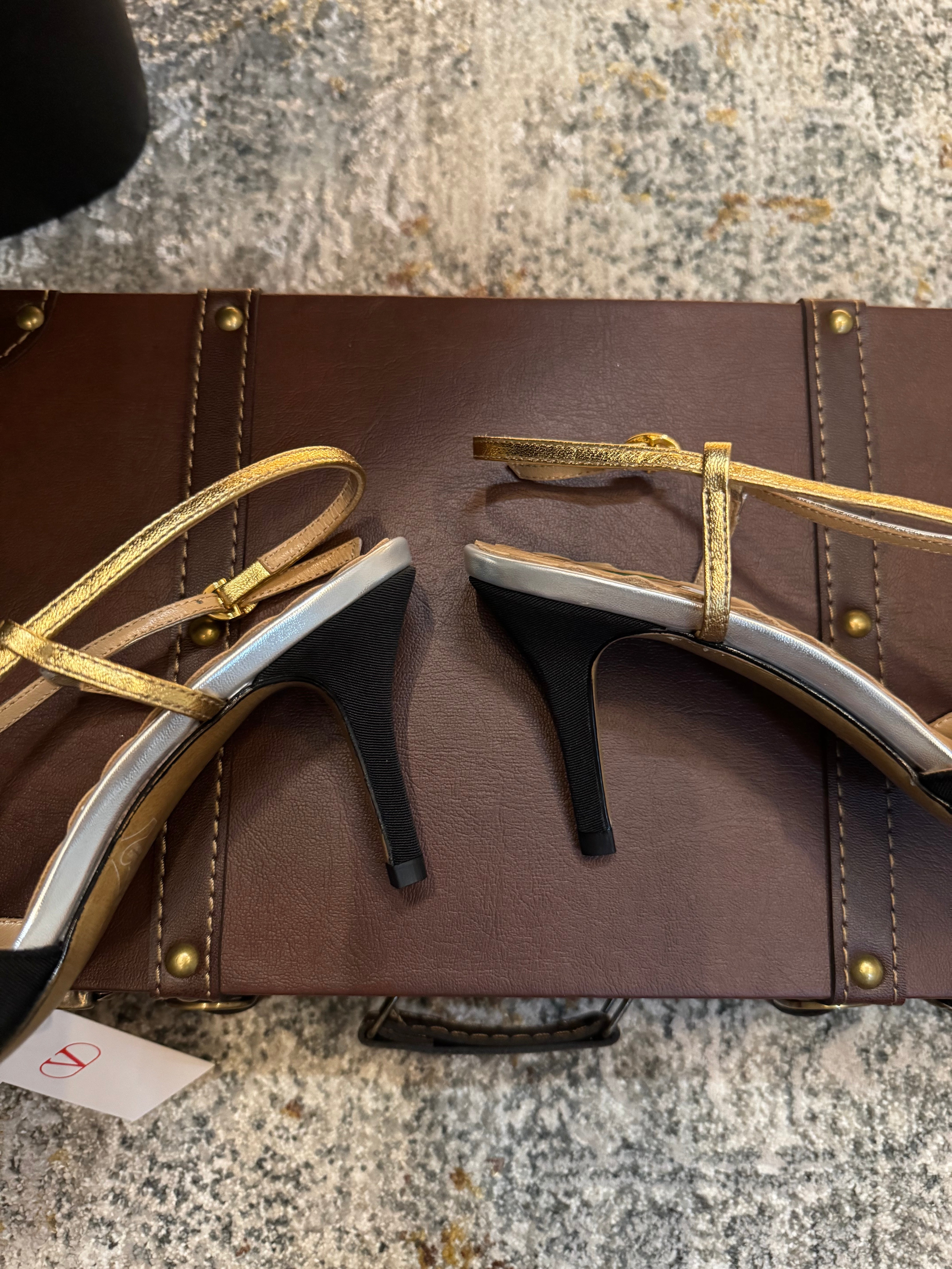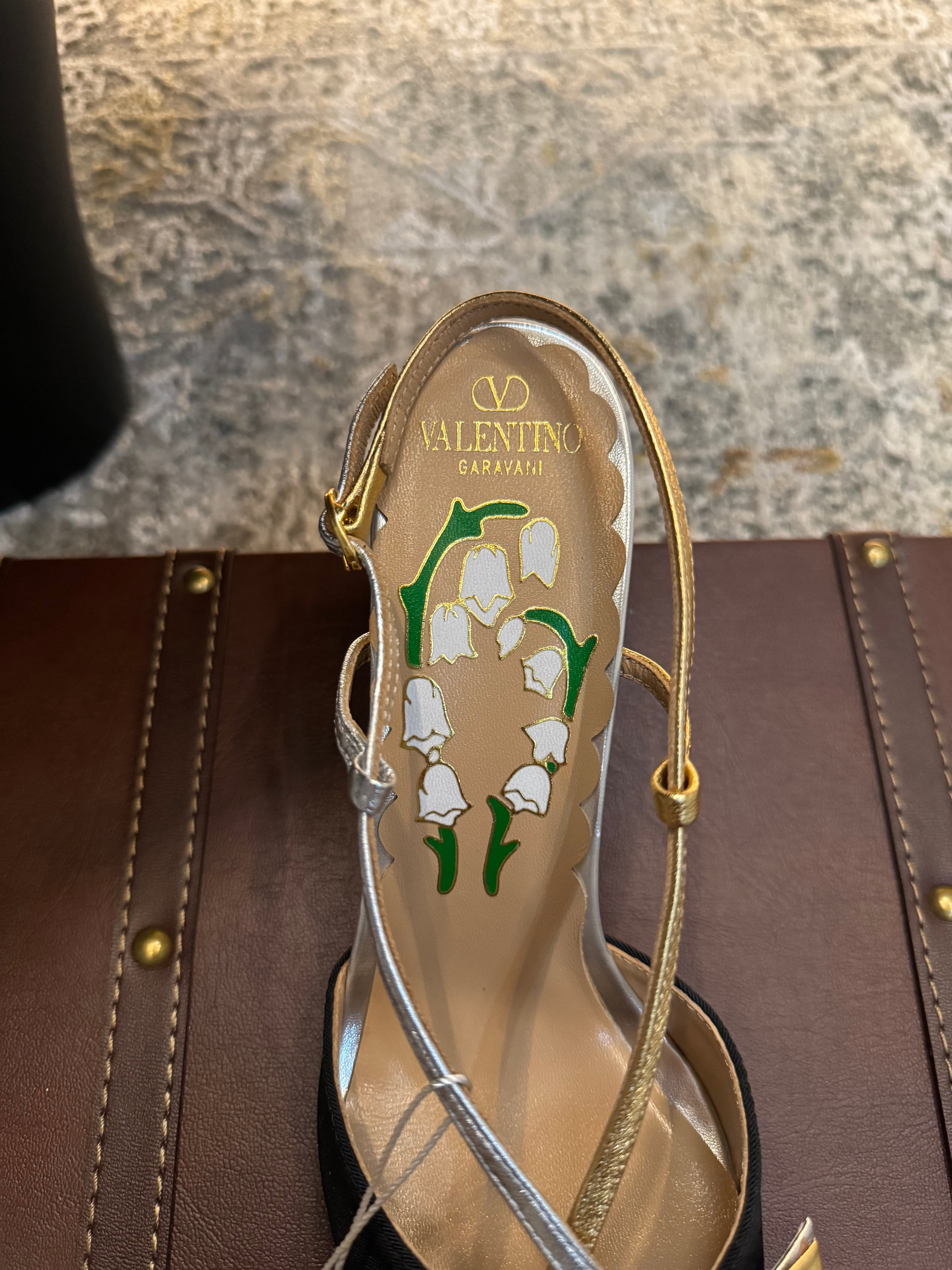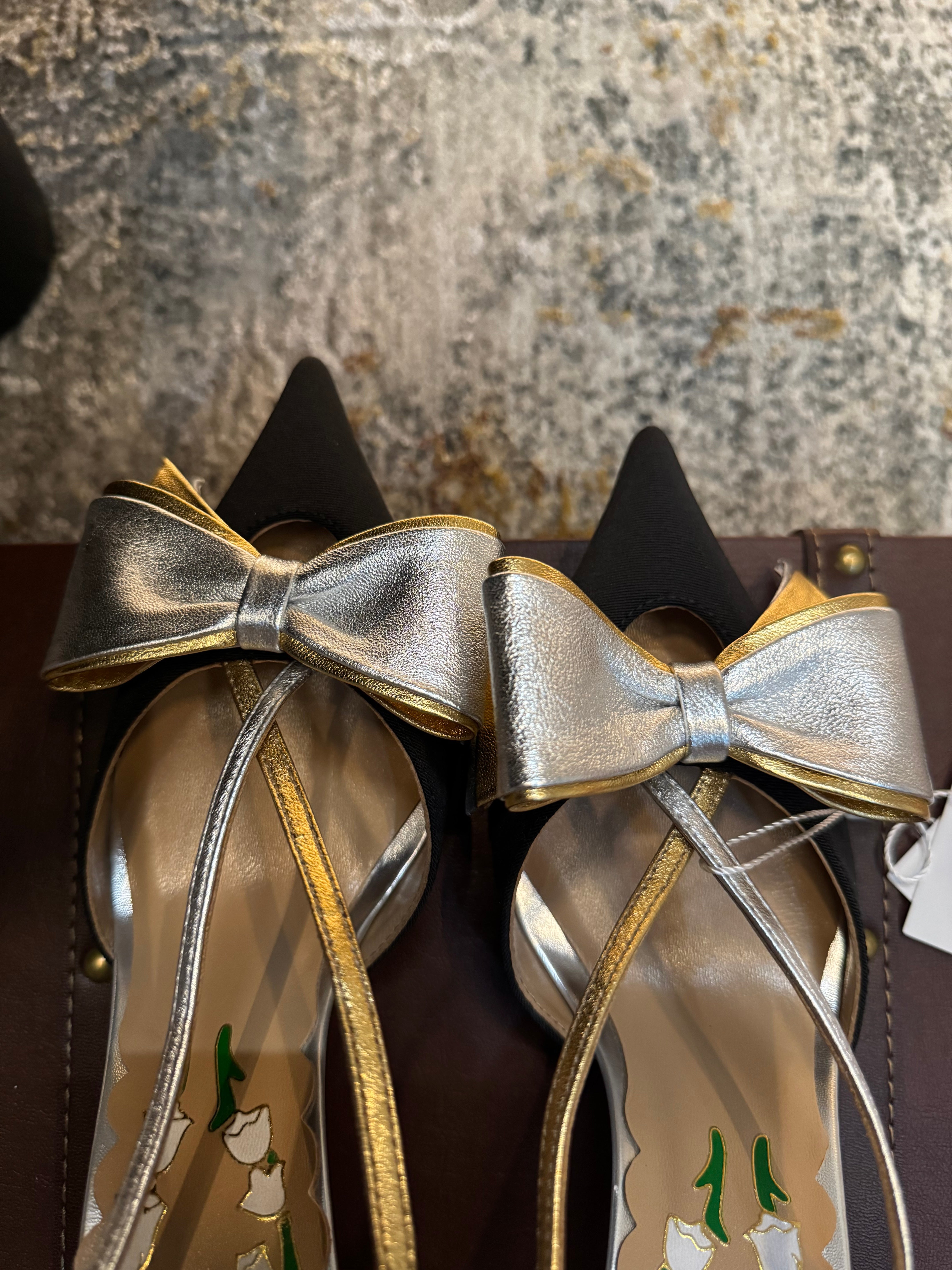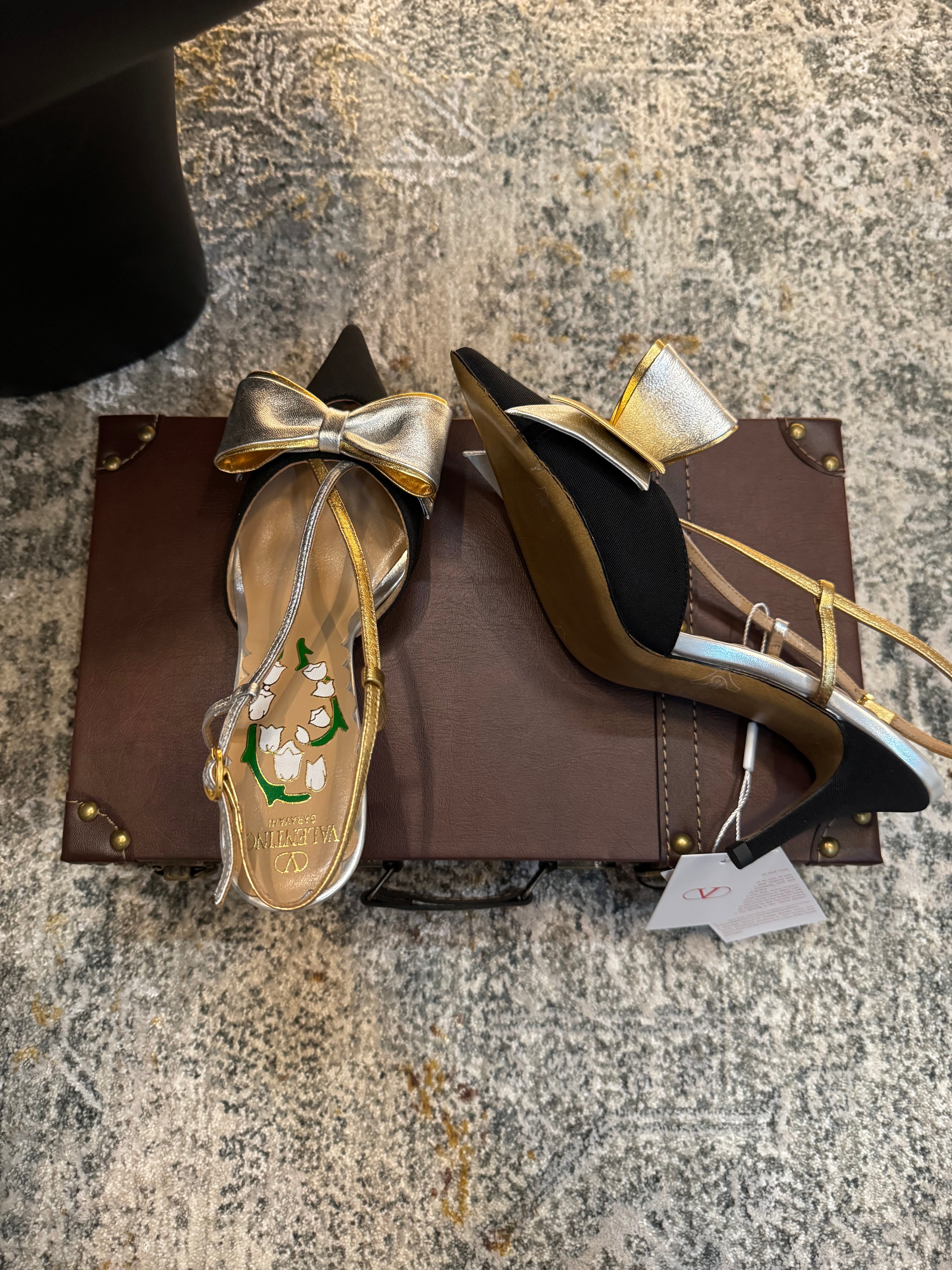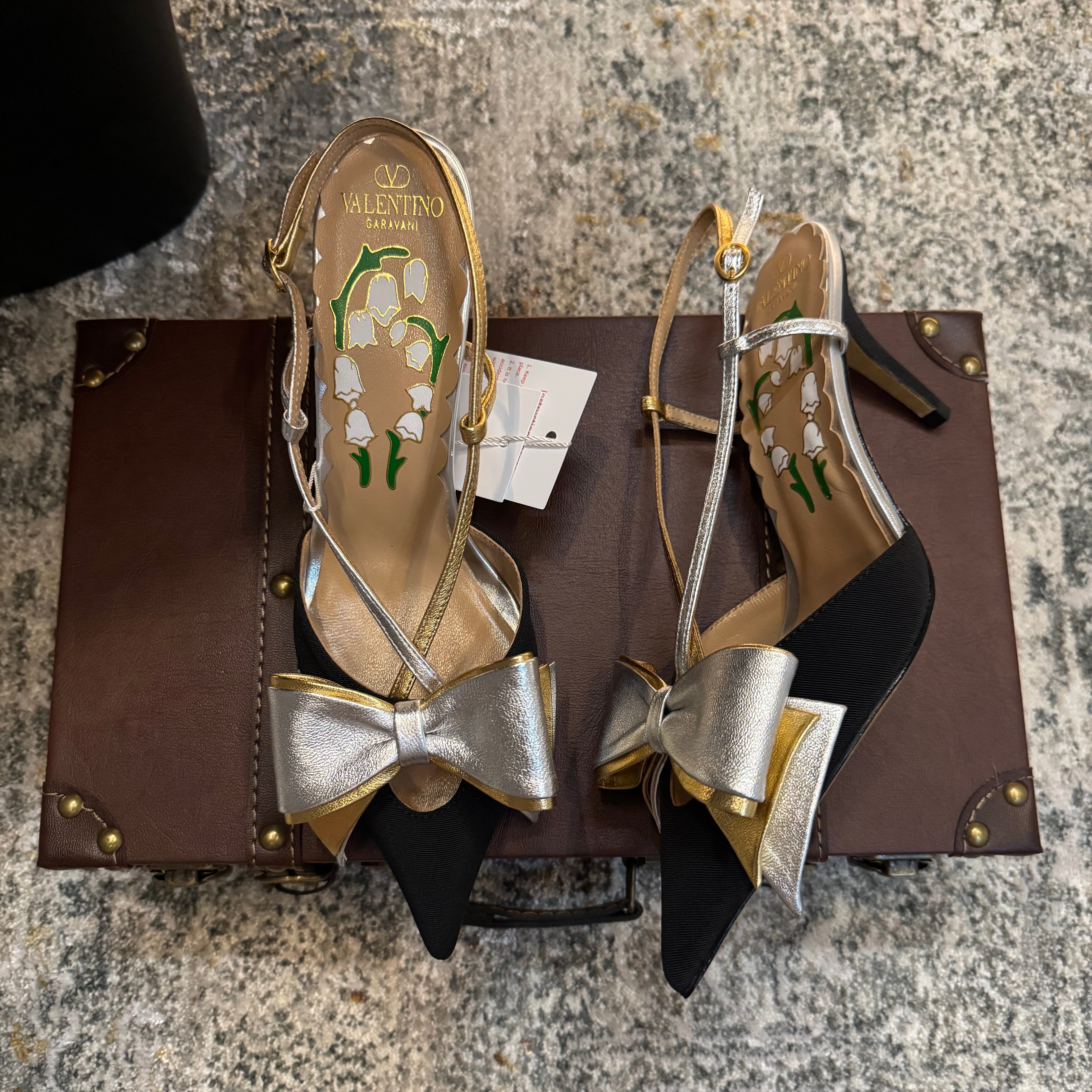 VLTN HIGH HEEL 25S 80 MM IN BLACK FABRIC MIX SILVER CALFSKIN WITH BOW
