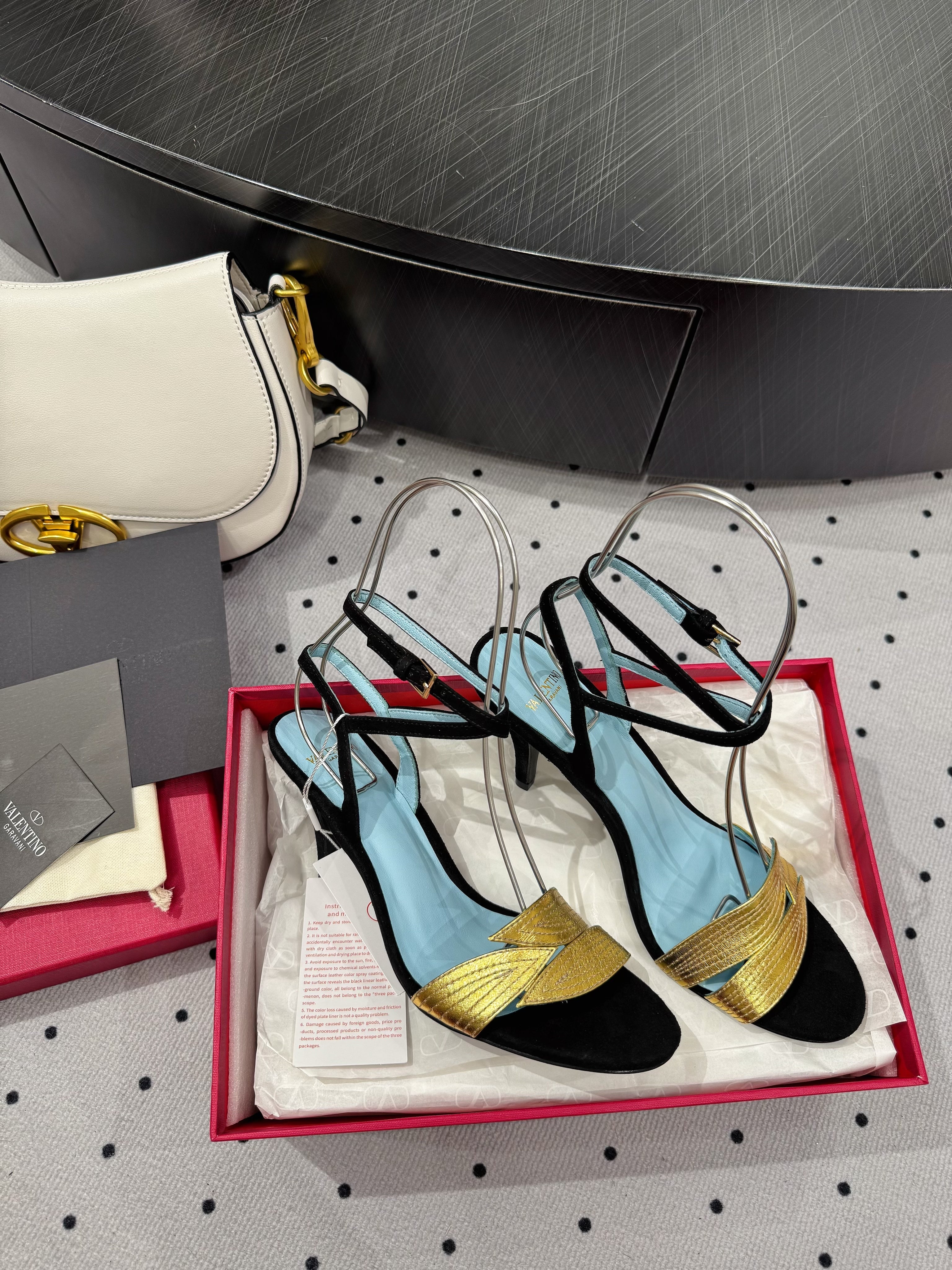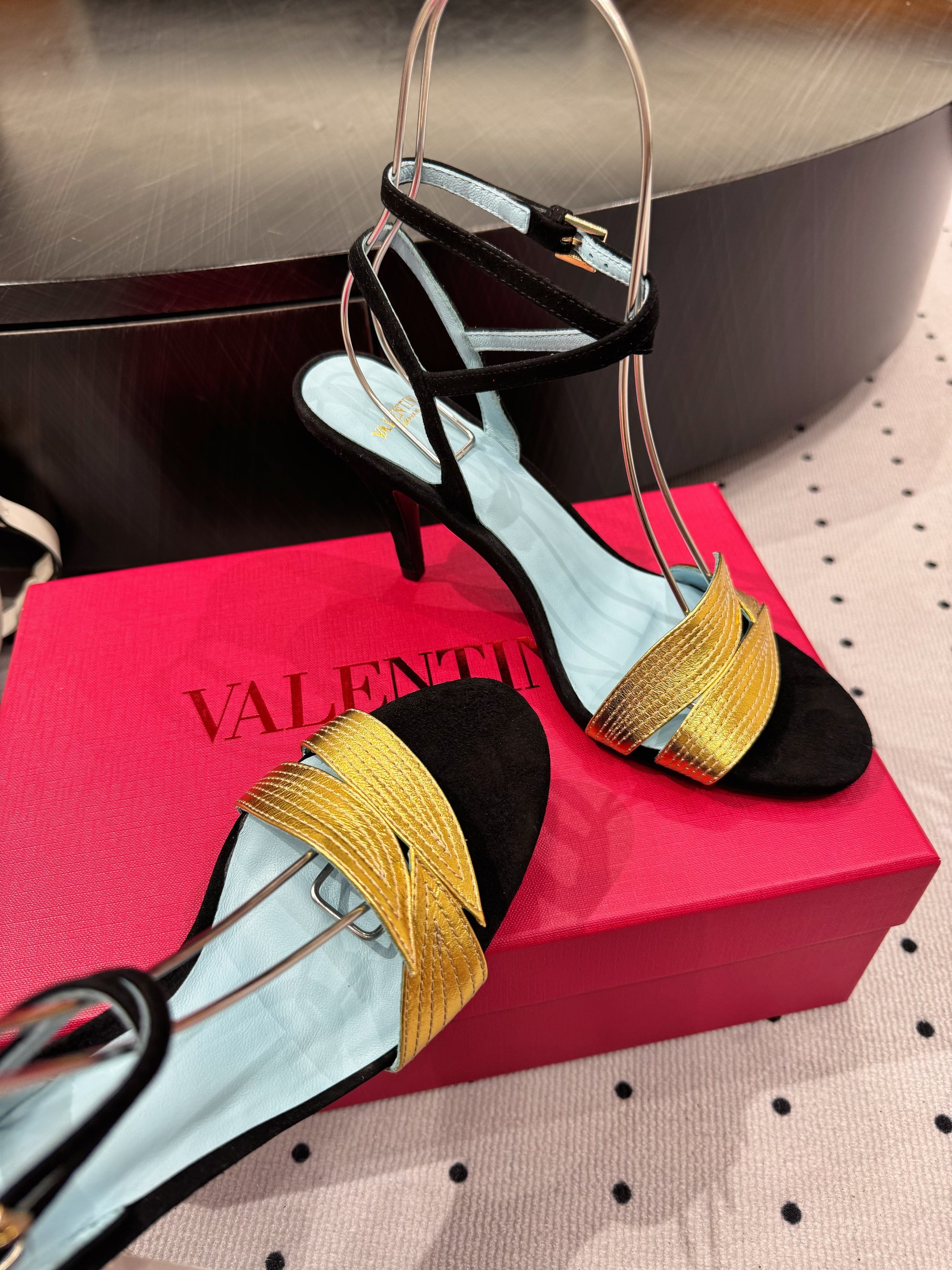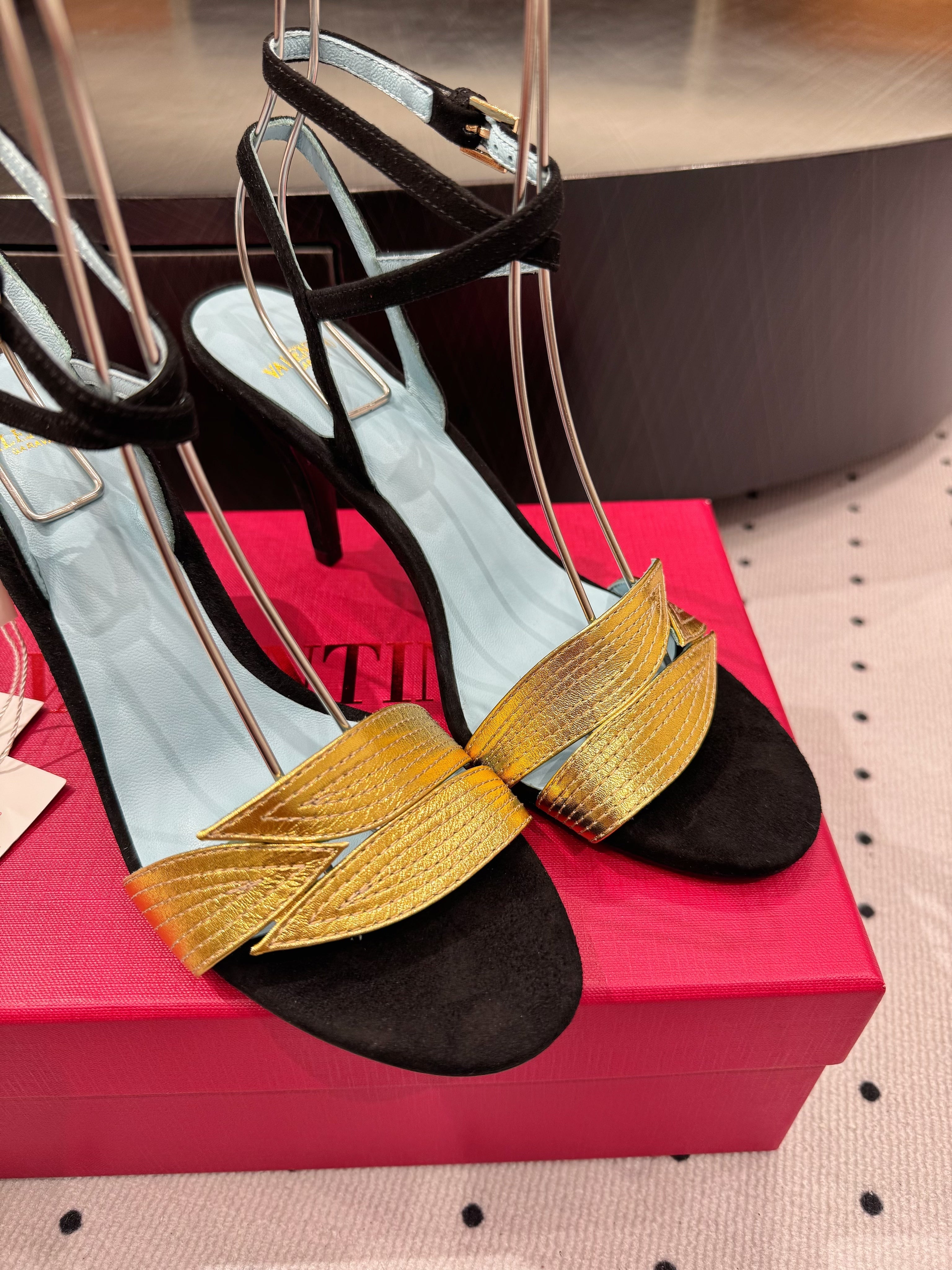 VLTN HIGH SANDAL 25S 60 MM IN BLACK SUEDE AND GOLD CALFSKIN