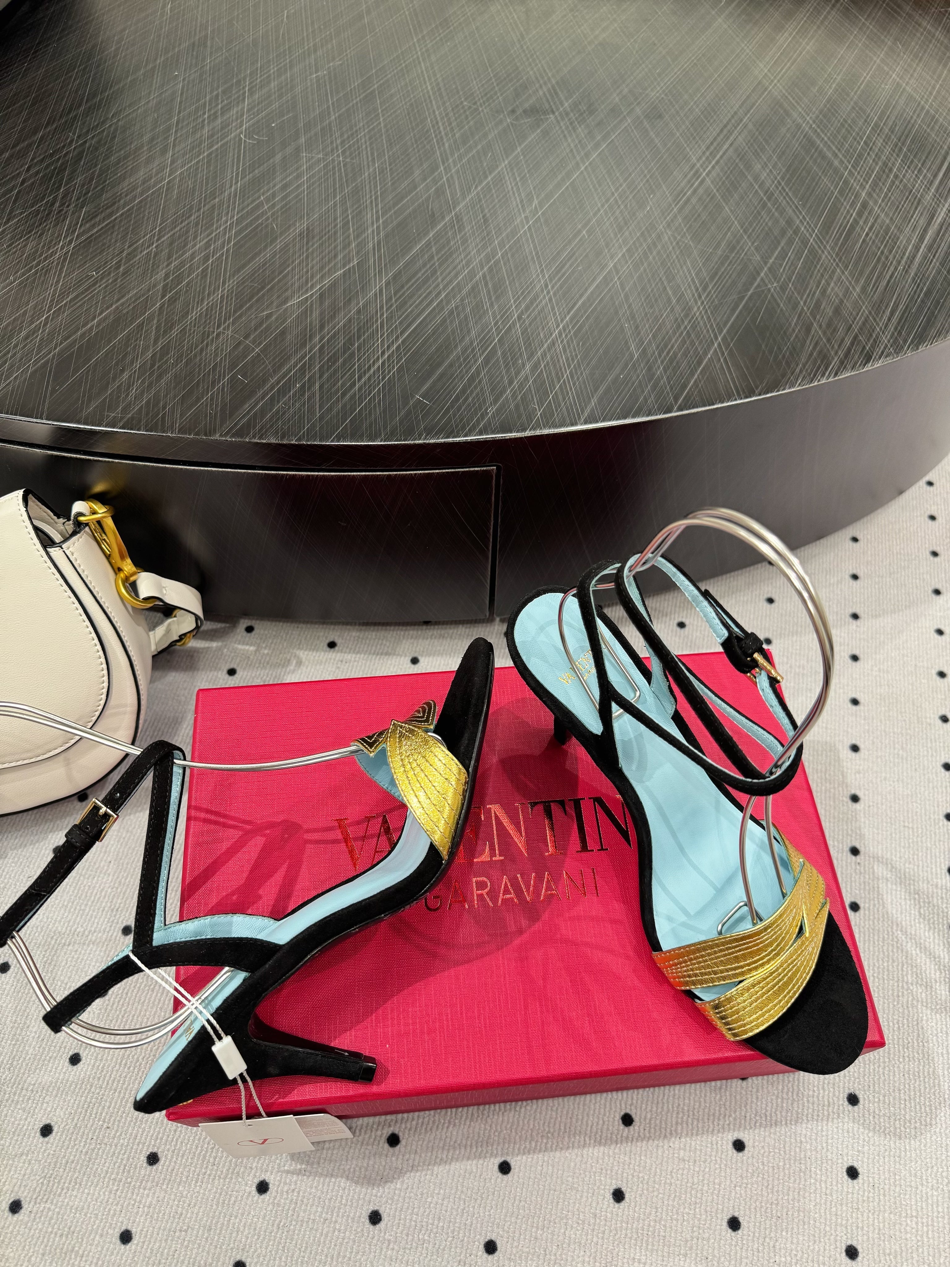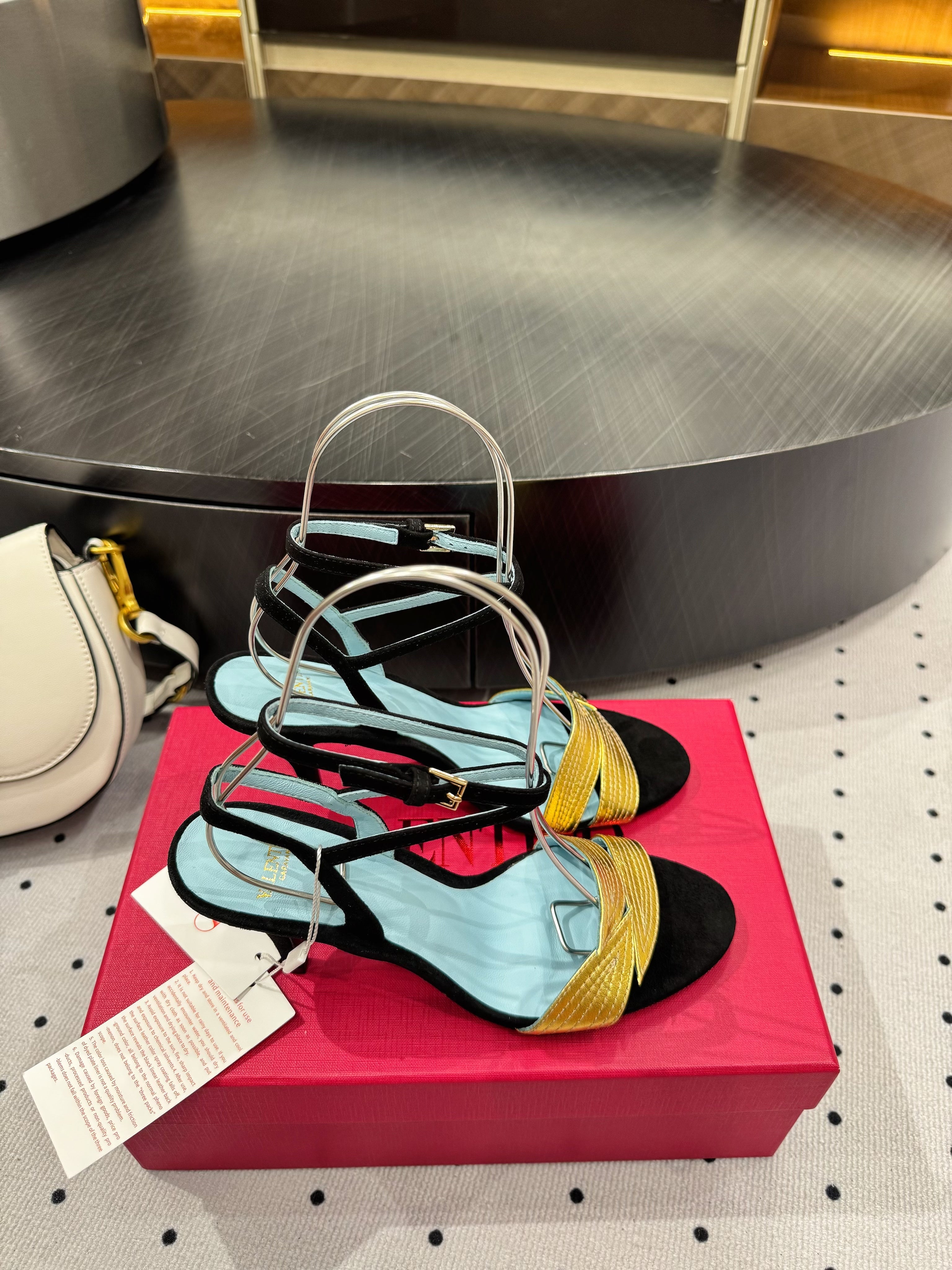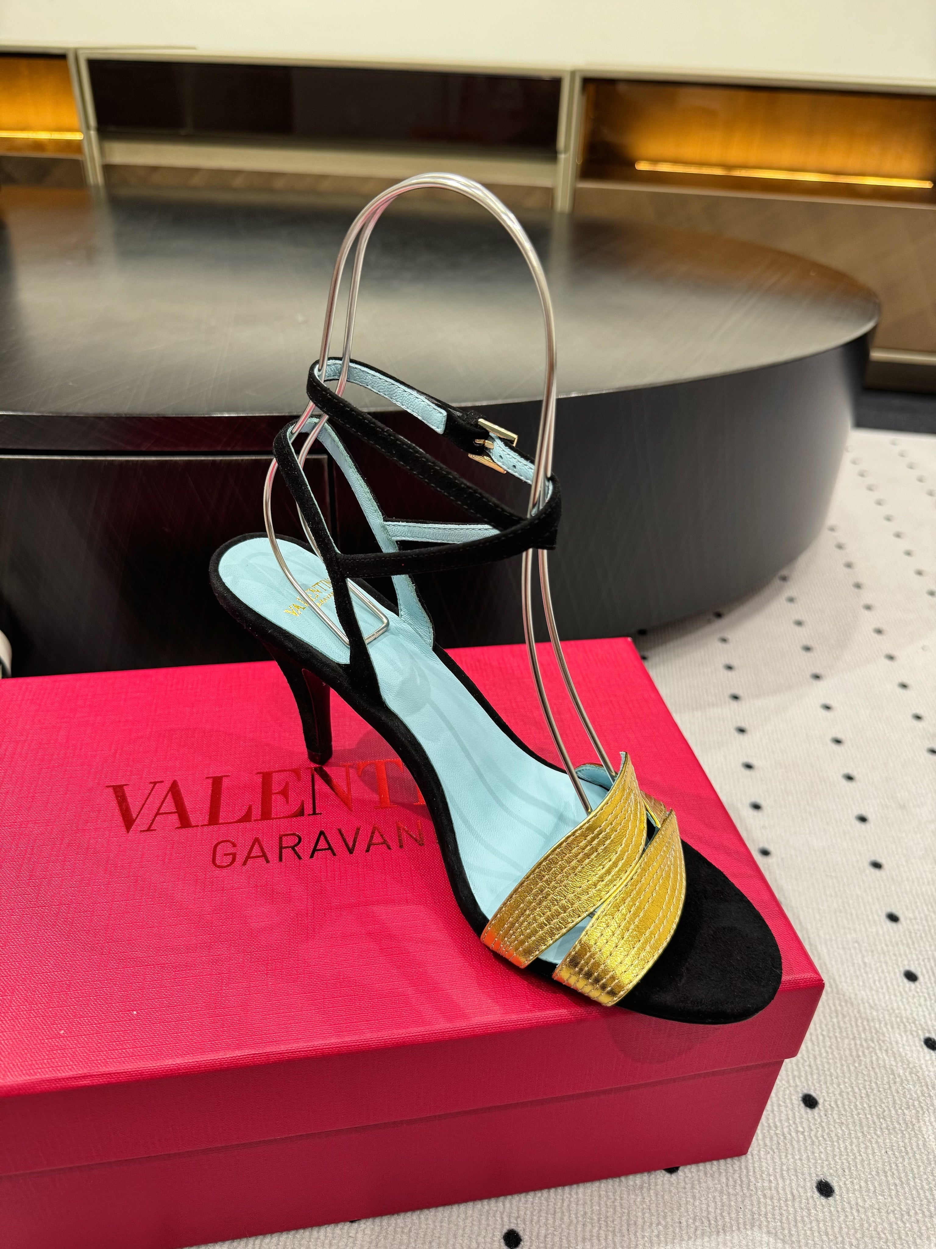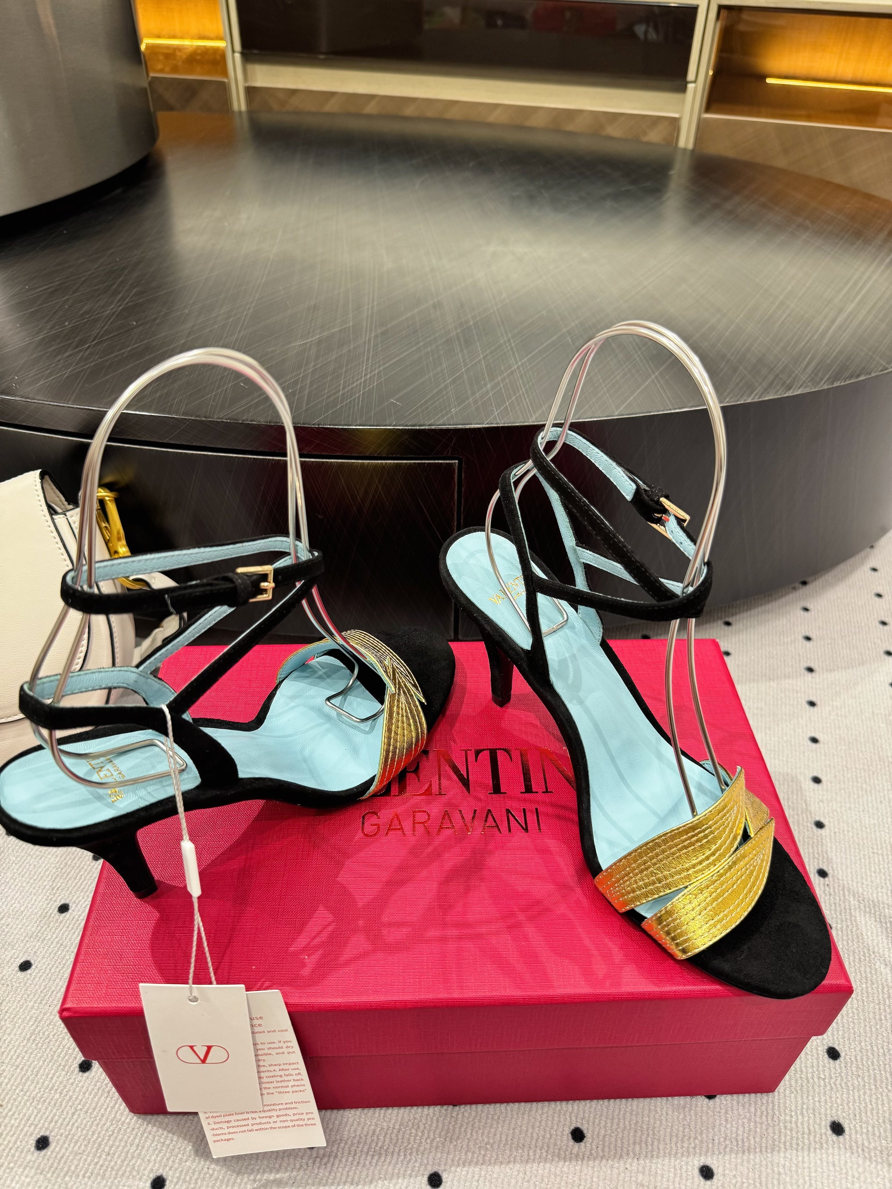 VLTN HIGH SANDAL 25S 60 MM IN BLACK SUEDE AND GOLD CALFSKIN
