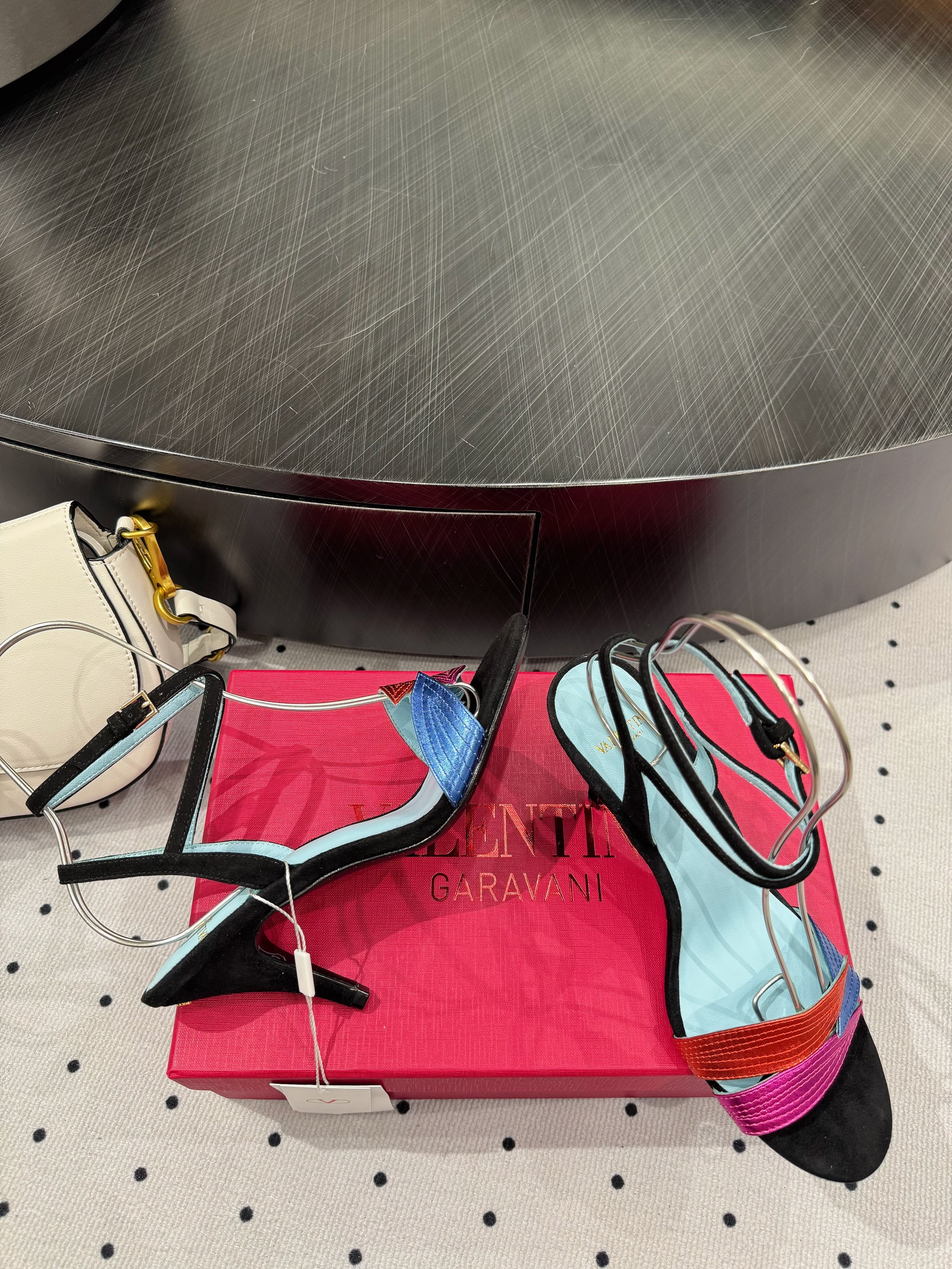 VLTN HIGH SANDAL 25S 60 MM IN BLACK SUEDE AND MULTICOLOR CALFSKIN