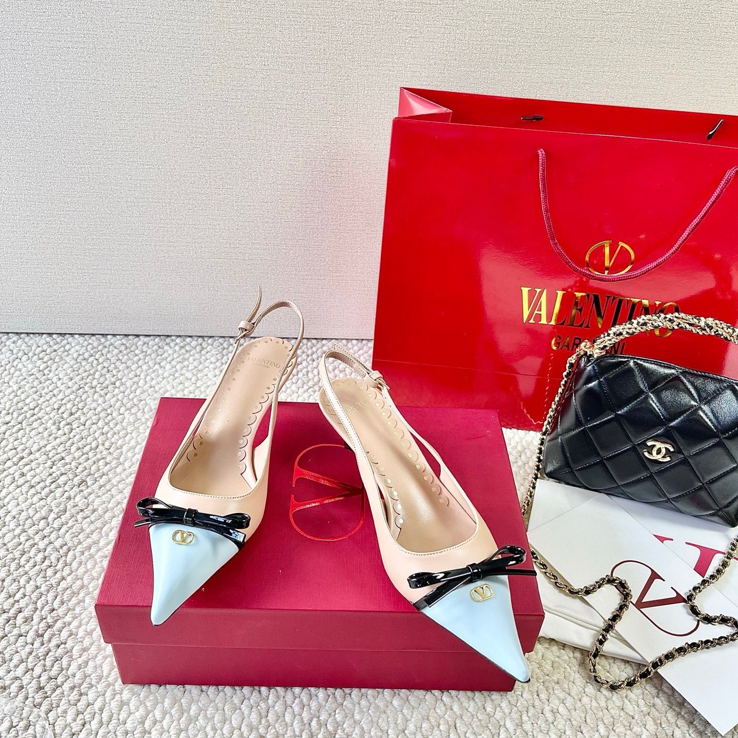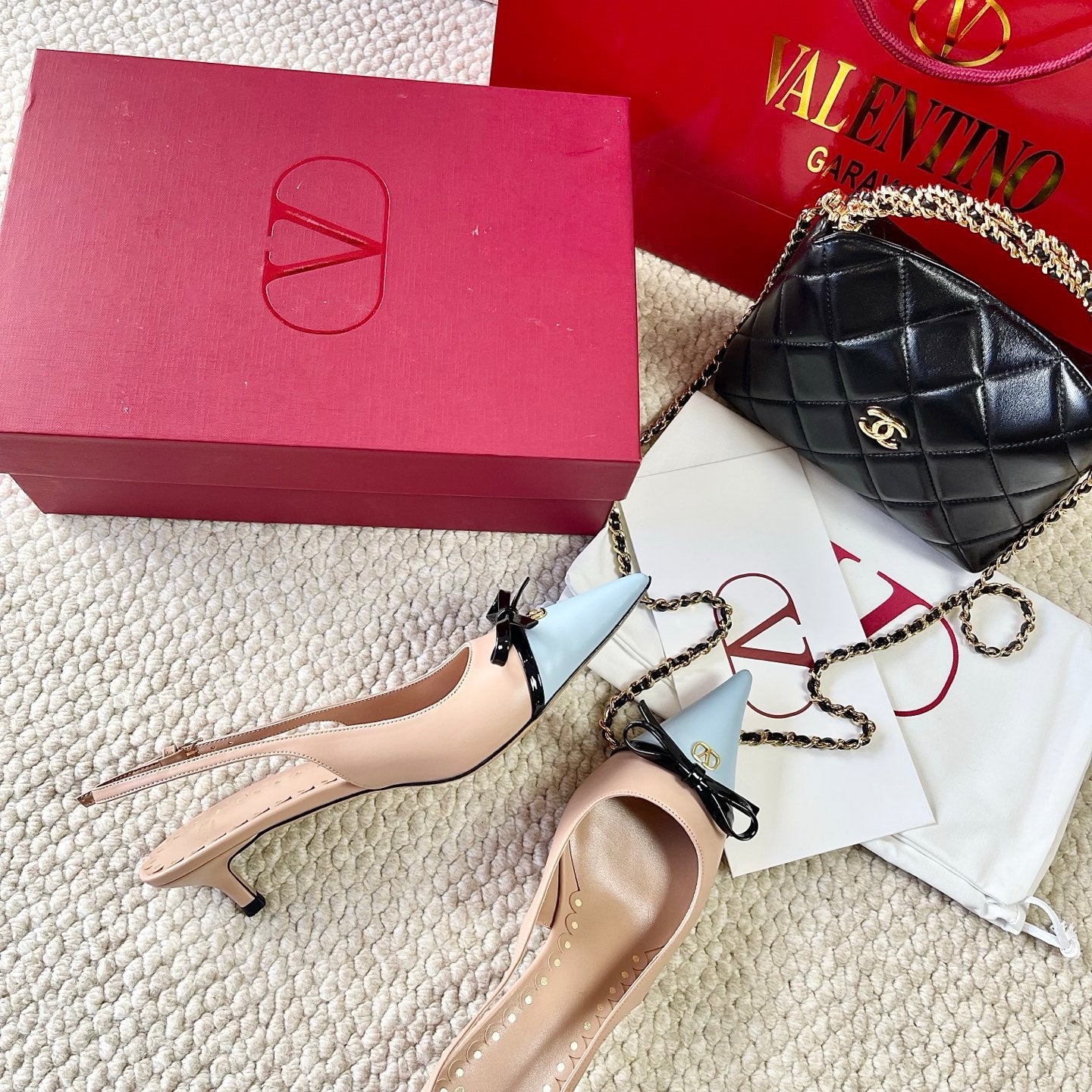 VLTN HIGH SLINGBACK 25S 40 MM IN SKY BLUE MIX NUDE LAMBSKIN WITH BOW
