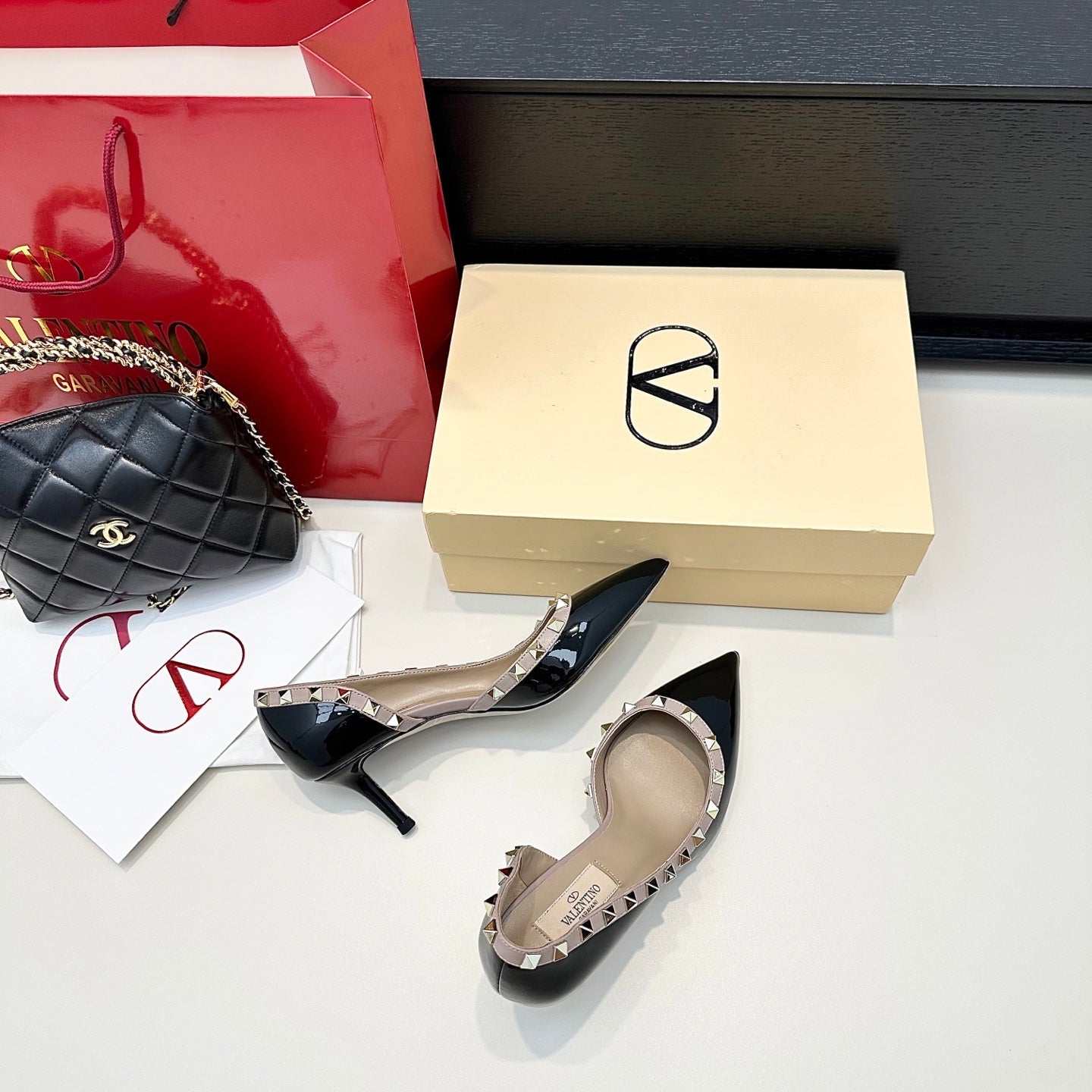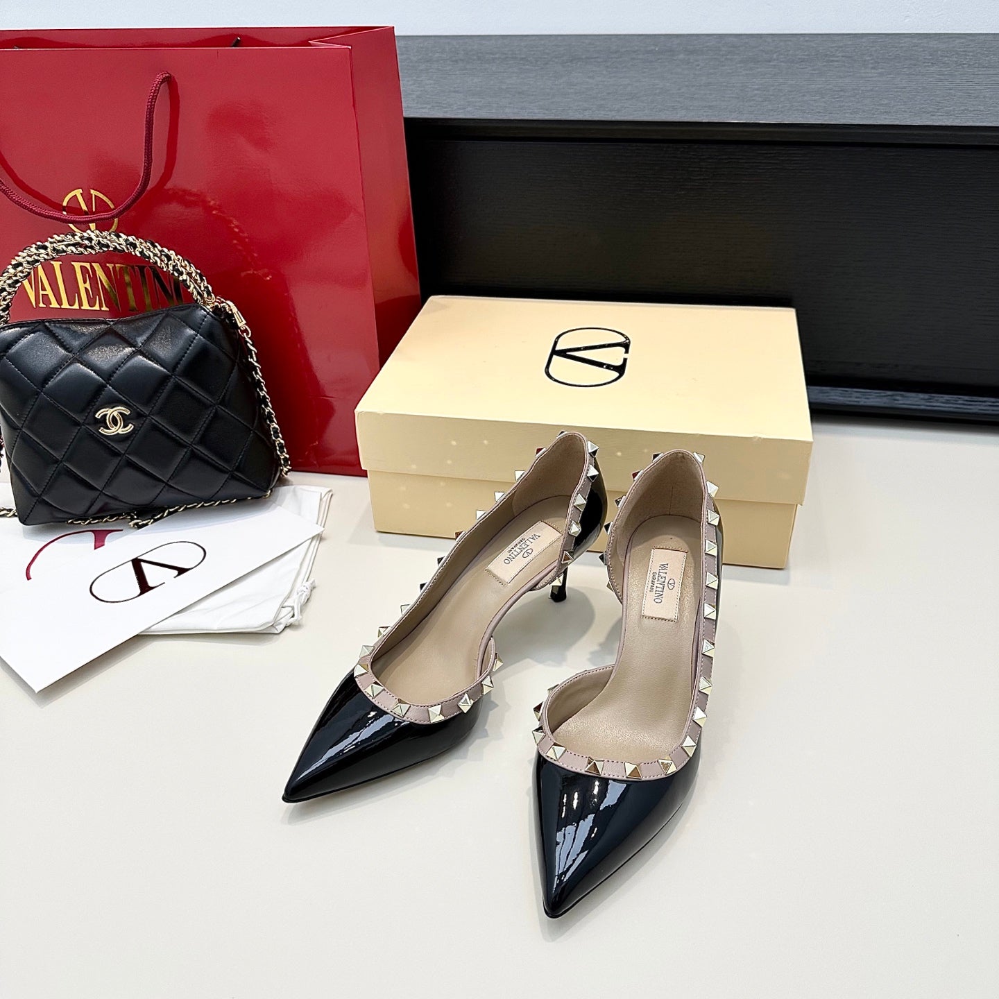 VLTN ROCKSTUD HEELS 25S 60 MM IN BLACK GLOSSY LEATHER