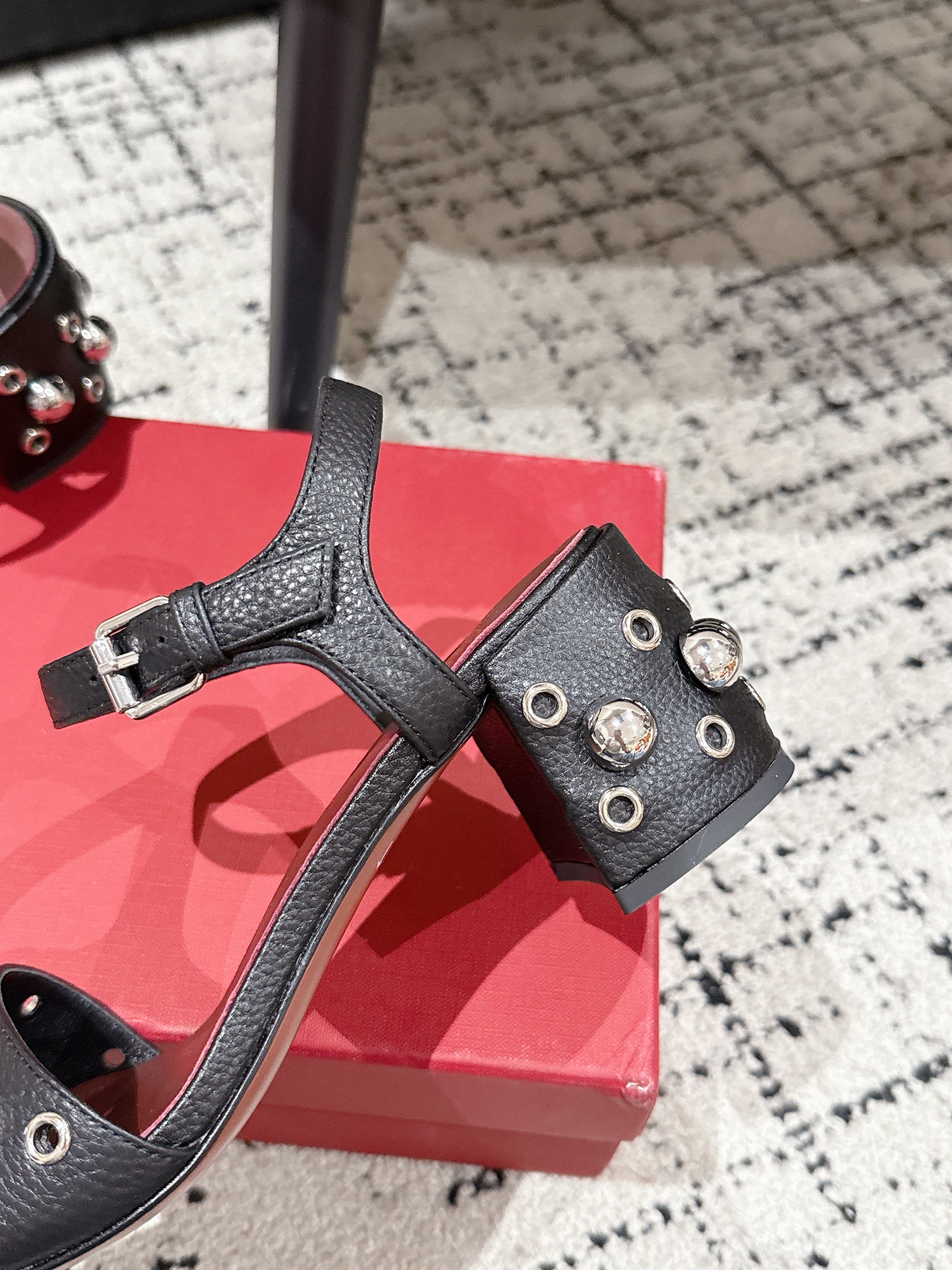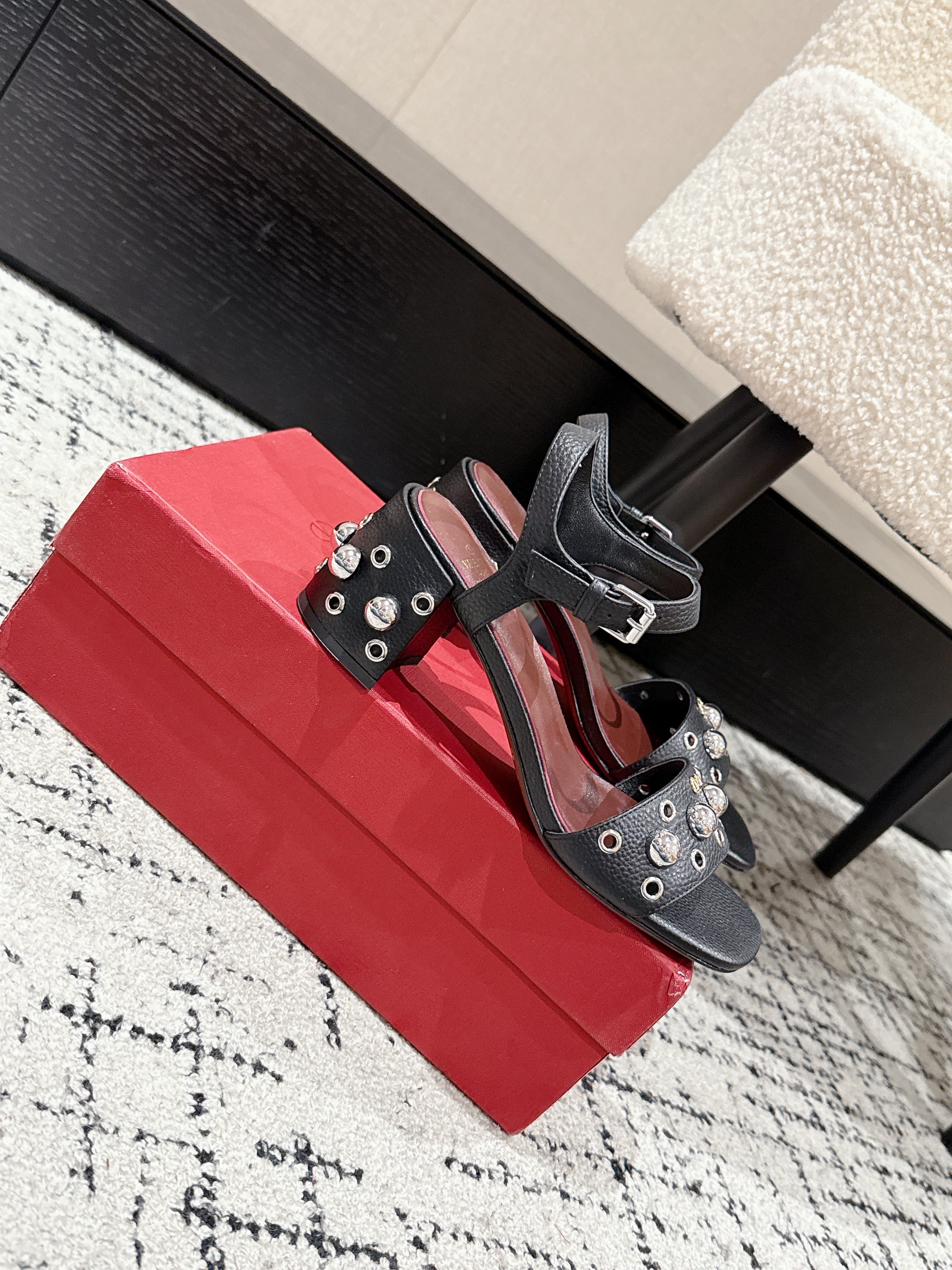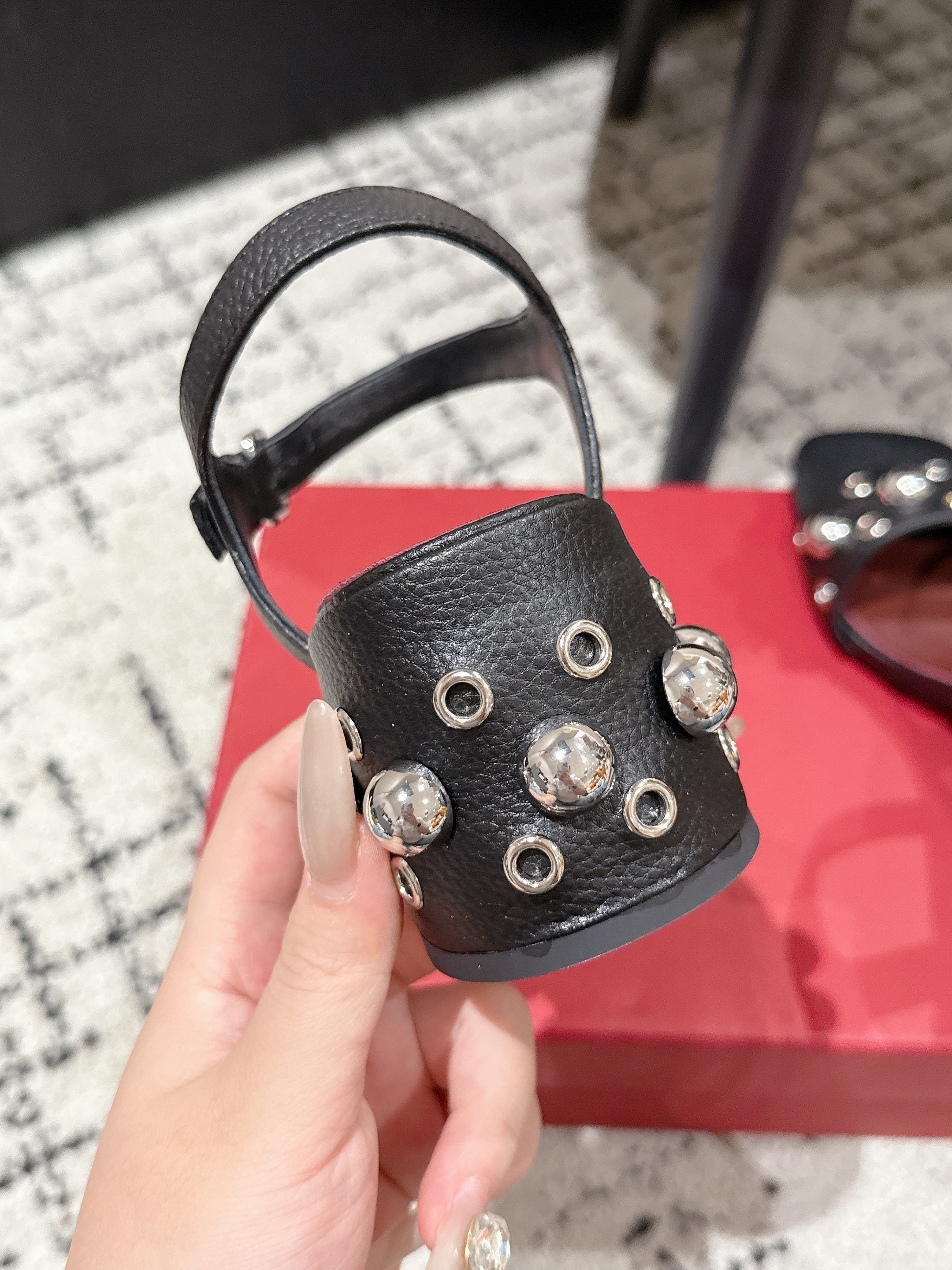 VLTN STUDDED BLOCK HEEL SANDALS 25S 60 MM IN BLACK LAMBSKIN
