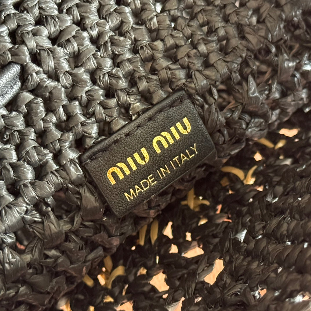 WANDER BUCKET BAG 23 BLACK IN RAFFIA WITH LEATHER TRIM