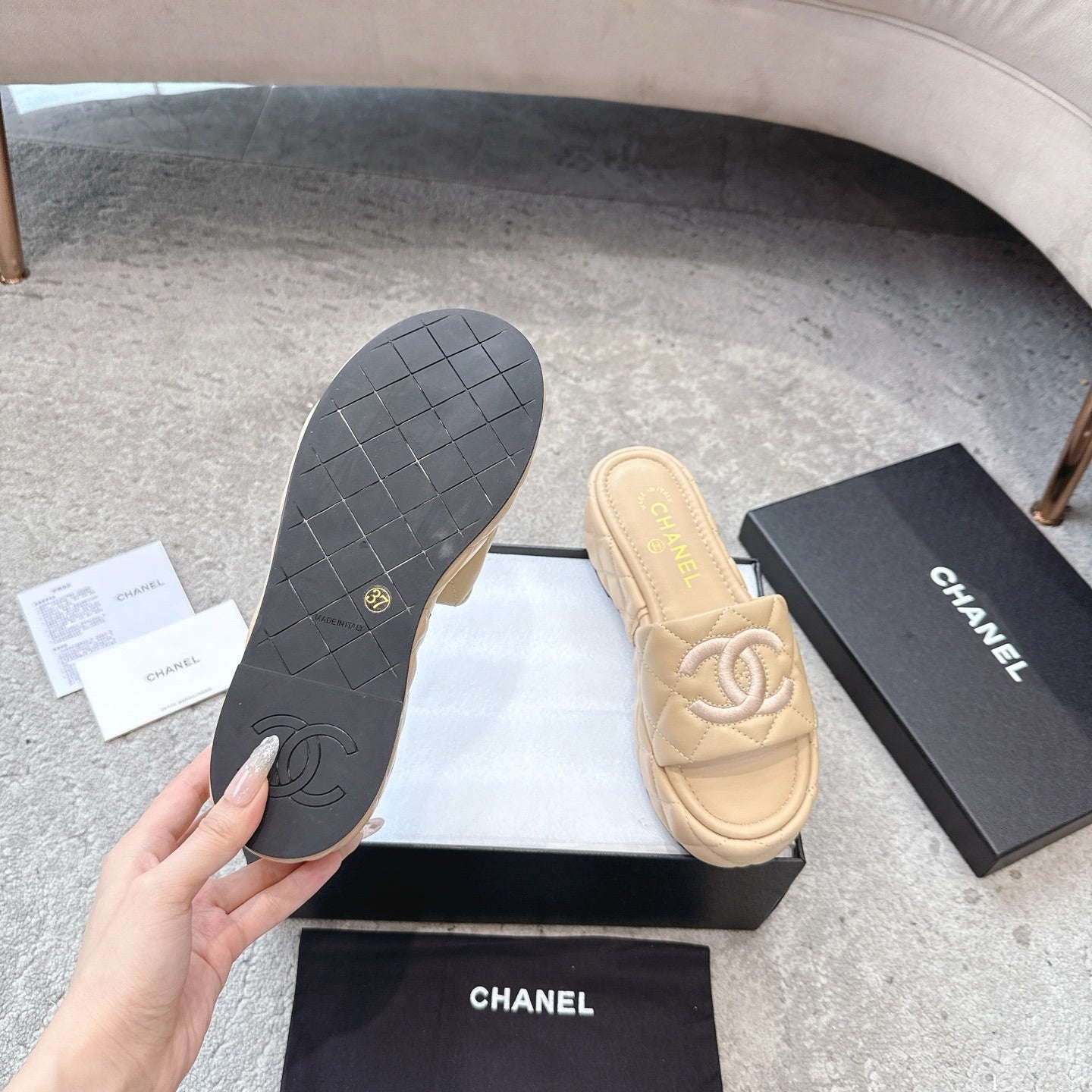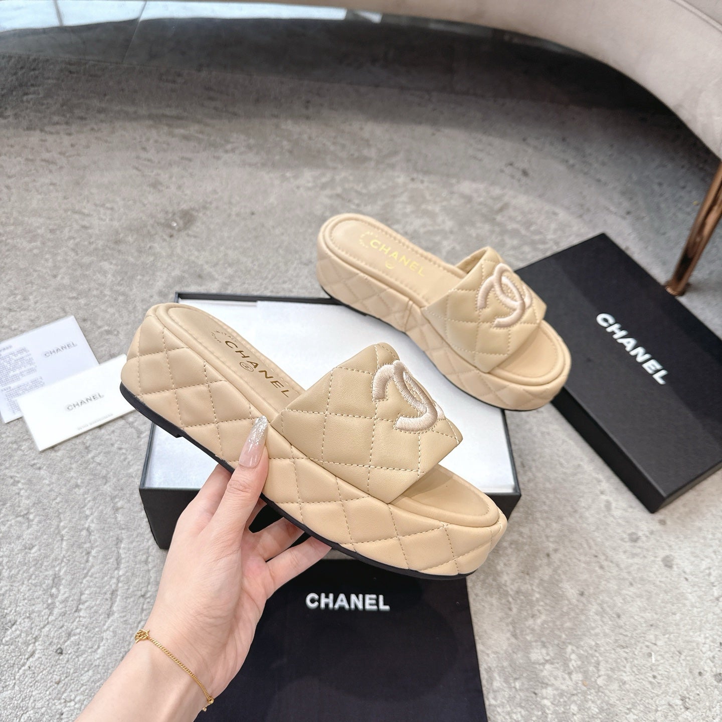 WEDGE HEELS IN BEIGE CALFSKIN QUILTED