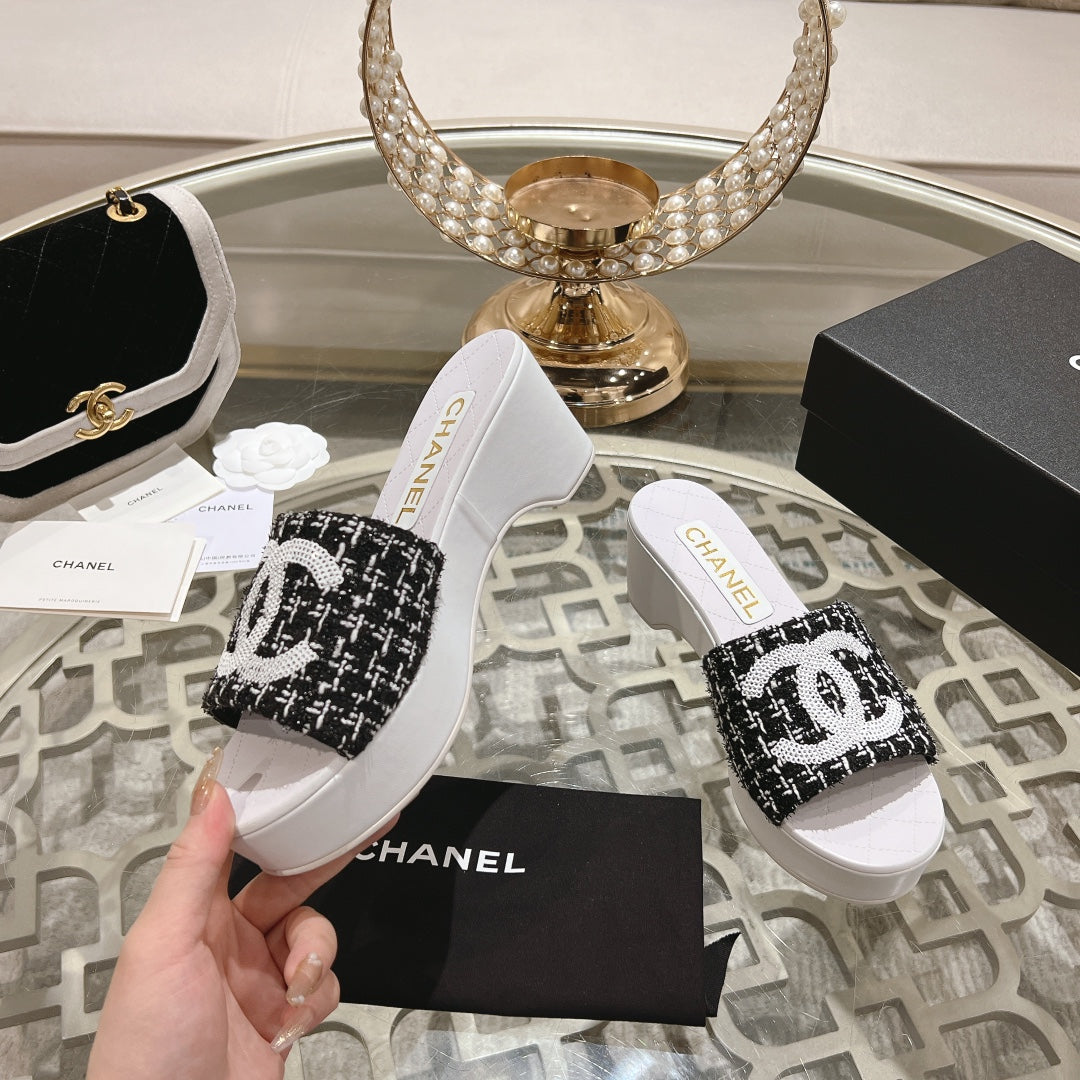 WEDGE PLATFORM IN BLACK FABRIC WITH WHITE LOGO