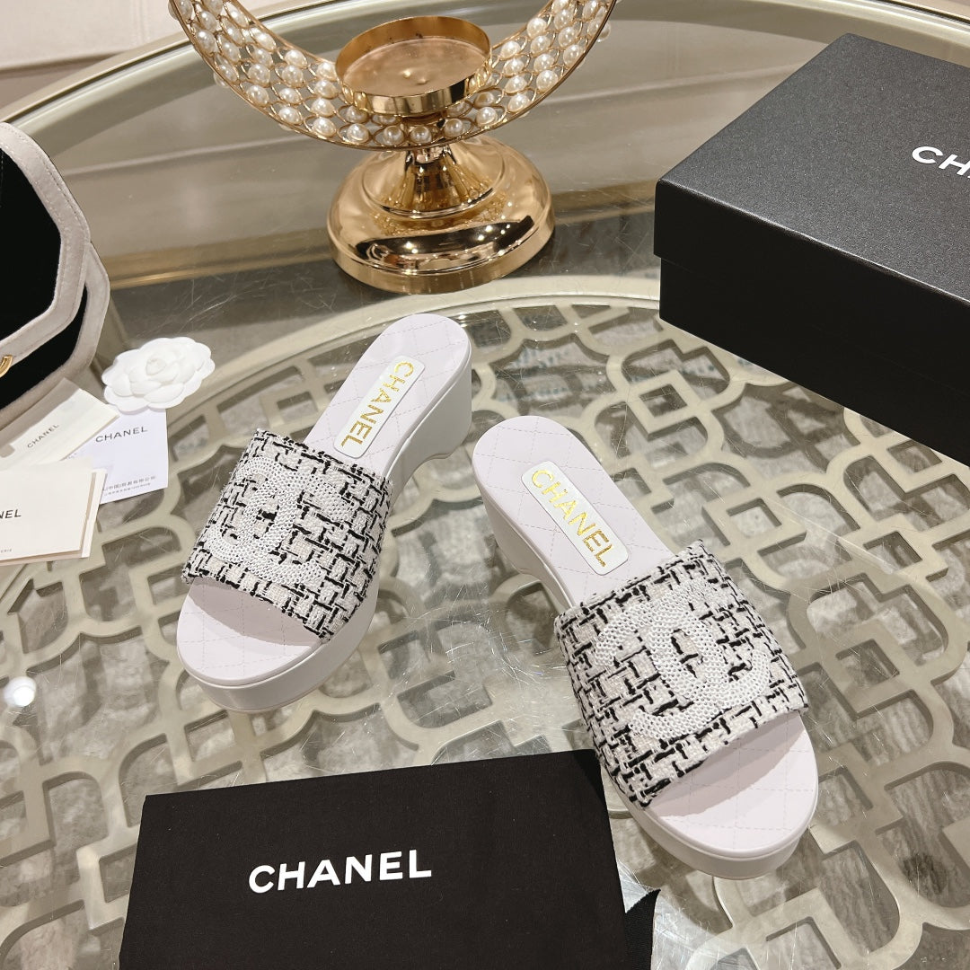 WEDGE PLATFORM IN BLACK MIX WHITE FABRIC WITH LOGO