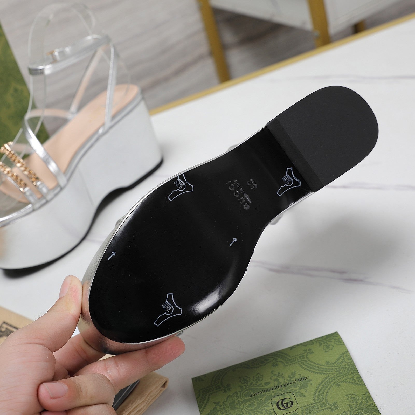 WEDGE PLATFORM IN SILVER SHEEPSKIN