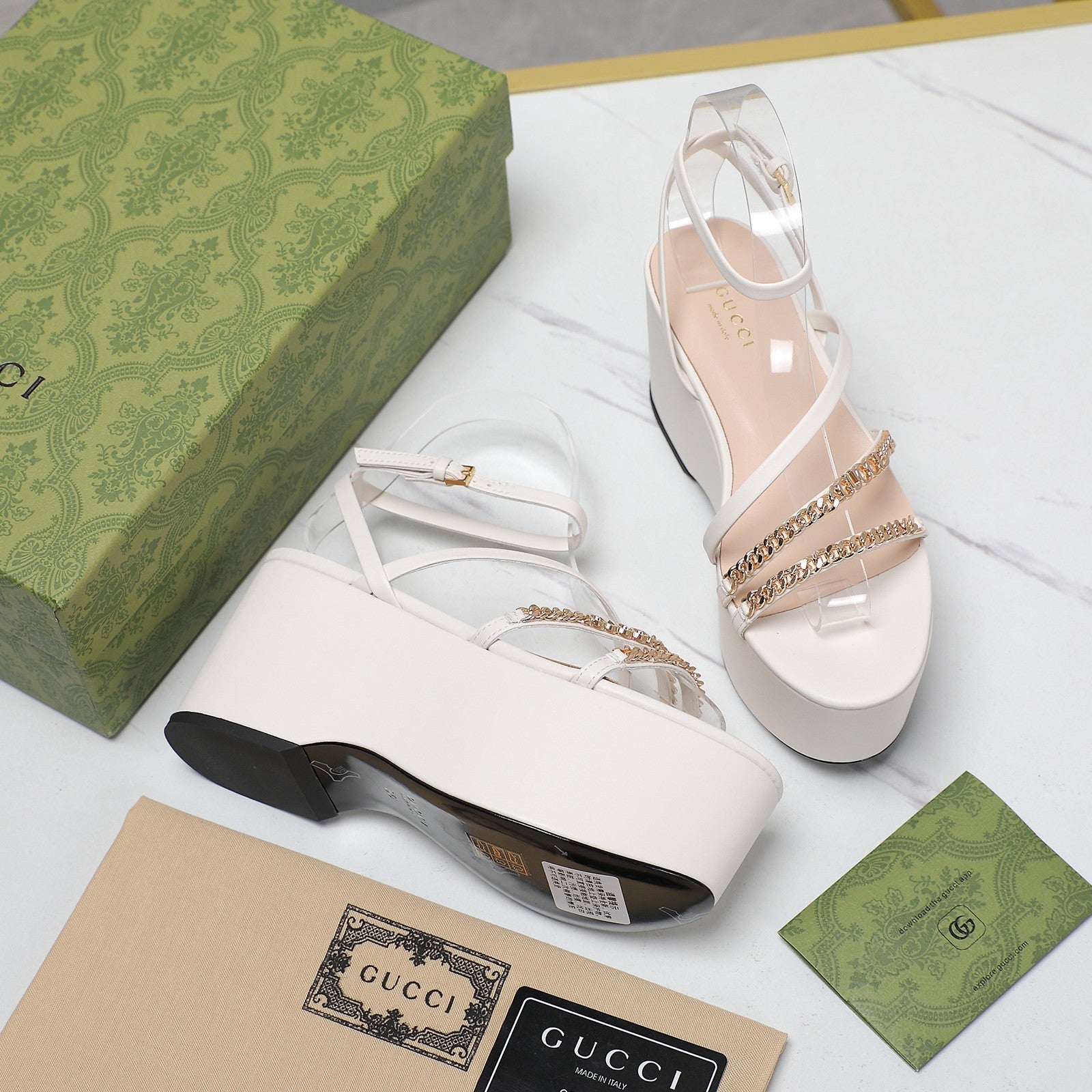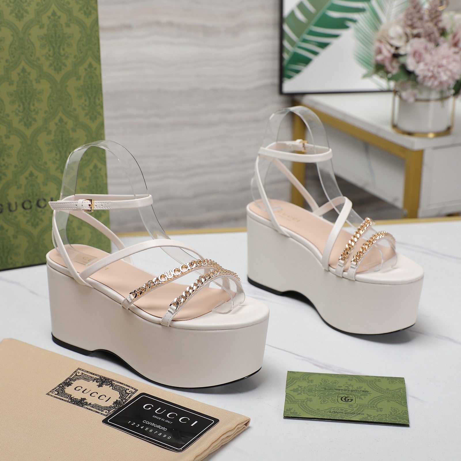 WEDGE PLATFORM IN WHITE SHEEPSKIN