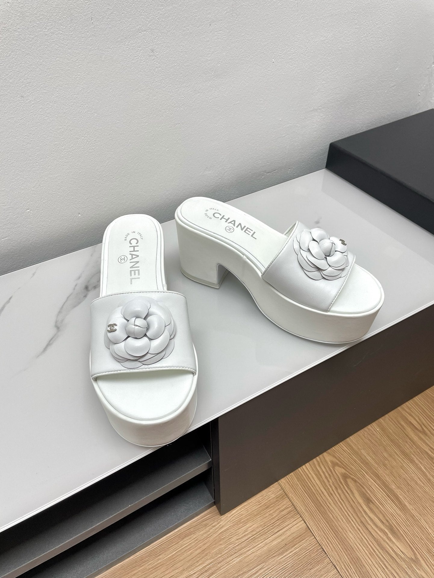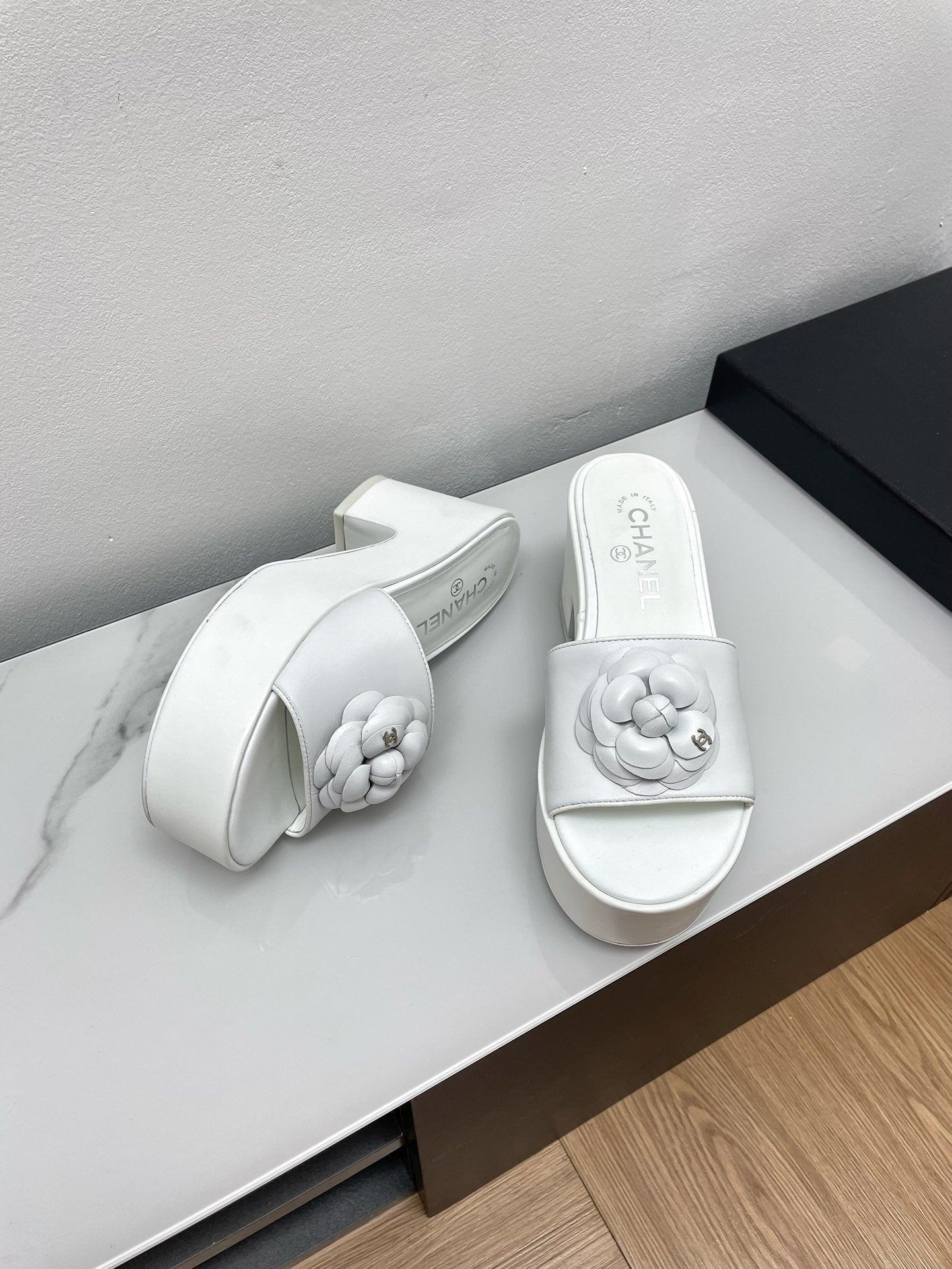 WEDGE PLATFORM WHITE LAMBSKIN WITH FLOWER