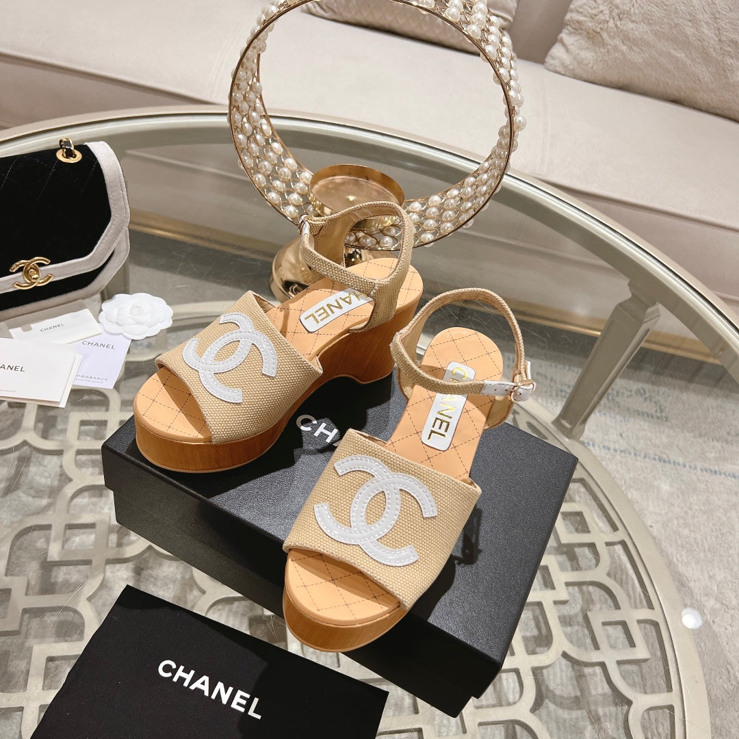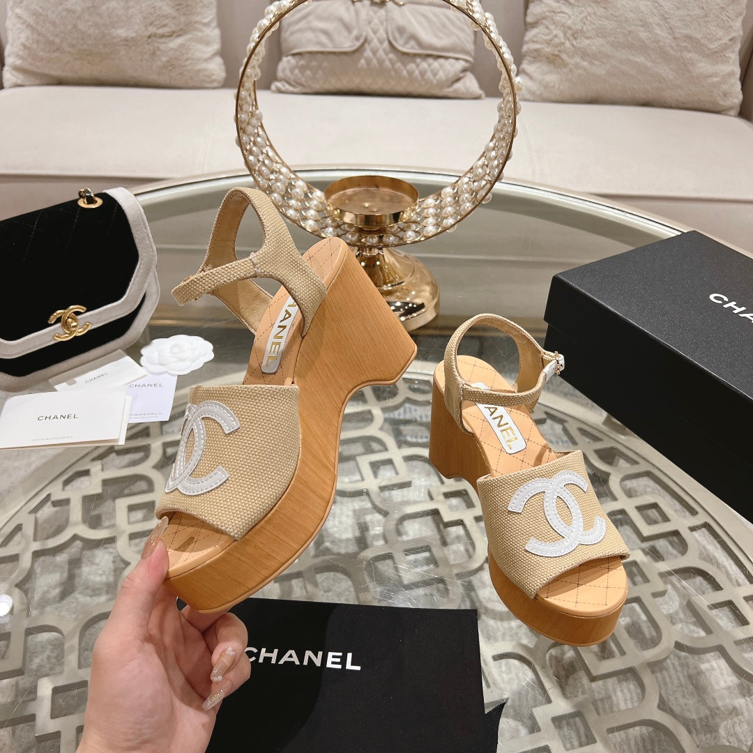 WEDGE SANDALS IN BEIGE CREAM LAMBSKIN WITH WHITE LOGO