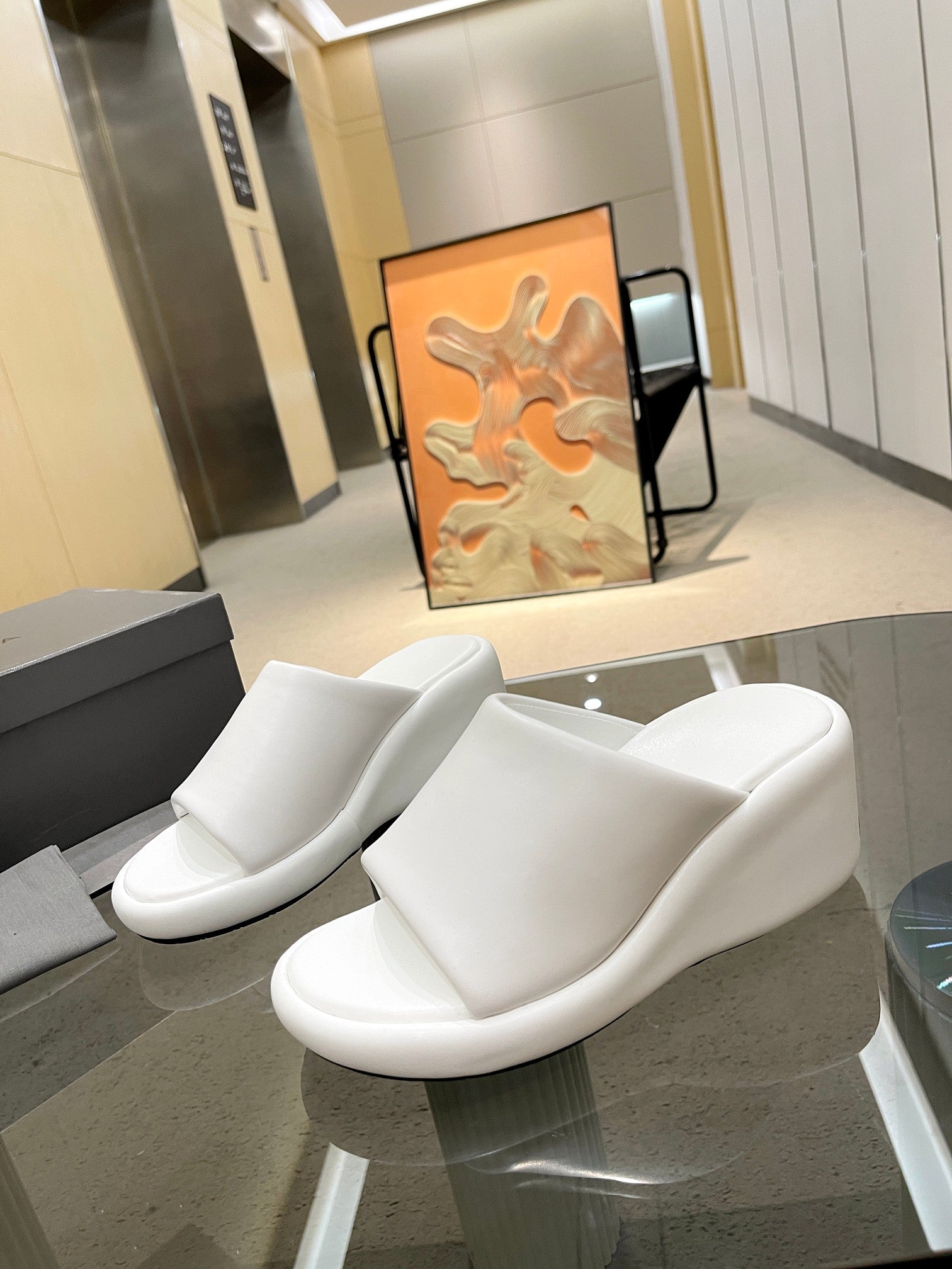 WEDGE SANDALS IN WHITE SOFT LAMBSKIN
