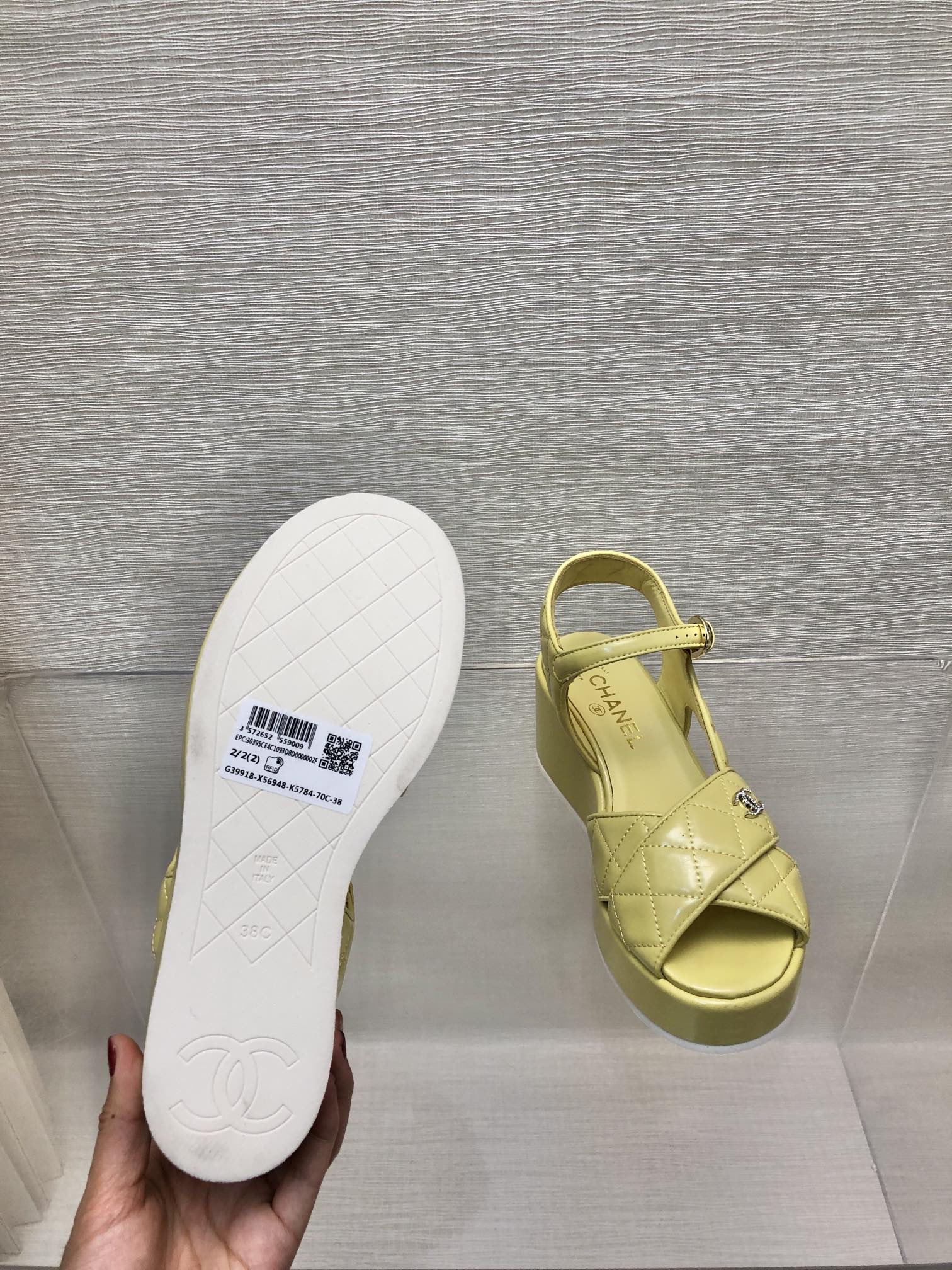 WEDGE SANDALS IN YELLOW CREAM CALFSKIN