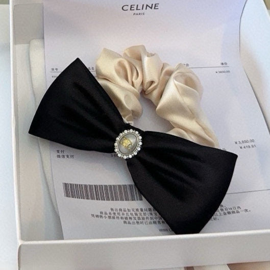 WHITE MIX BLACK SILK SCRUNCHIE 410891