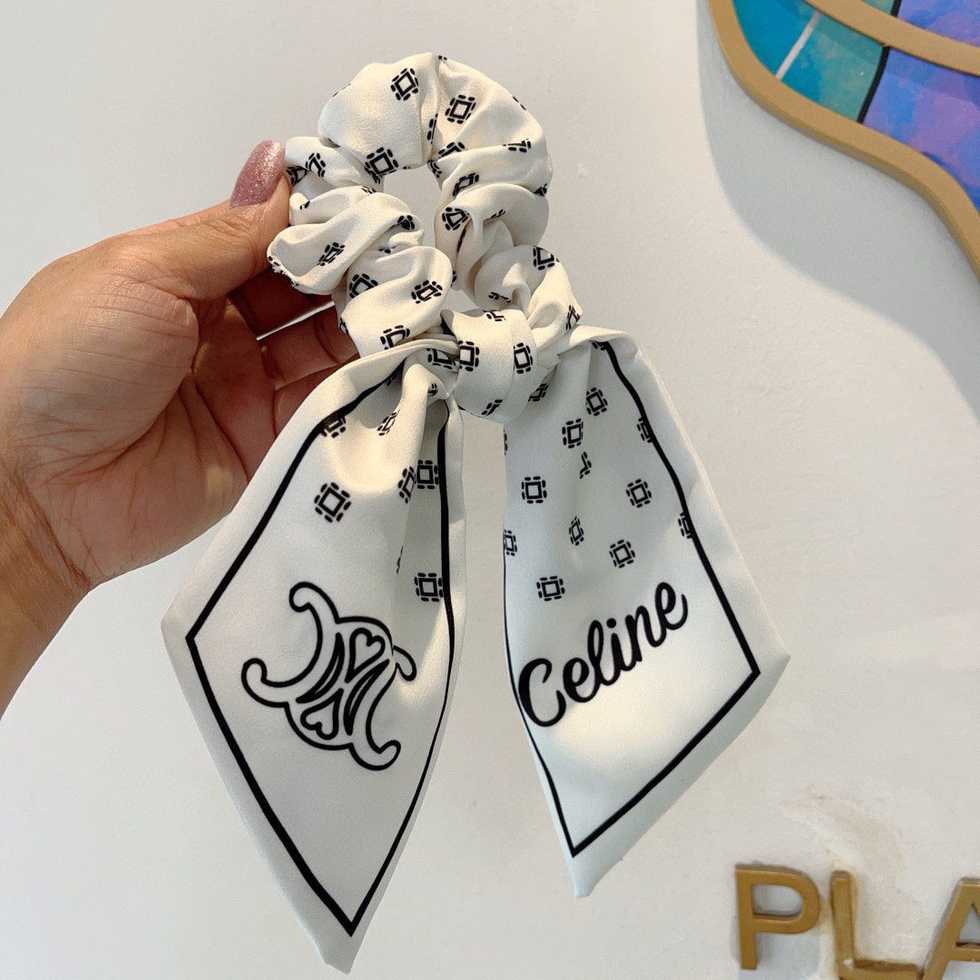 WHITE MIX BLACK SILK SCRUNCHIE 420657