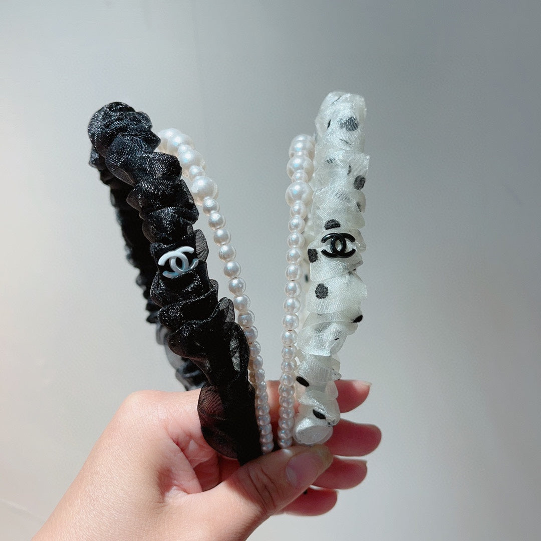 WHITE VOILE FABRIC HAIRBAND WITH PEARL CHAIN 867188