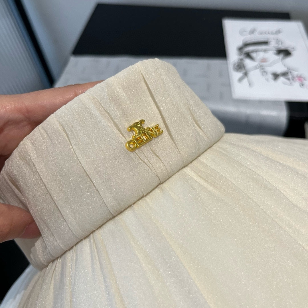 WIDE BRIM HALF HEAD HAT MODEL 650344 IN CREAM WHITE PLEATED SATIN