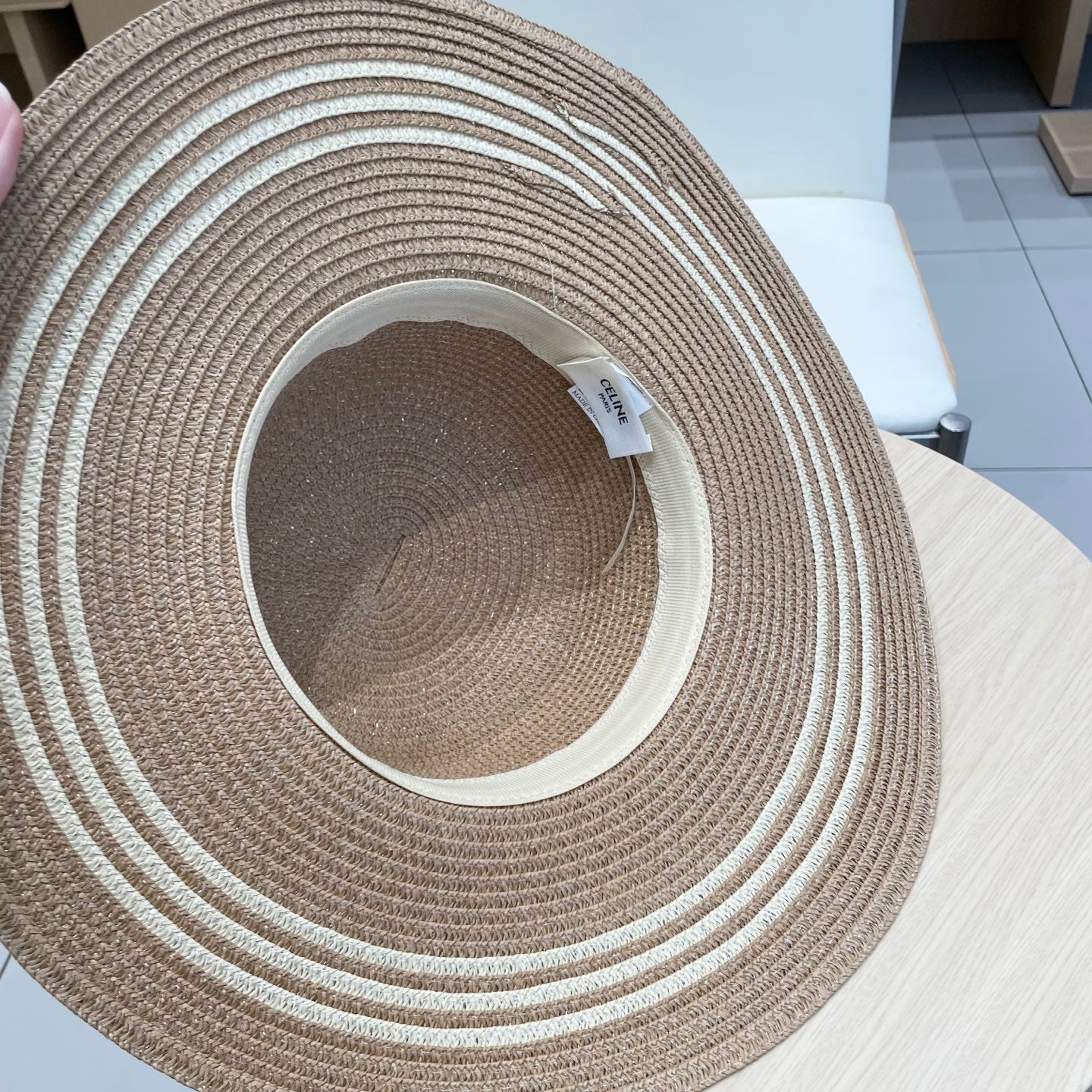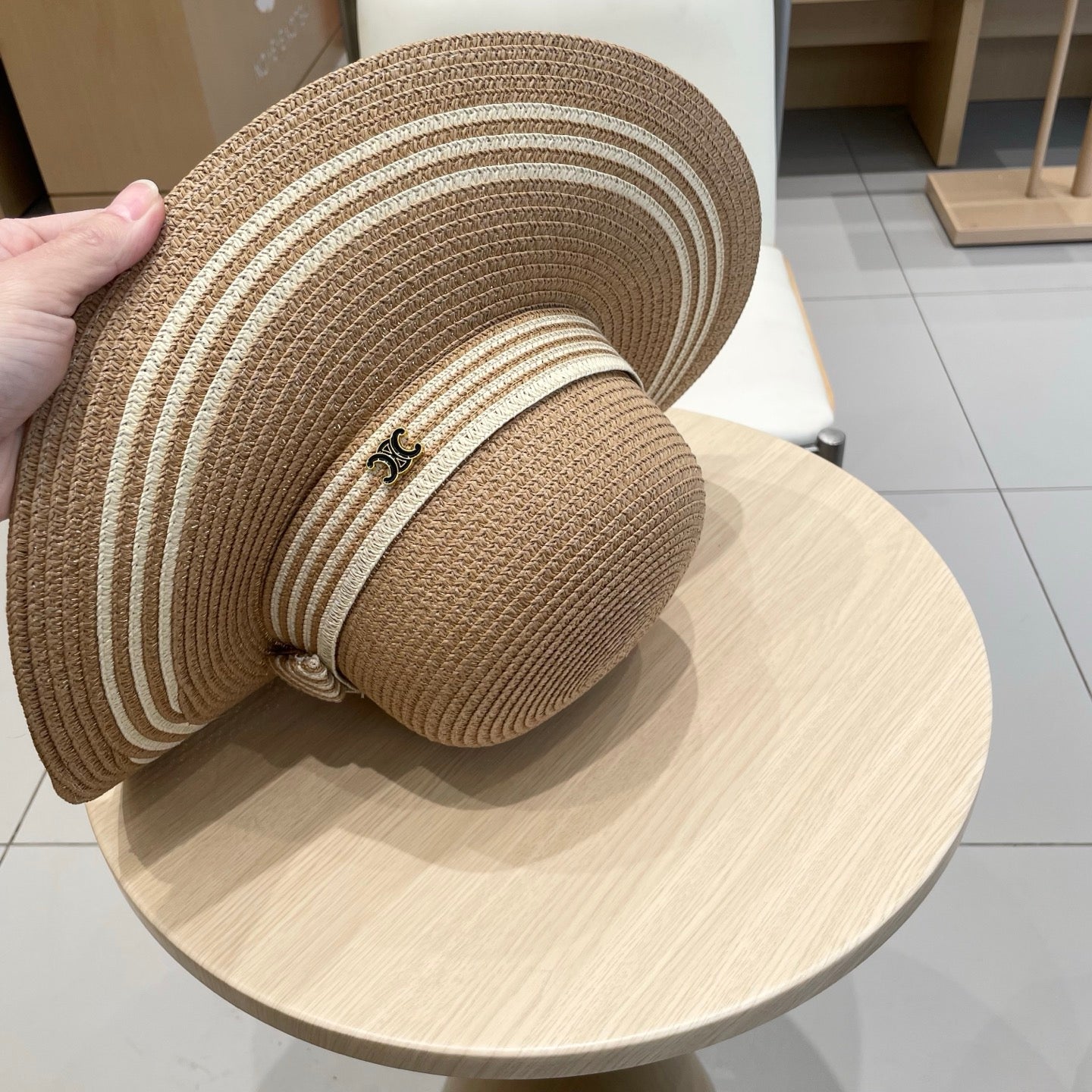 WIDE BRIM HAT MODEL 650409 IN BROWN WITH CREAM STRIPES WOVEN STRAW