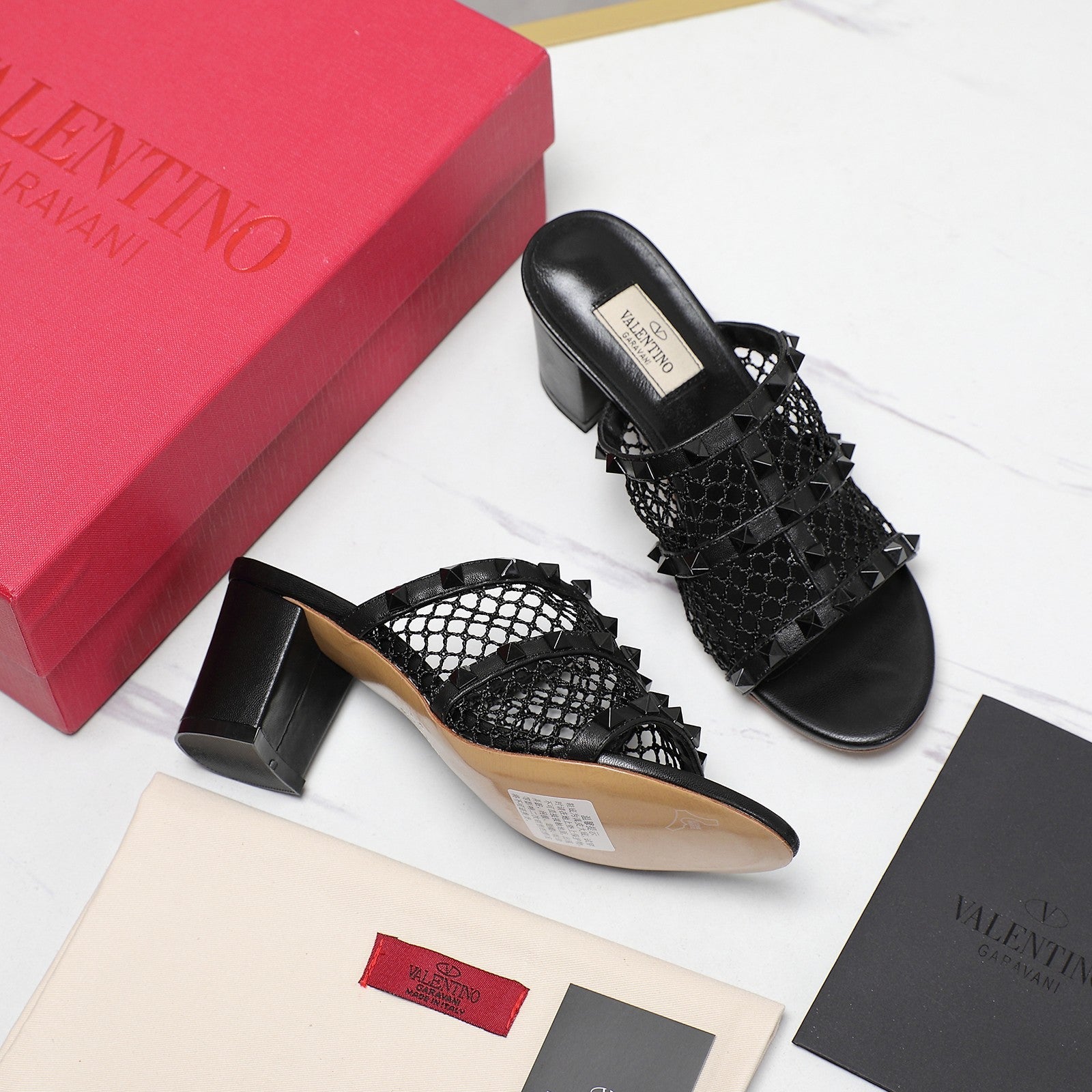 WOMEN'S BLACK ROCKSTUD BLACK MESH SLIDER SANDAL WITH MATCHING STUDS 65 MM