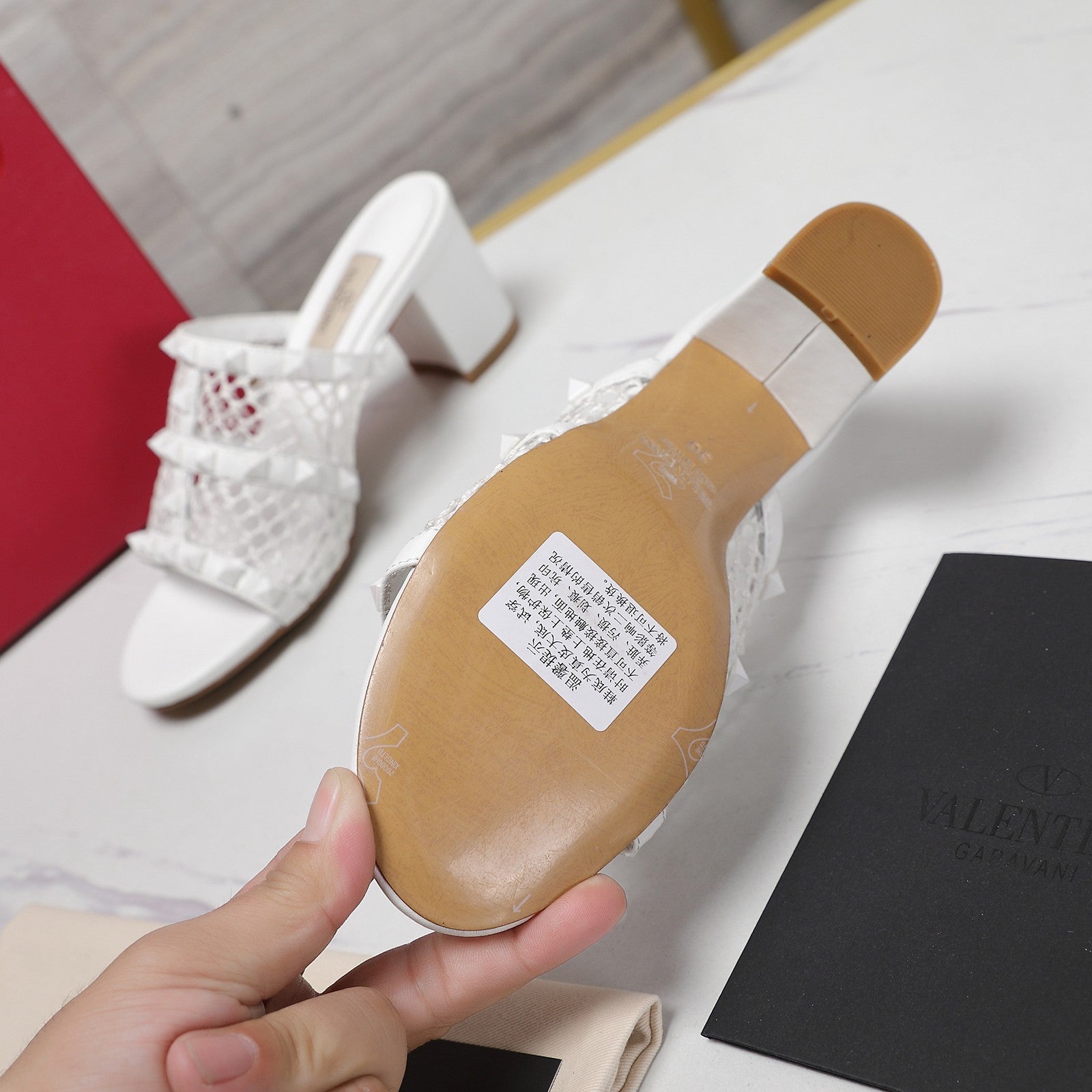 WOMEN'S BLACK ROCKSTUD WHITE MESH SLIDER SANDAL WITH MATCHING STUDS 65 MM