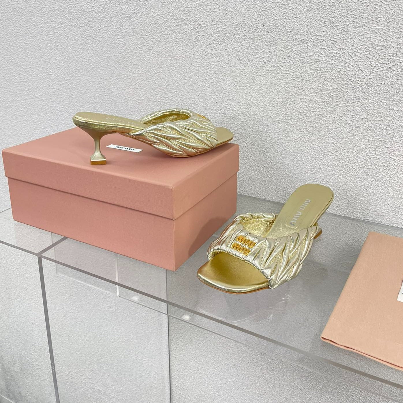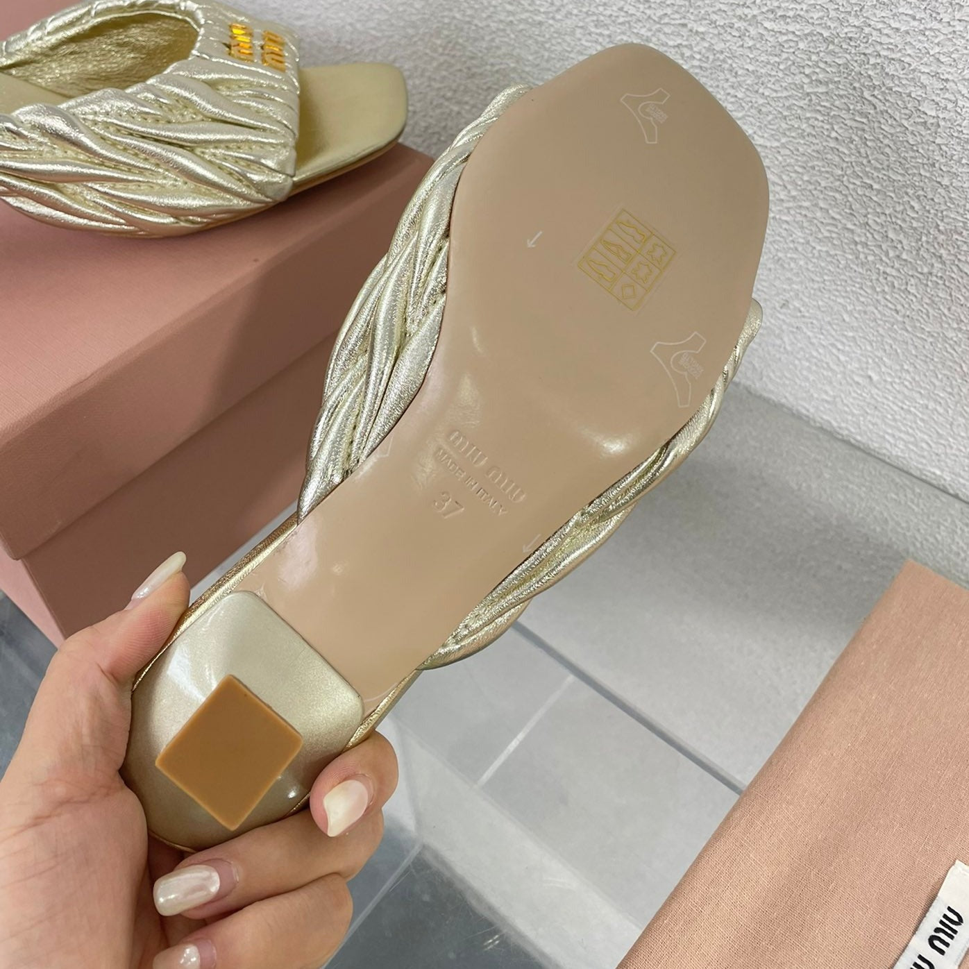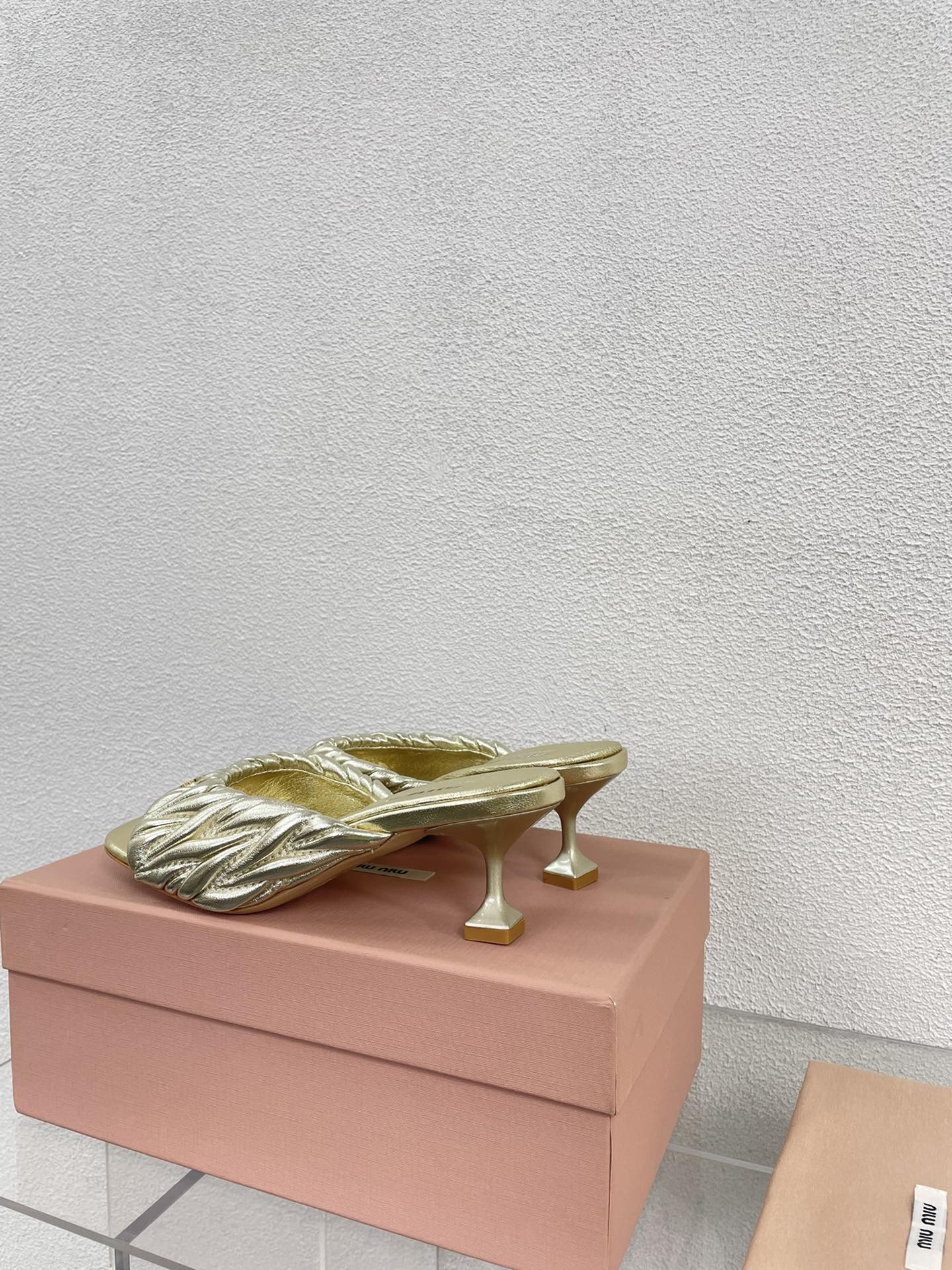 Women's Mid - Heel Metallic Yellow Color Leather Stylized