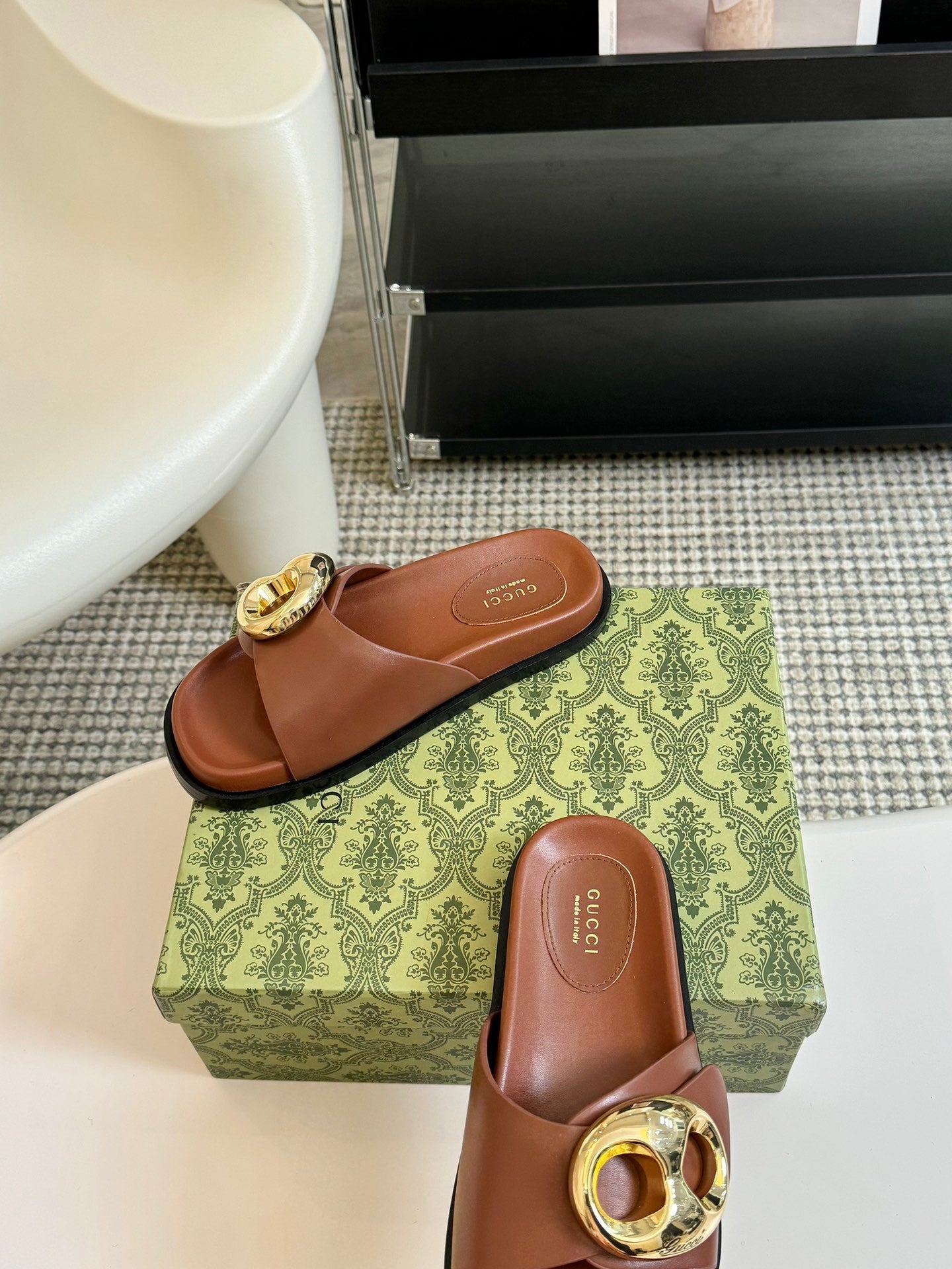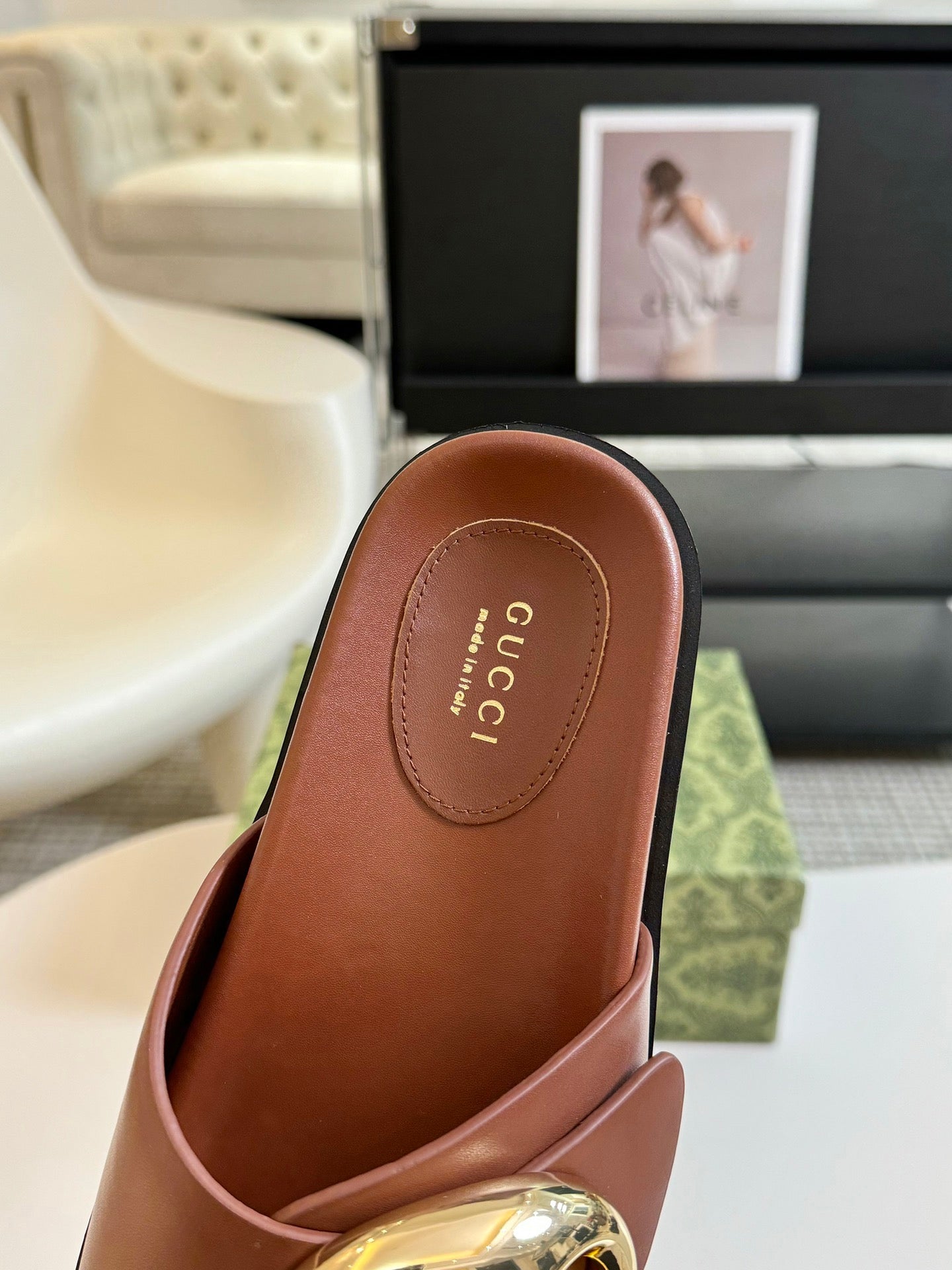 WOMEN'S SLIPPER IN BRONZE BROWN CALFSKIN WITH GOLD HARDWARE
