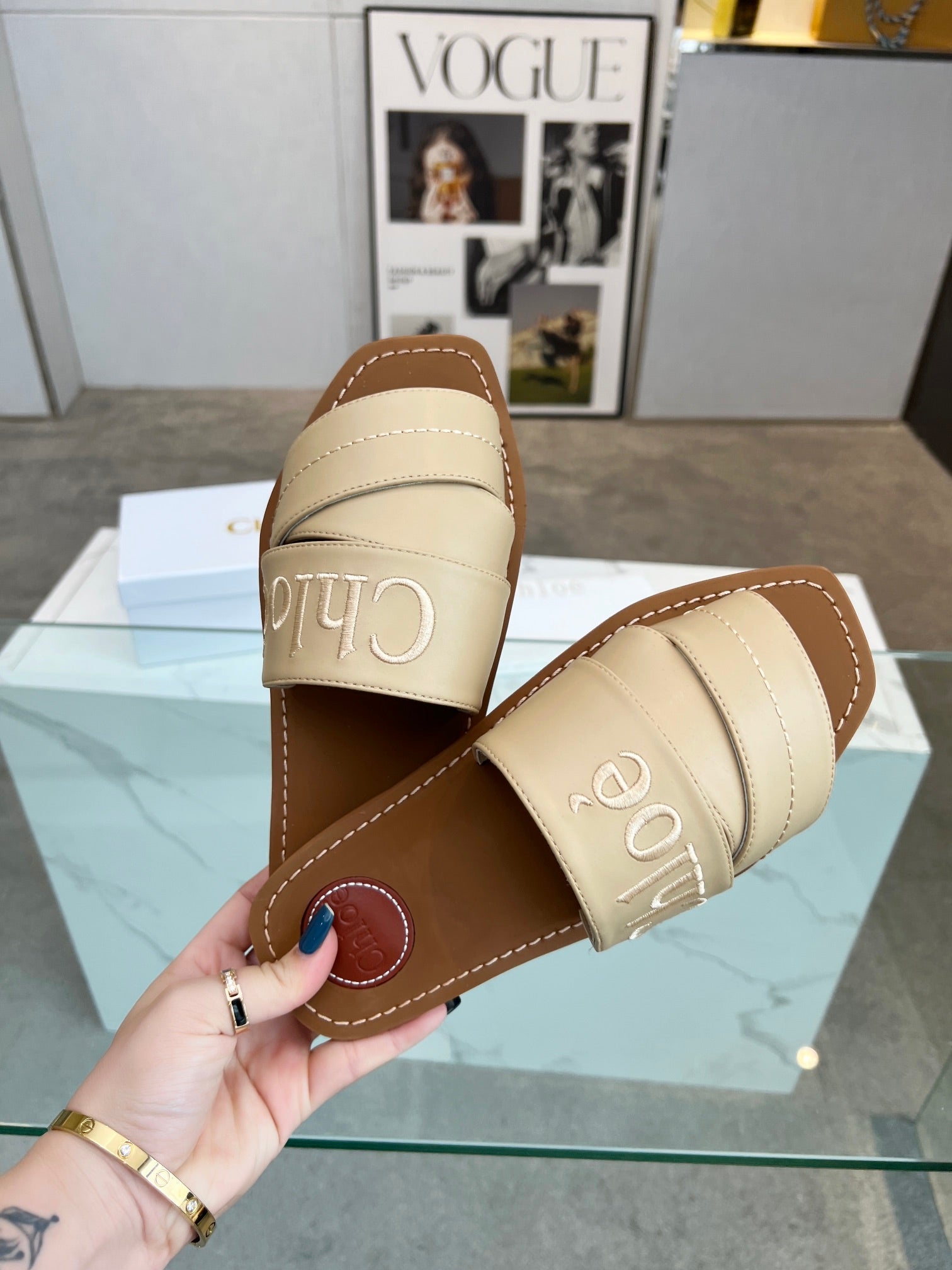 WOODY MULE IN TUSCAN BEIGE LAMBSKIN WITH EMBROIDERED LOGO