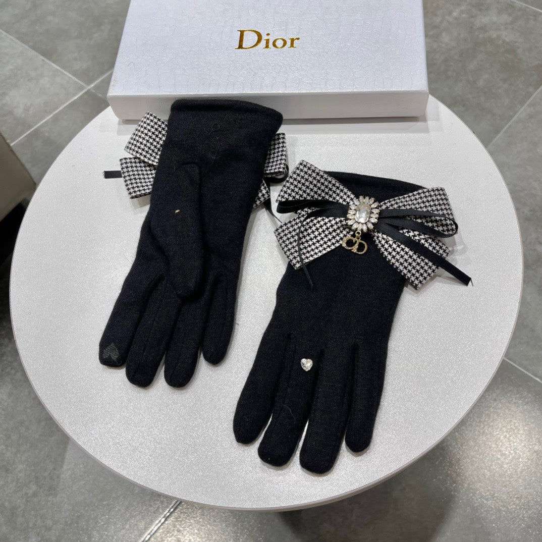 WOOL GLOVES BLACK ATTACHED BUTTERFLY BOW 215146
