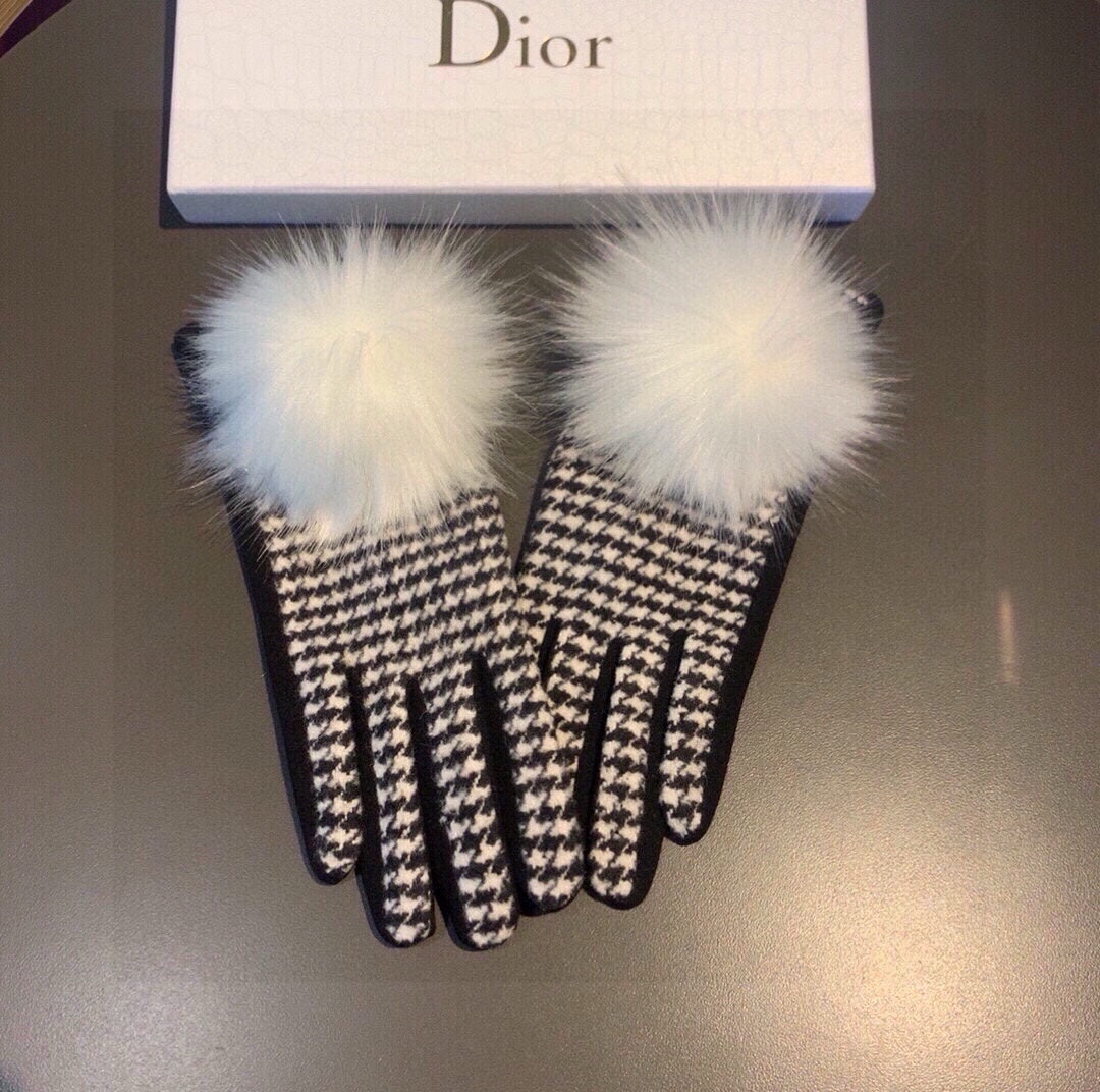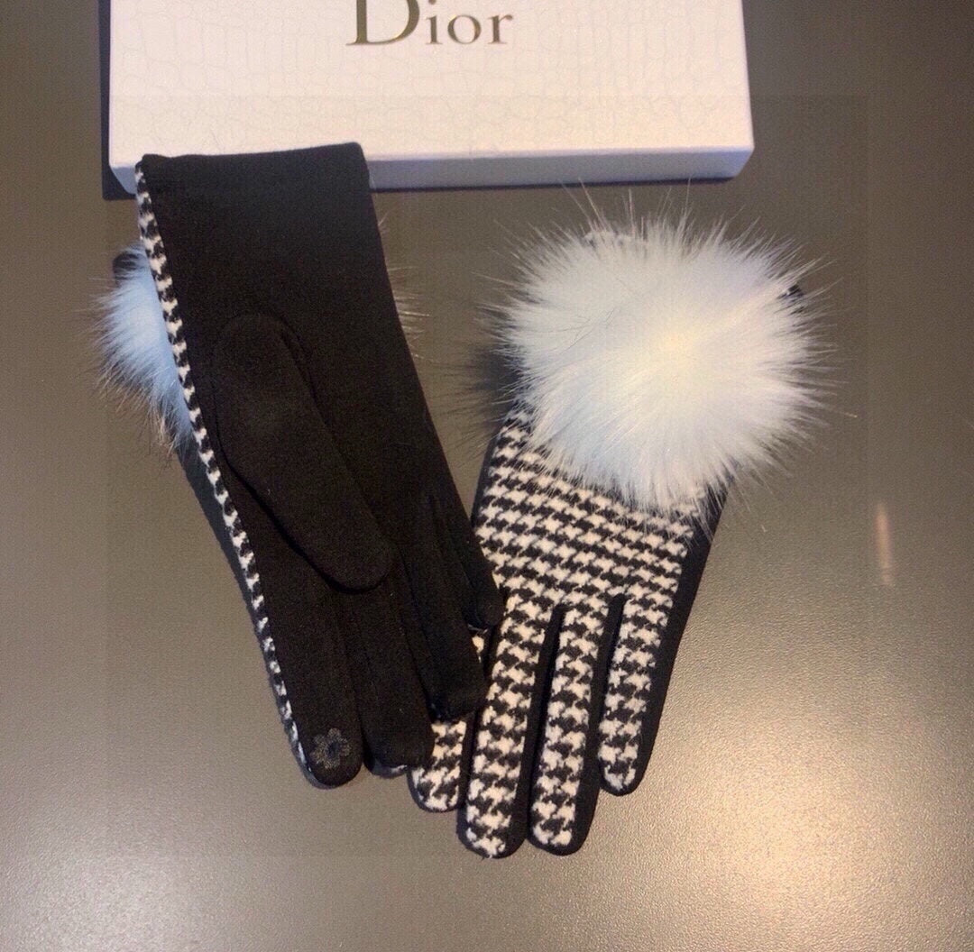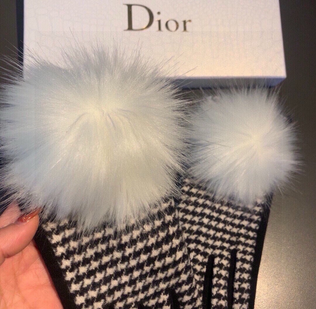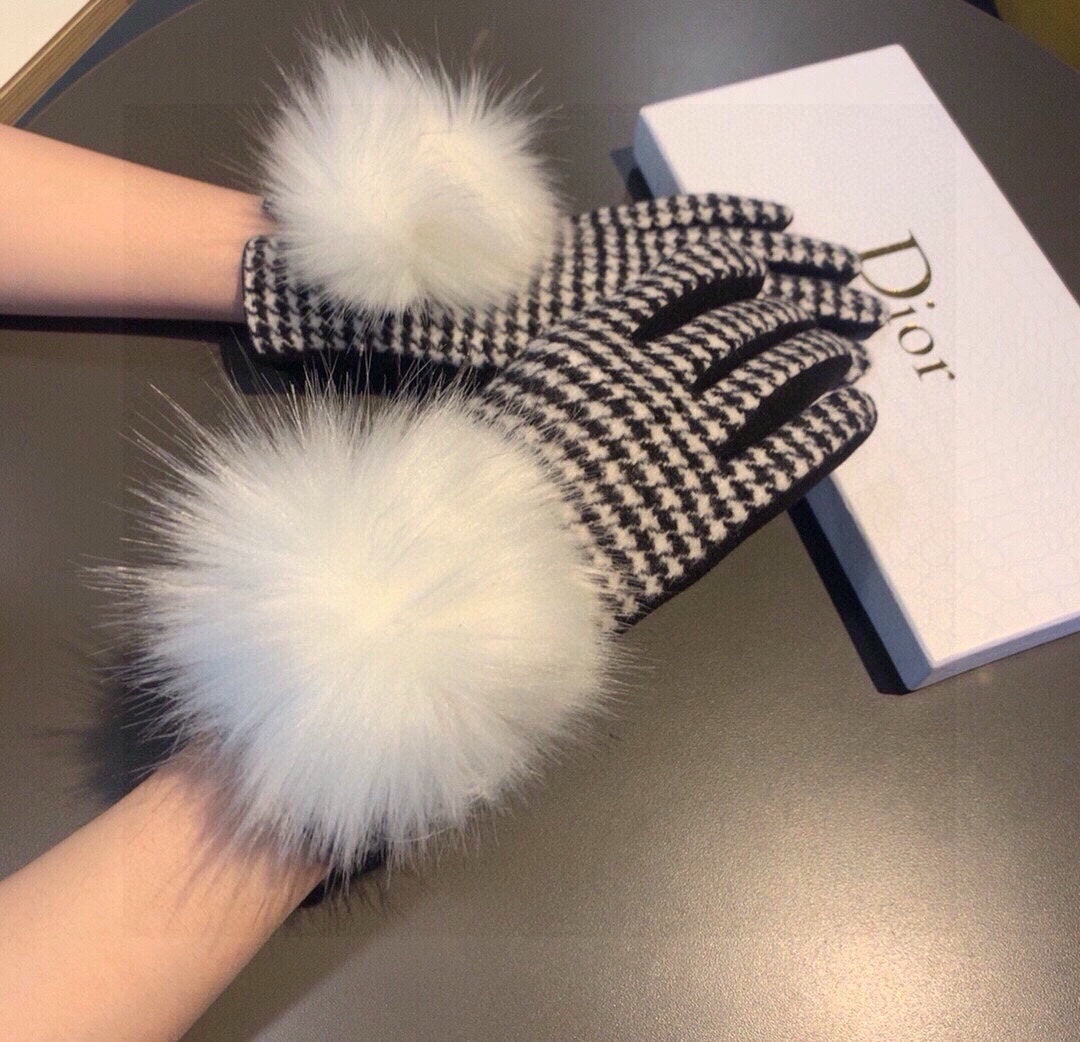 CD WOOL GLOVES WITH FOX FUR BALL BLACK MIX WHITE 397065