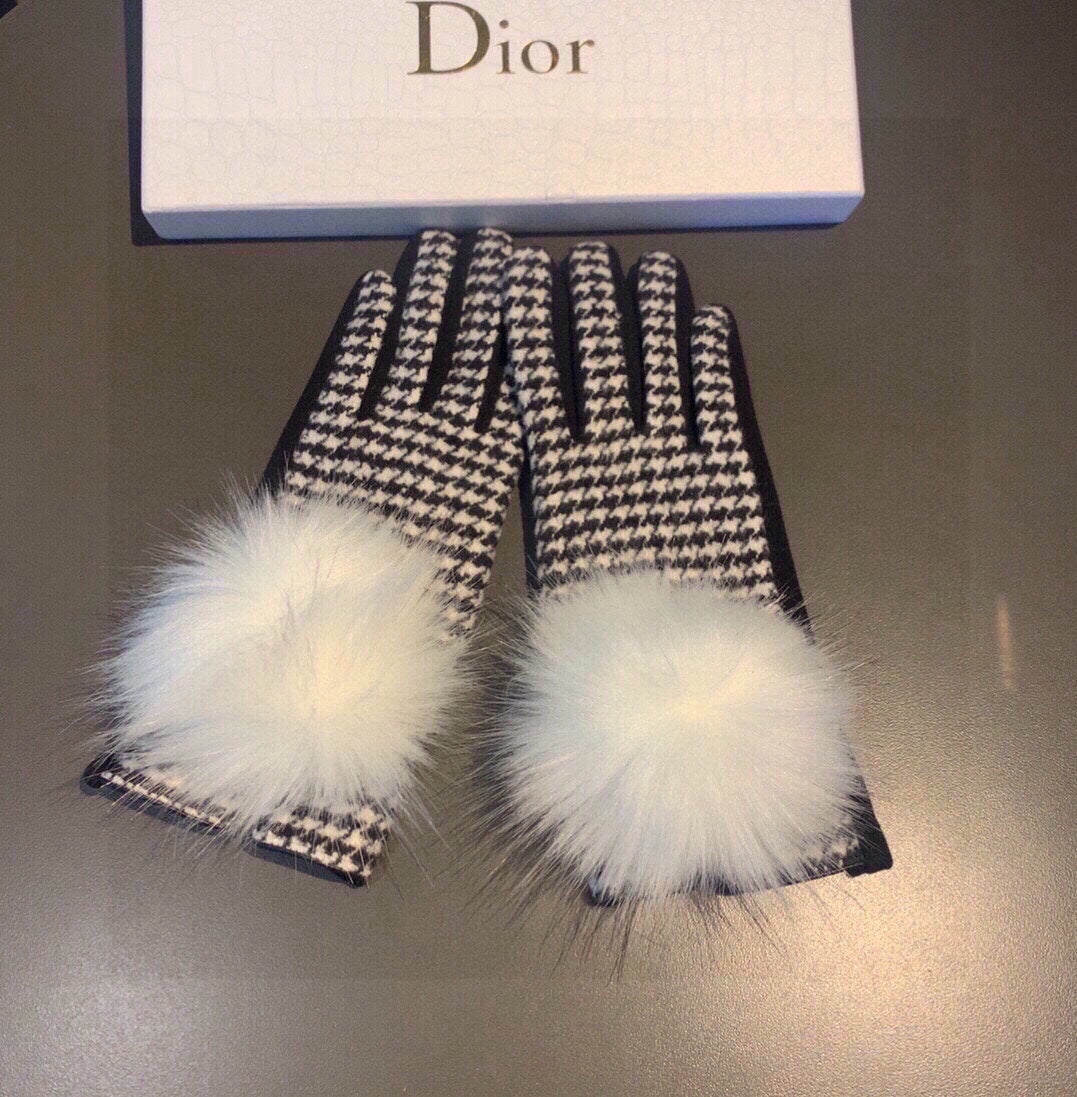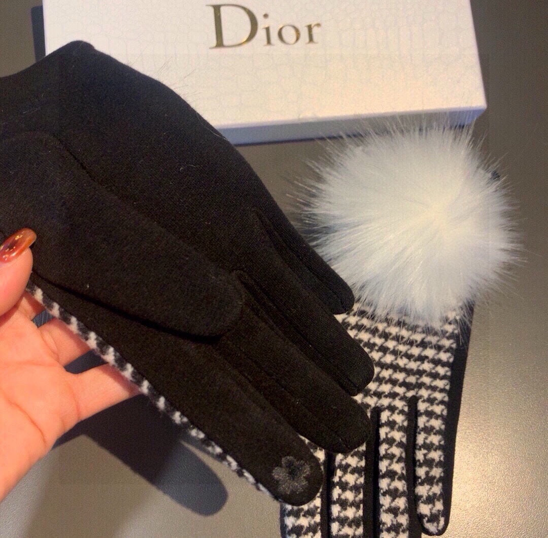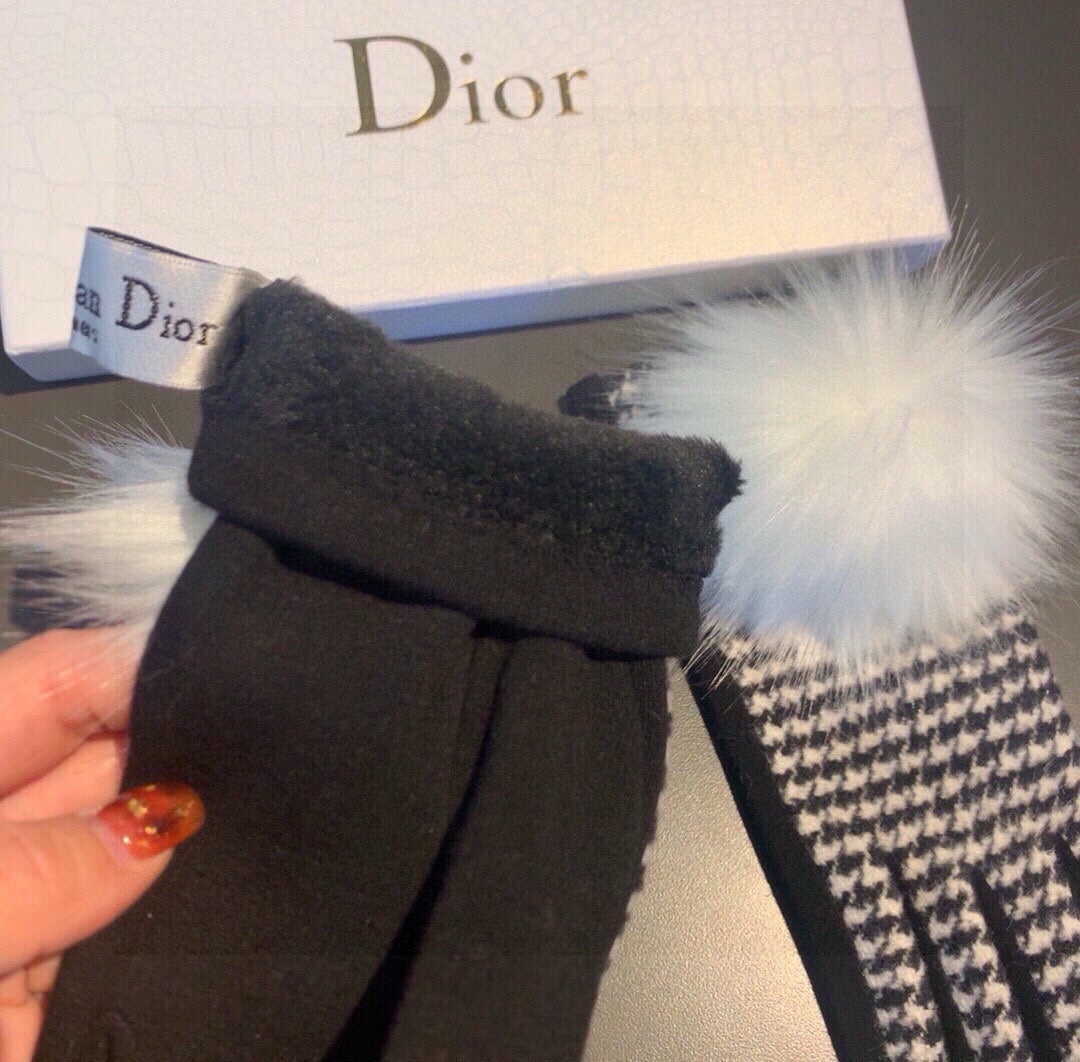 CD WOOL GLOVES WITH FOX FUR BALL BLACK MIX WHITE 397065