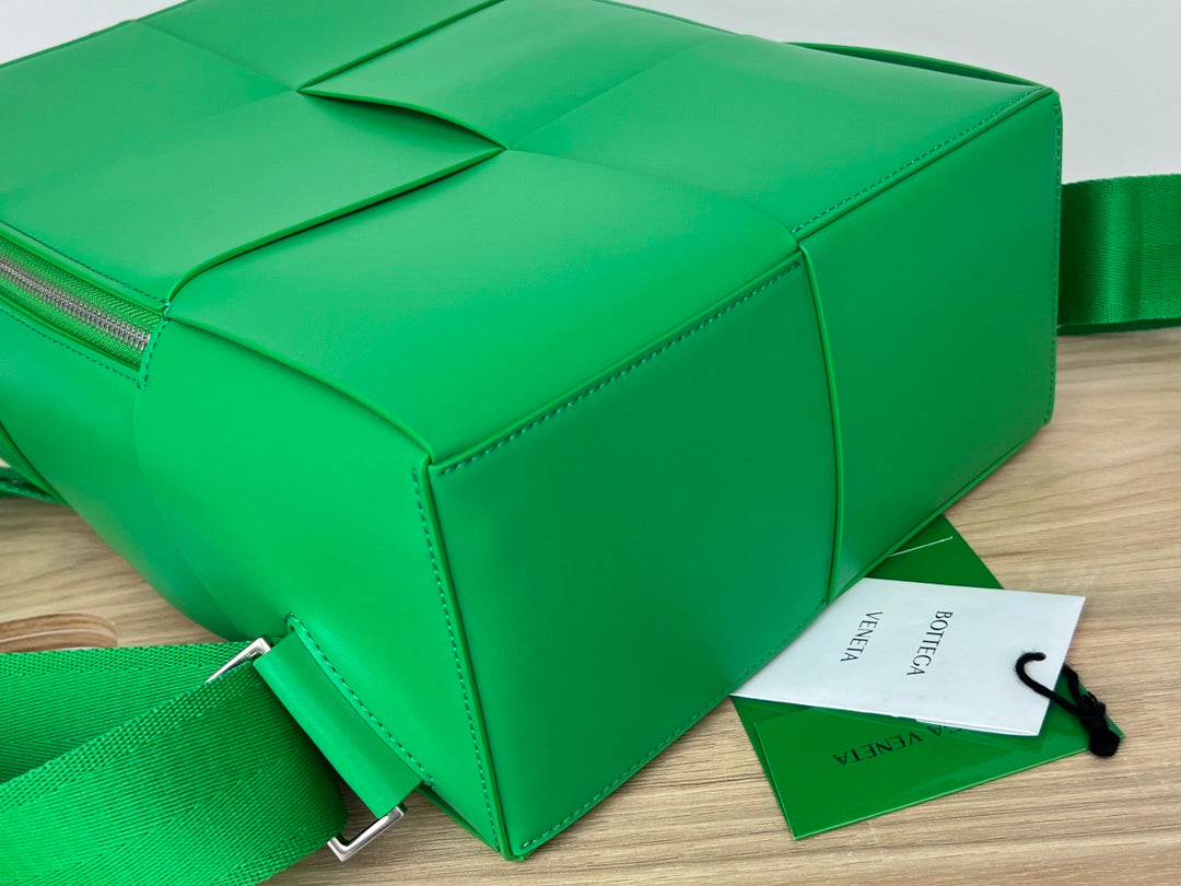 WOVEN BACKPACK 34 IN EMERALD GREEN LAMBSKIN