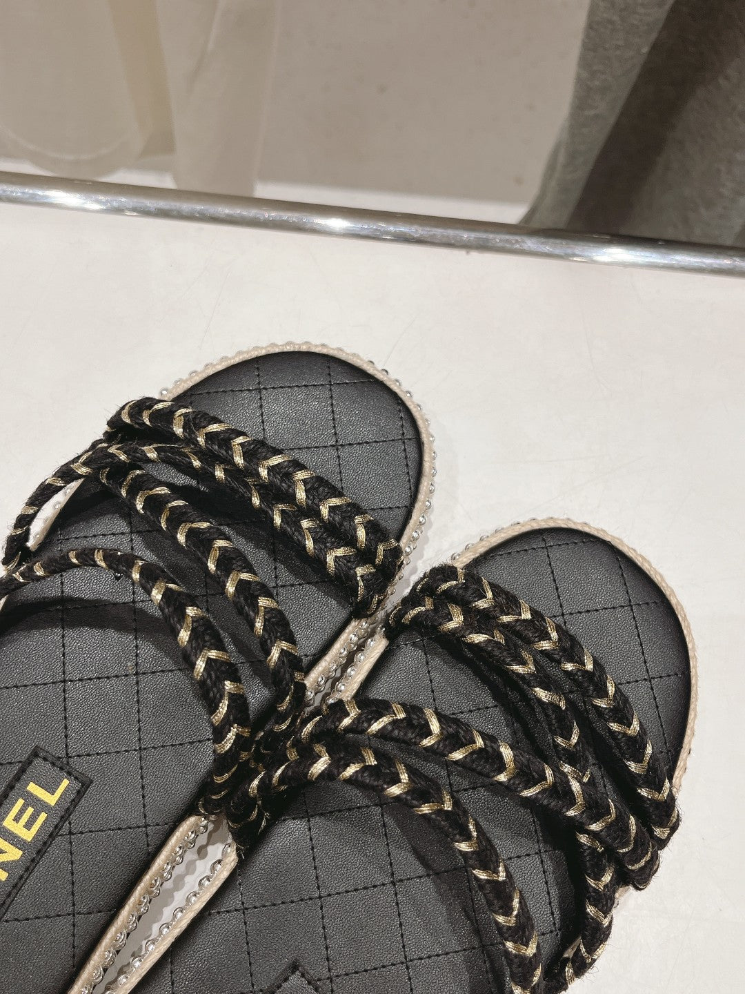 WOVEN STRAP SLIPPERS IN BLACK LAMBSKIN