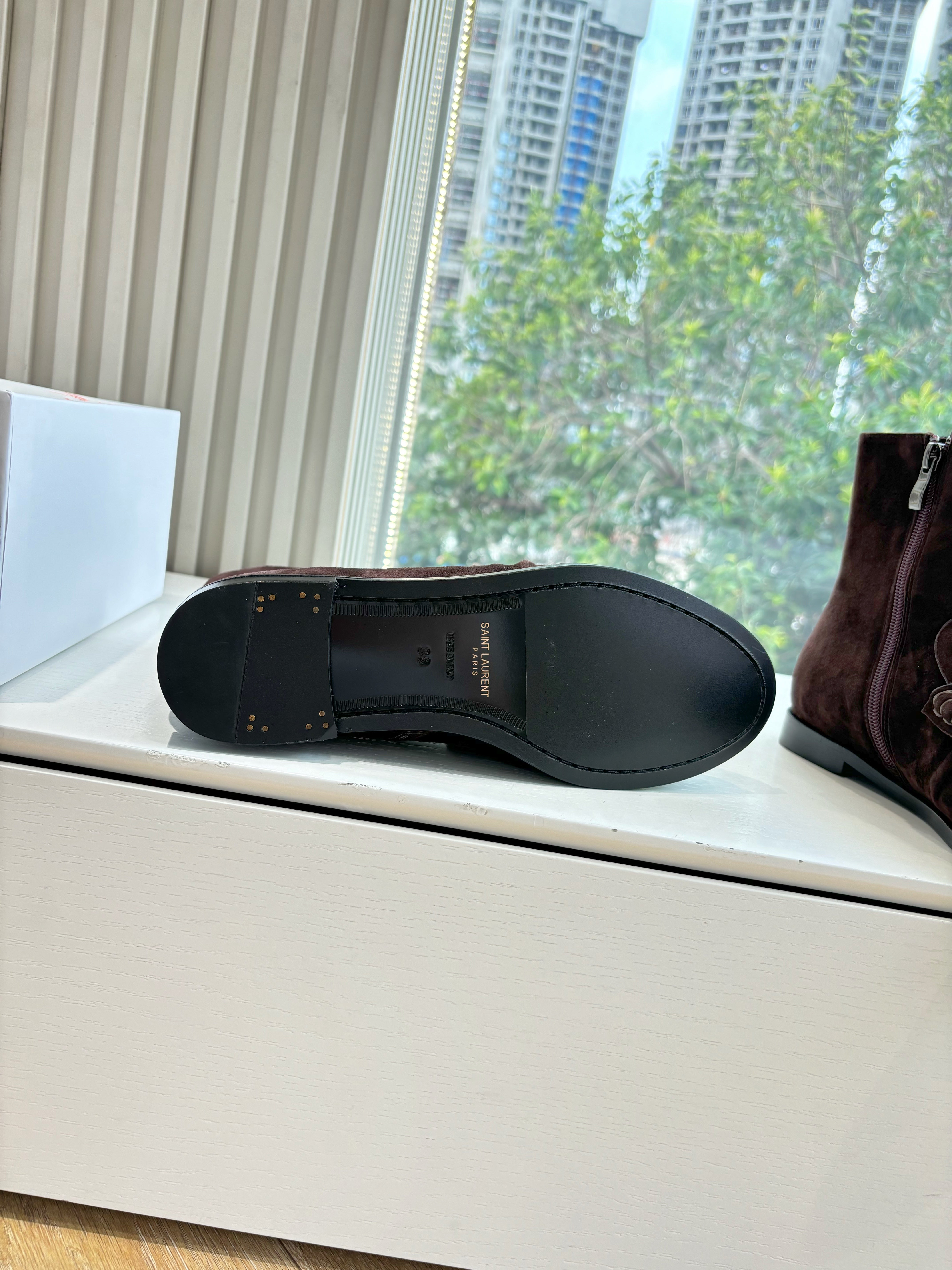 YSL 25S ANKLE FLAT BOOTS IN DARK CHOCOLATE BROWN SUEDE WITH SIDE ZIPPER
