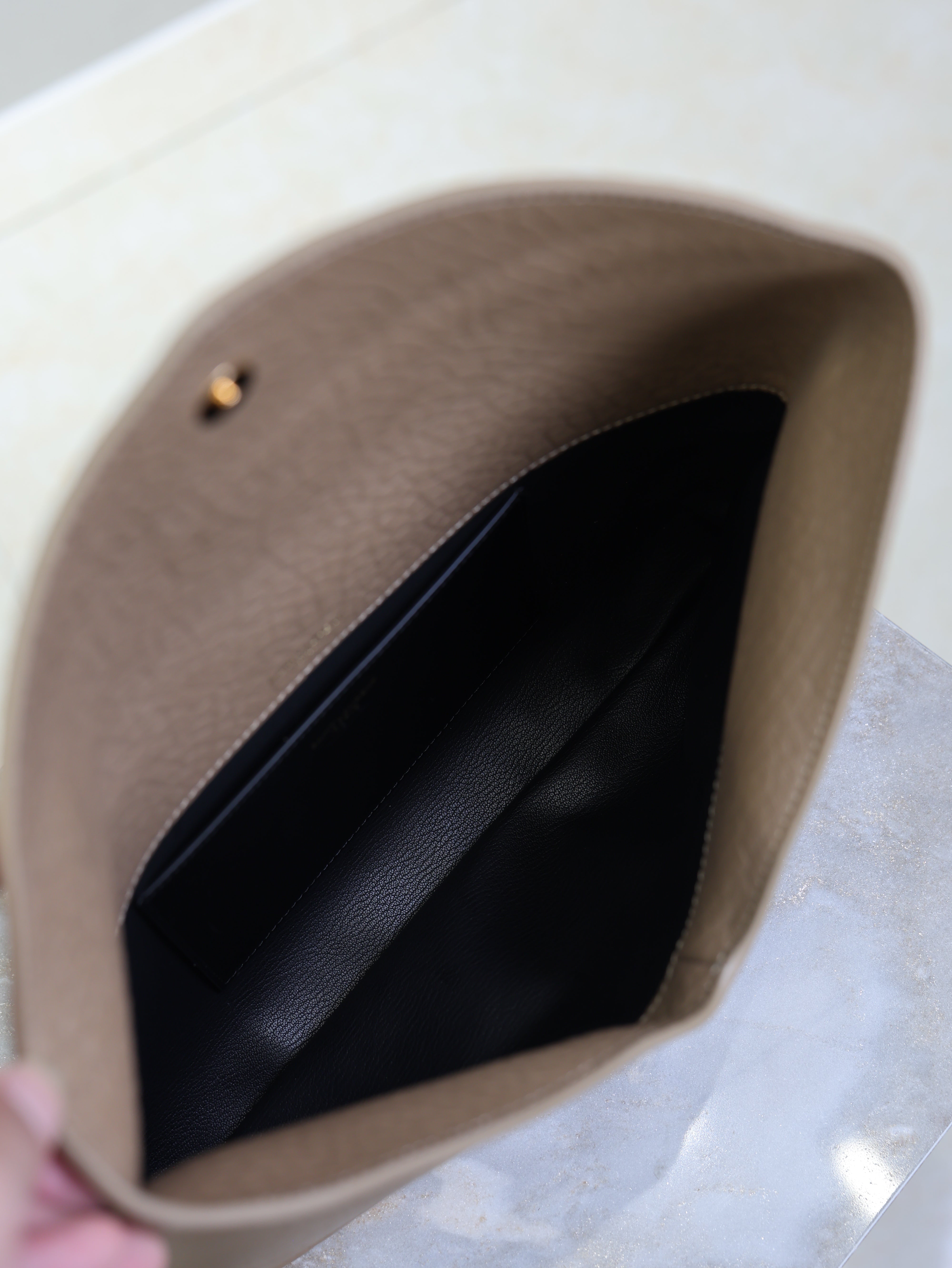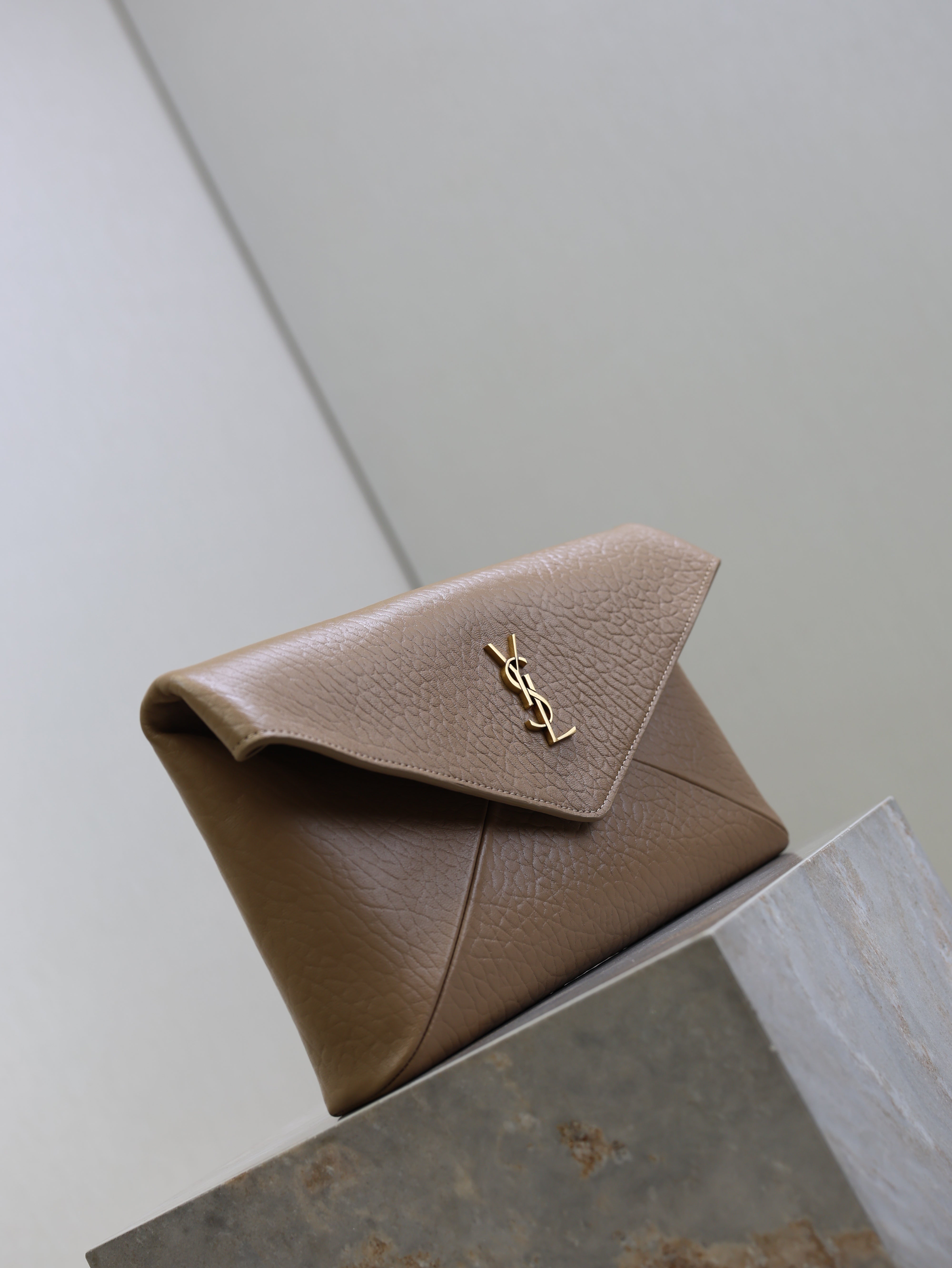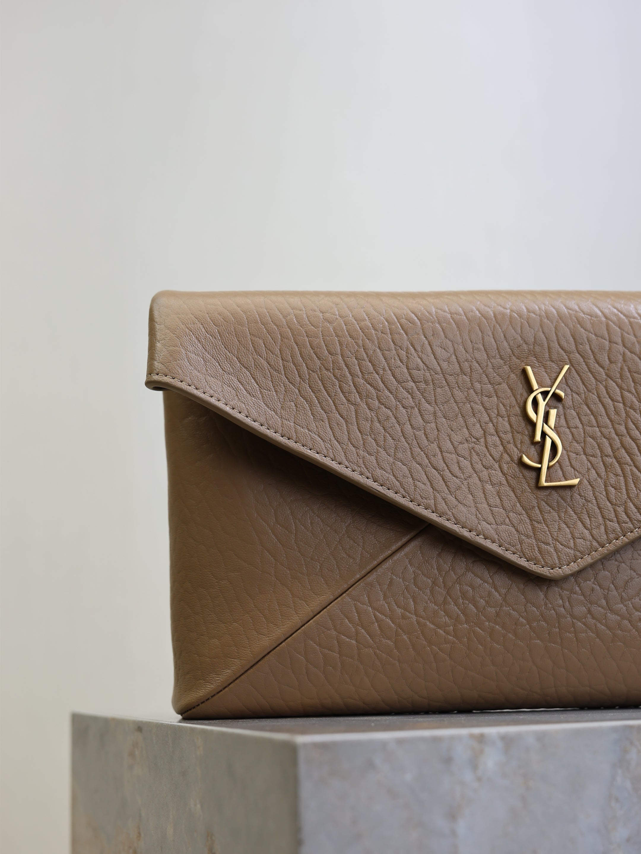 YSL 25S CASSANDRE LARGE ENVELOPE POUCH 29 IN DARK TAUPE CALFSKIN GOLD HARDWRE