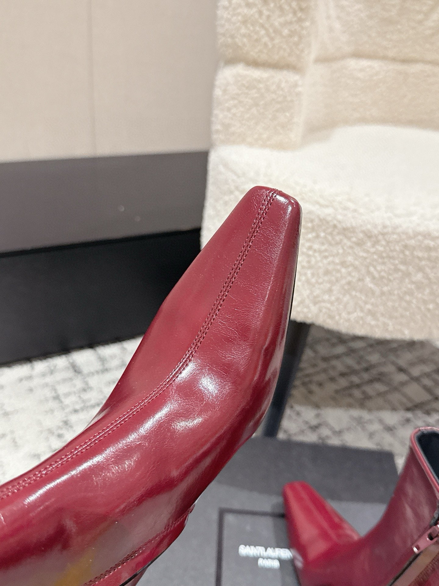 YSL 25S HEELED ANKLE BOOTS 70 MM IN WINE RED SHINY LAMBSKIN