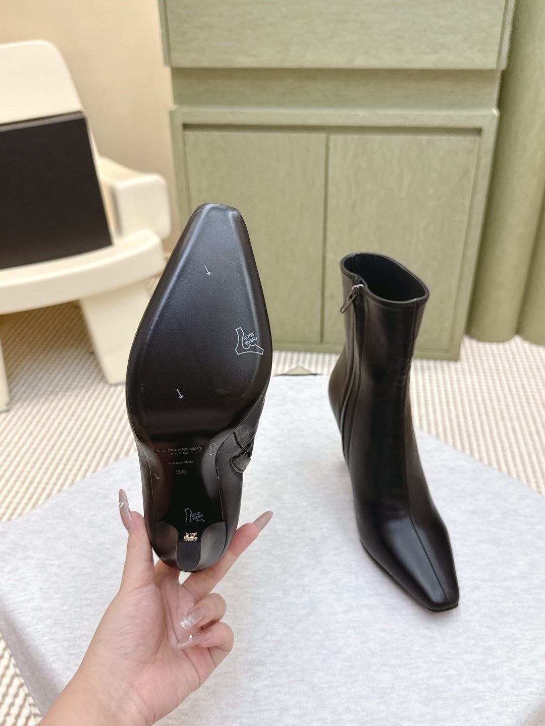 YSL 25S HEELED ANKLE BOOTS 75 MM IN BLACK LAMBSKIN