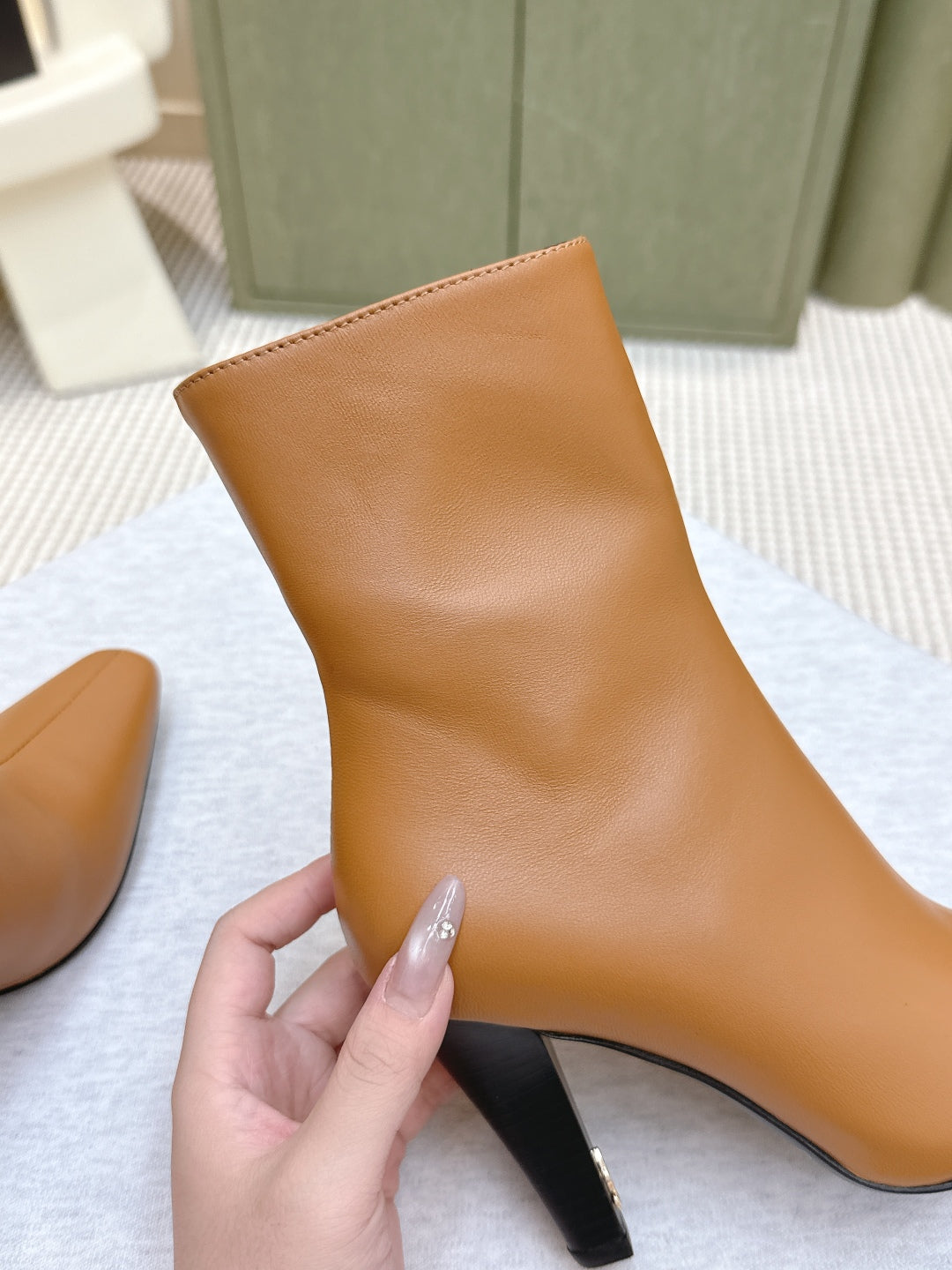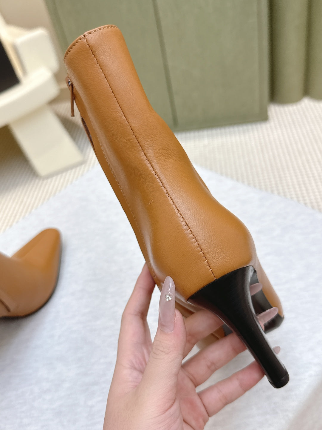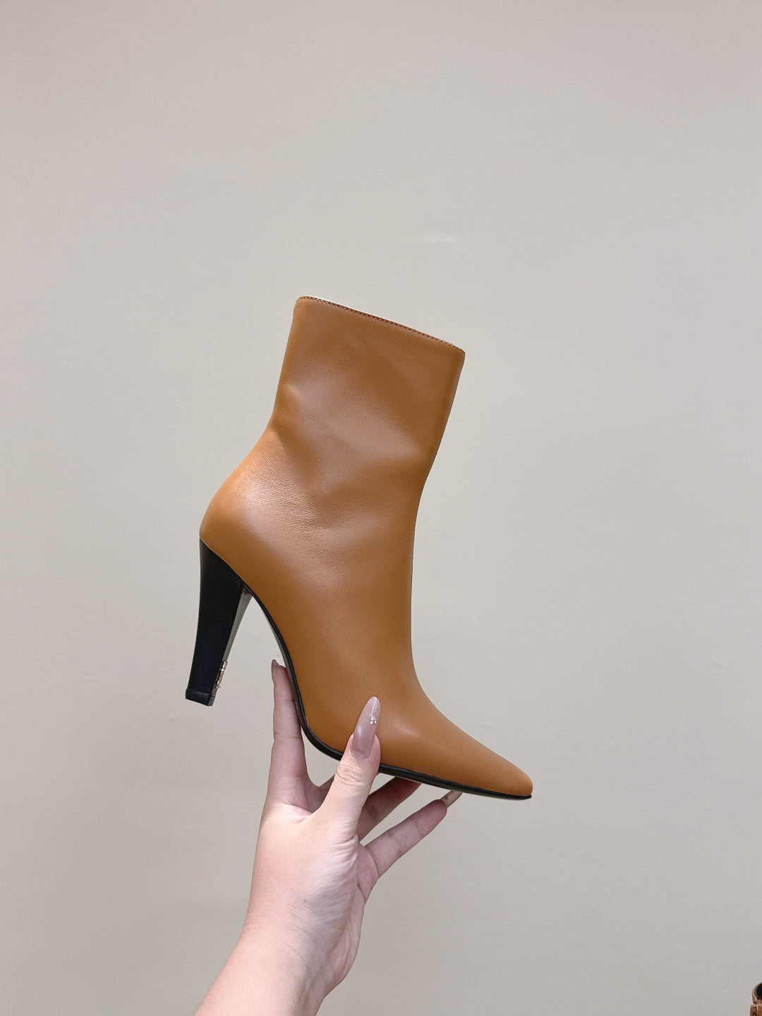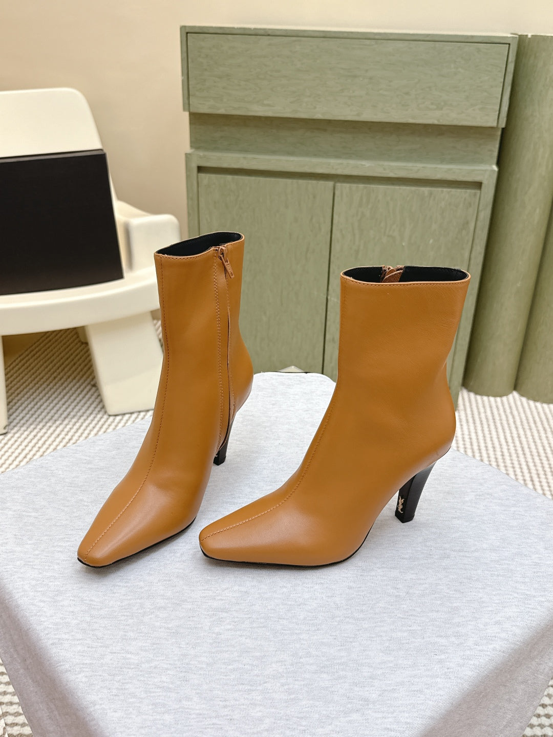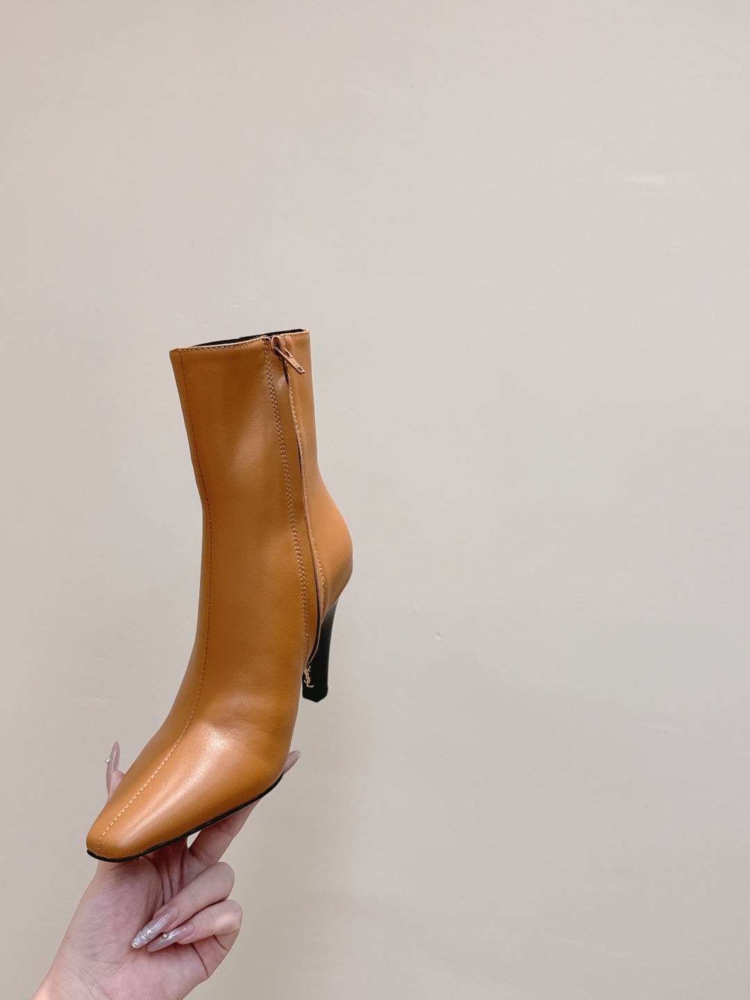 YSL 25S HEELED ANKLE BOOTS 75 MM IN BURNT ORANGE LAMBSKIN