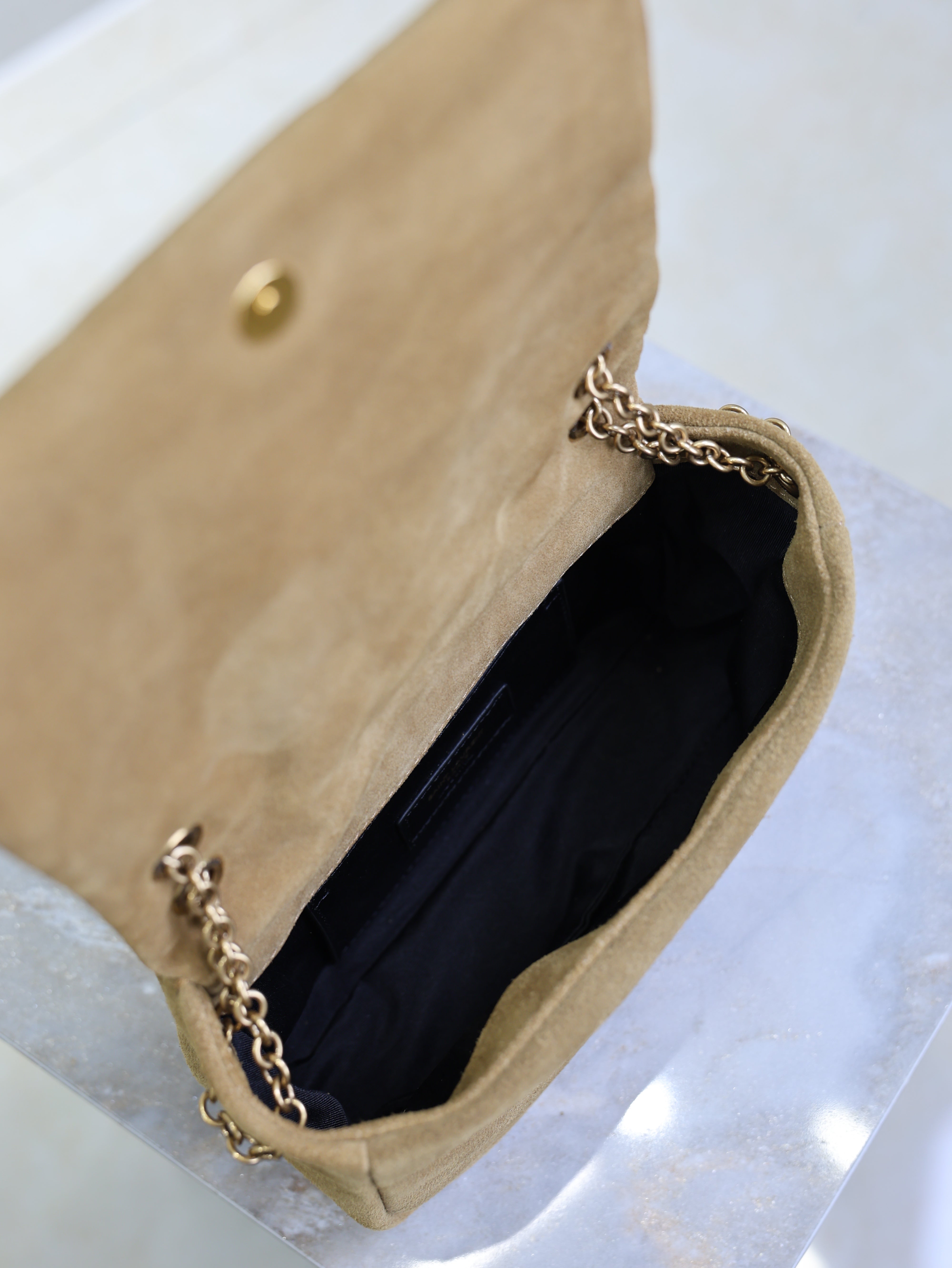 YSL 25S JAMIE 4.3 MINI 20 IN CARAMEL COGNAC SUEDE GOLD HARDWRE
