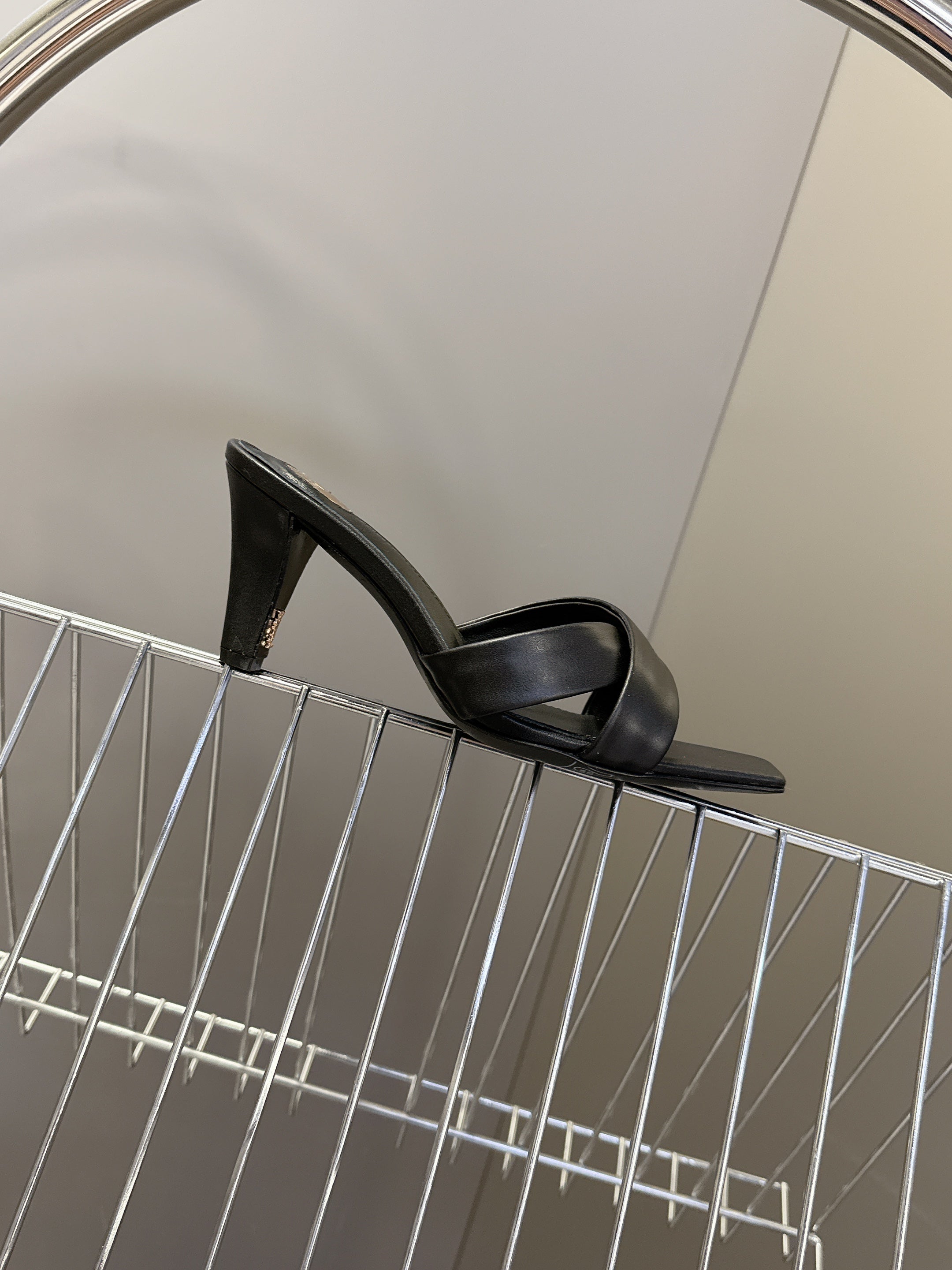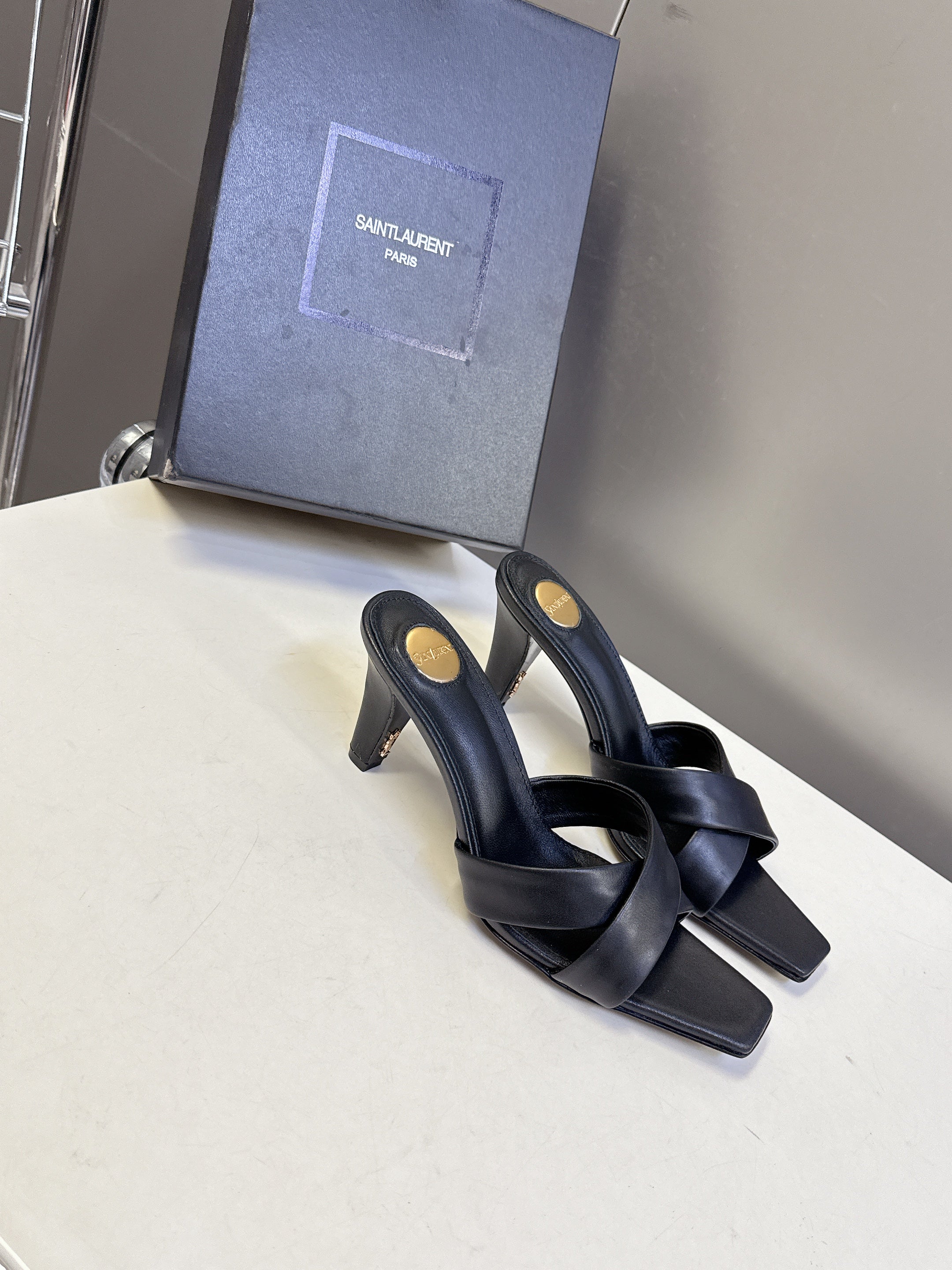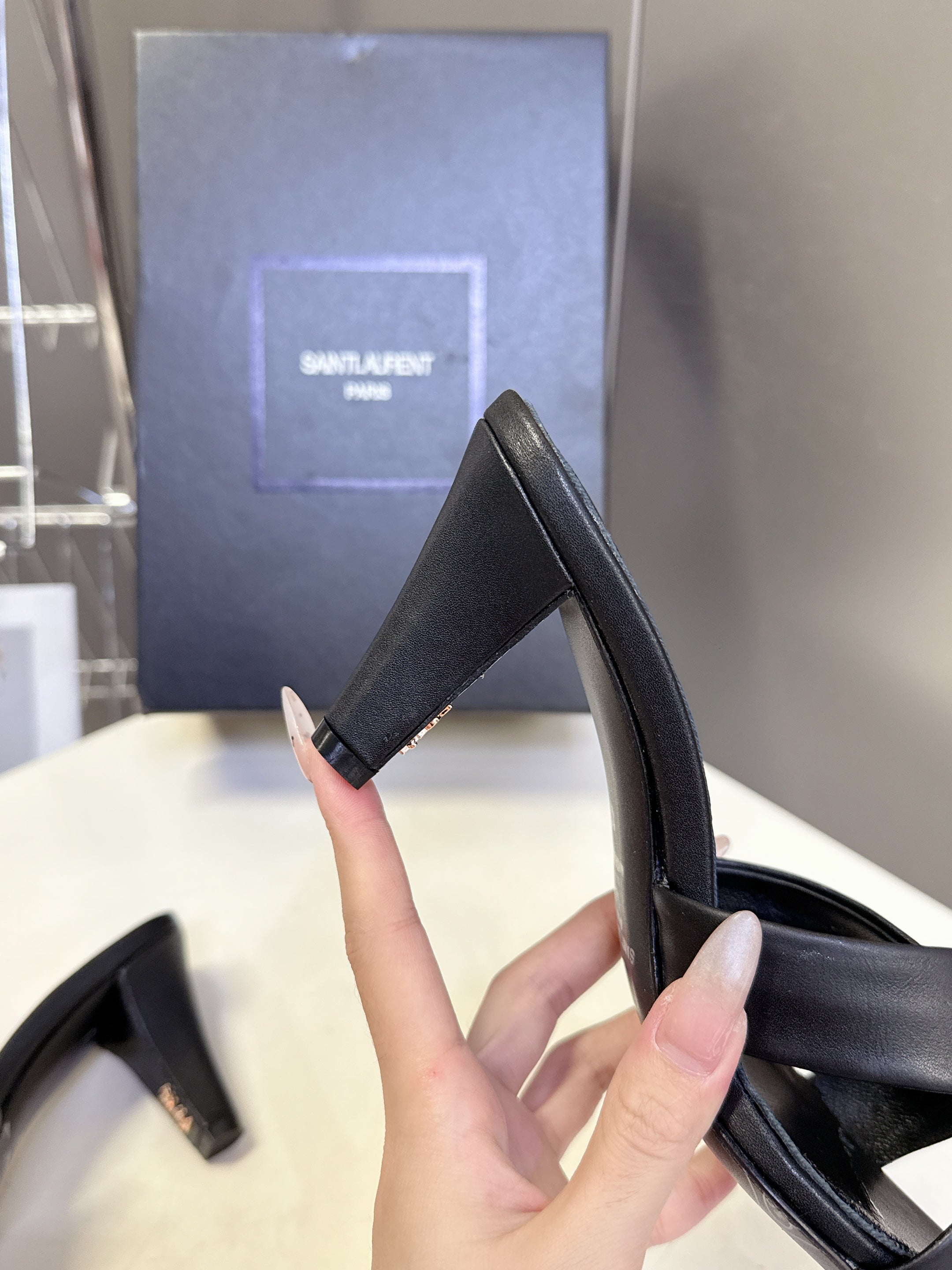 YSL 25S JILL MULES 75MM IN BLACK SMOOTH CALFSKIN
