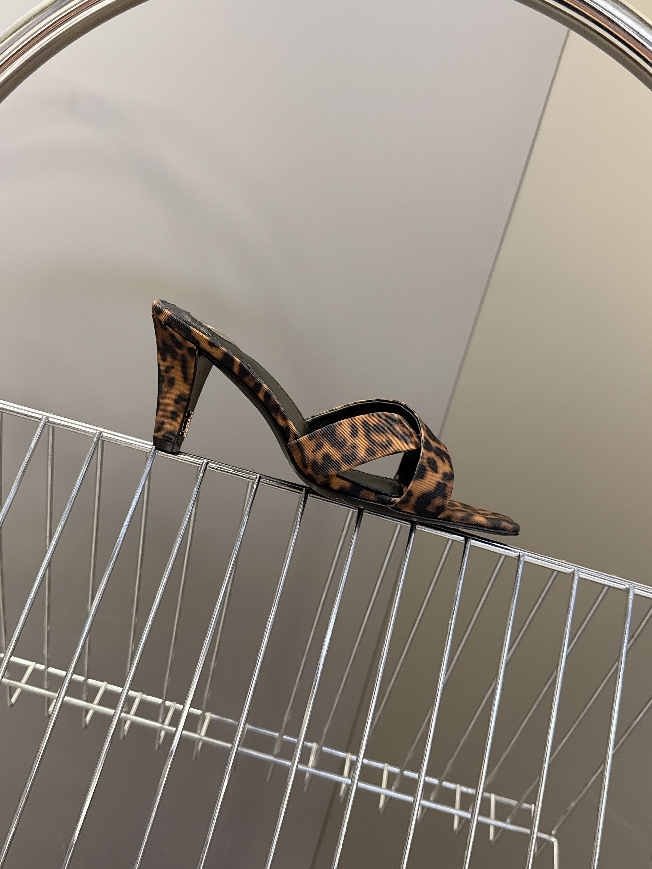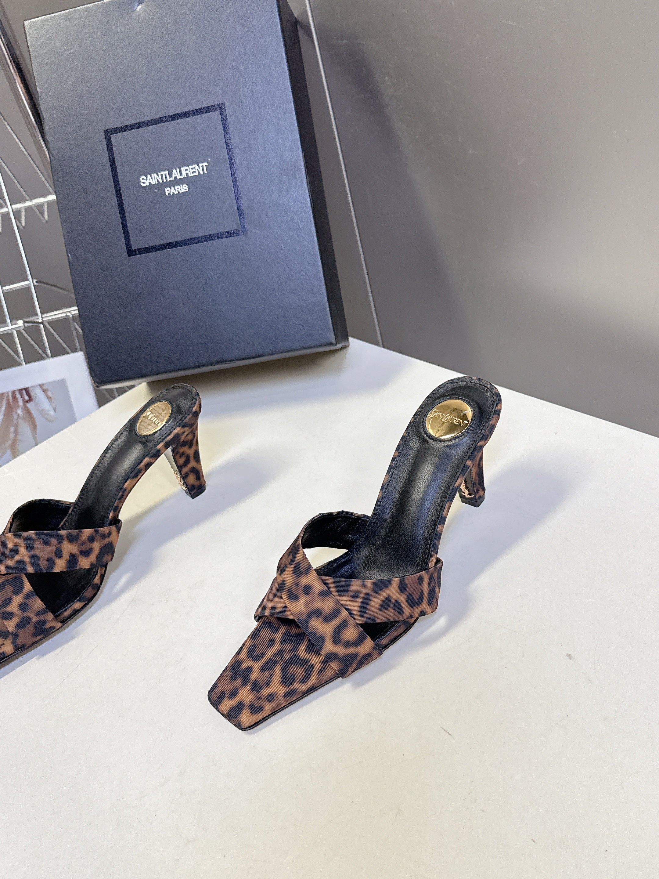 YSL 25S JILL MULES 75MM IN LEOPARD PRINT SMOOTH CALFSKIN
