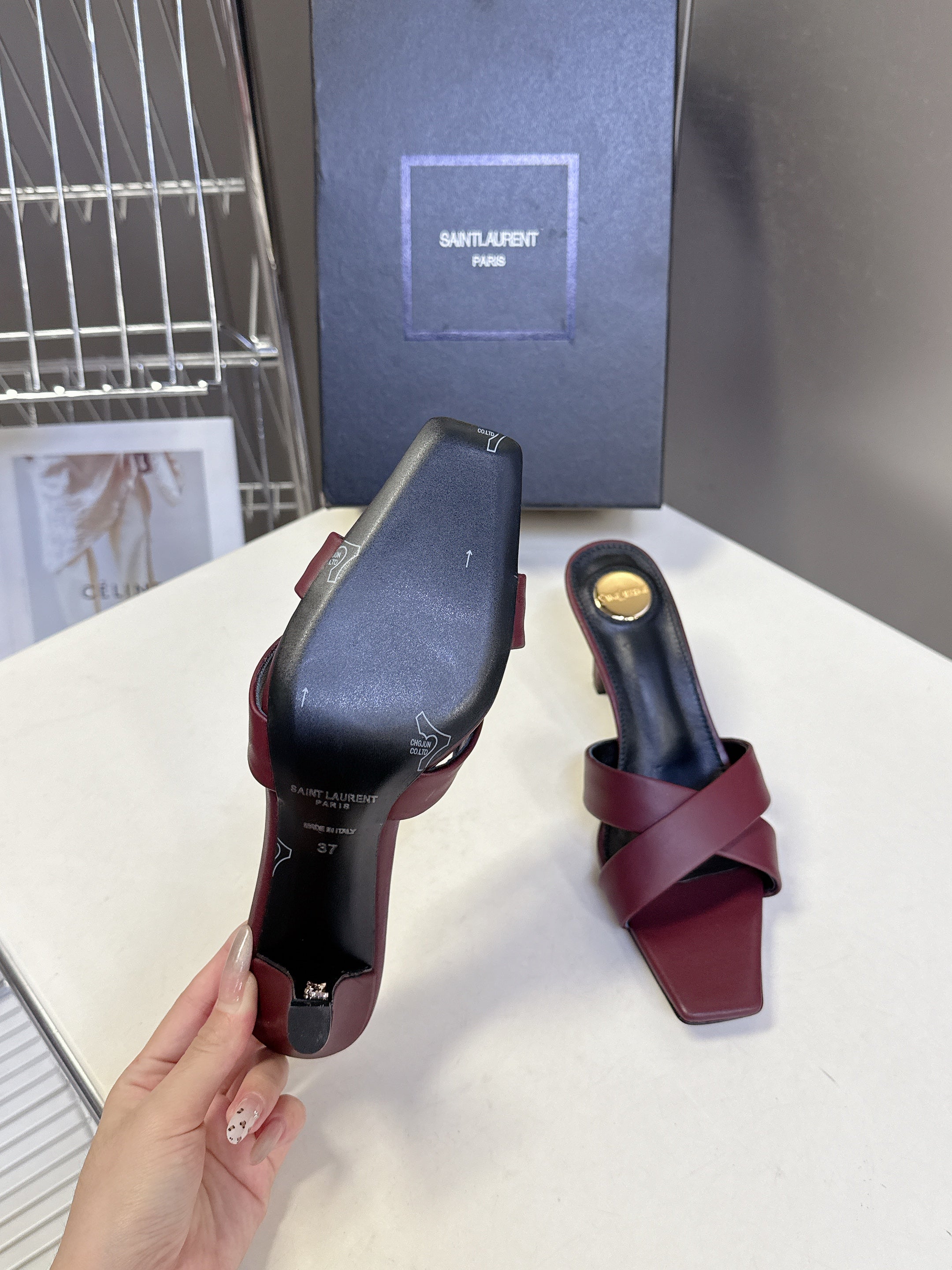 YSL 25S JILL MULES 75MM IN MAHOGANY RED SMOOTH CALFSKIN