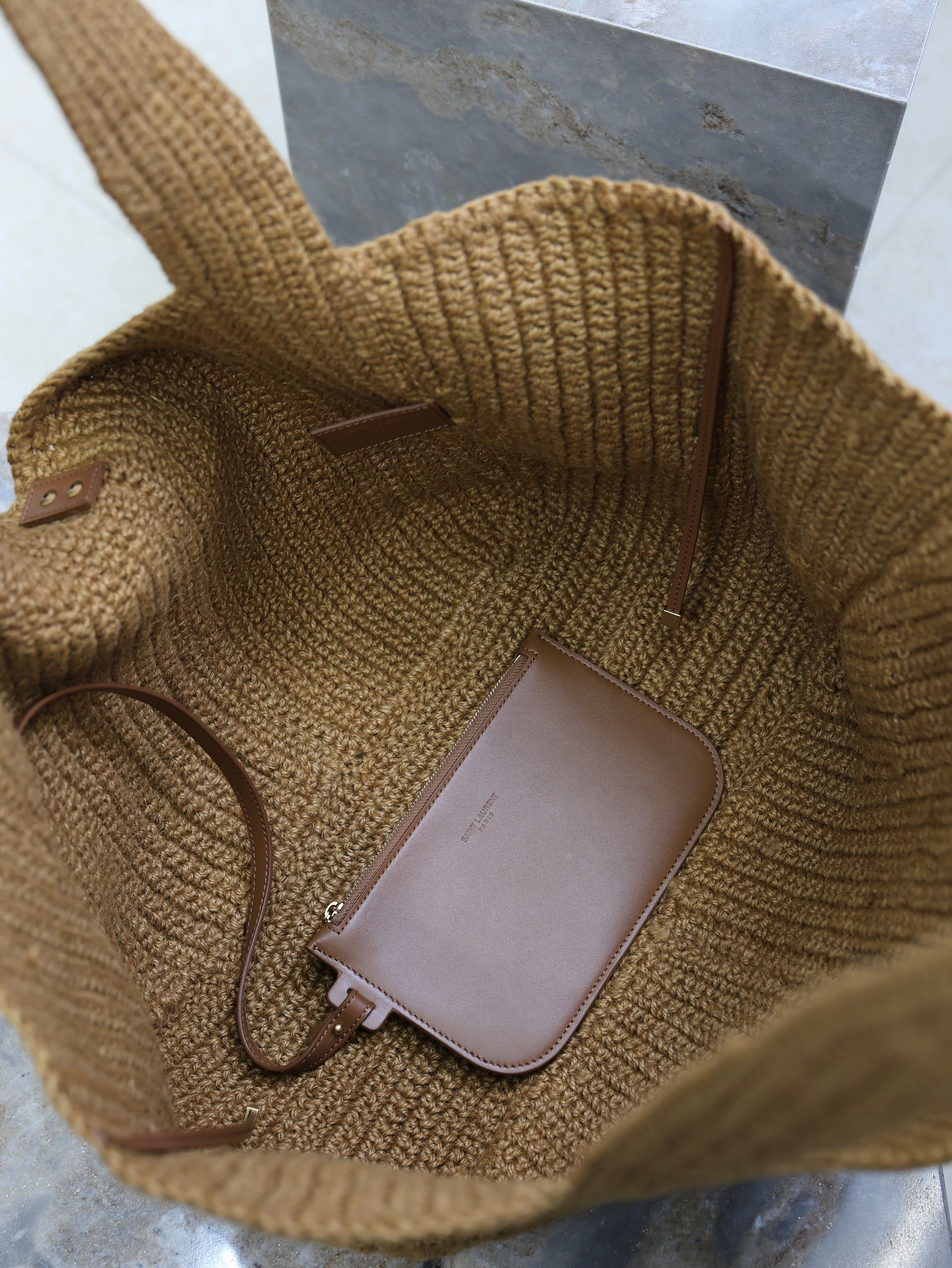 YSL 25S LE 5 À 7 BEA 50 IN NATURAL BROWN CORD AND CALFSKIN GOLD HARDWRE