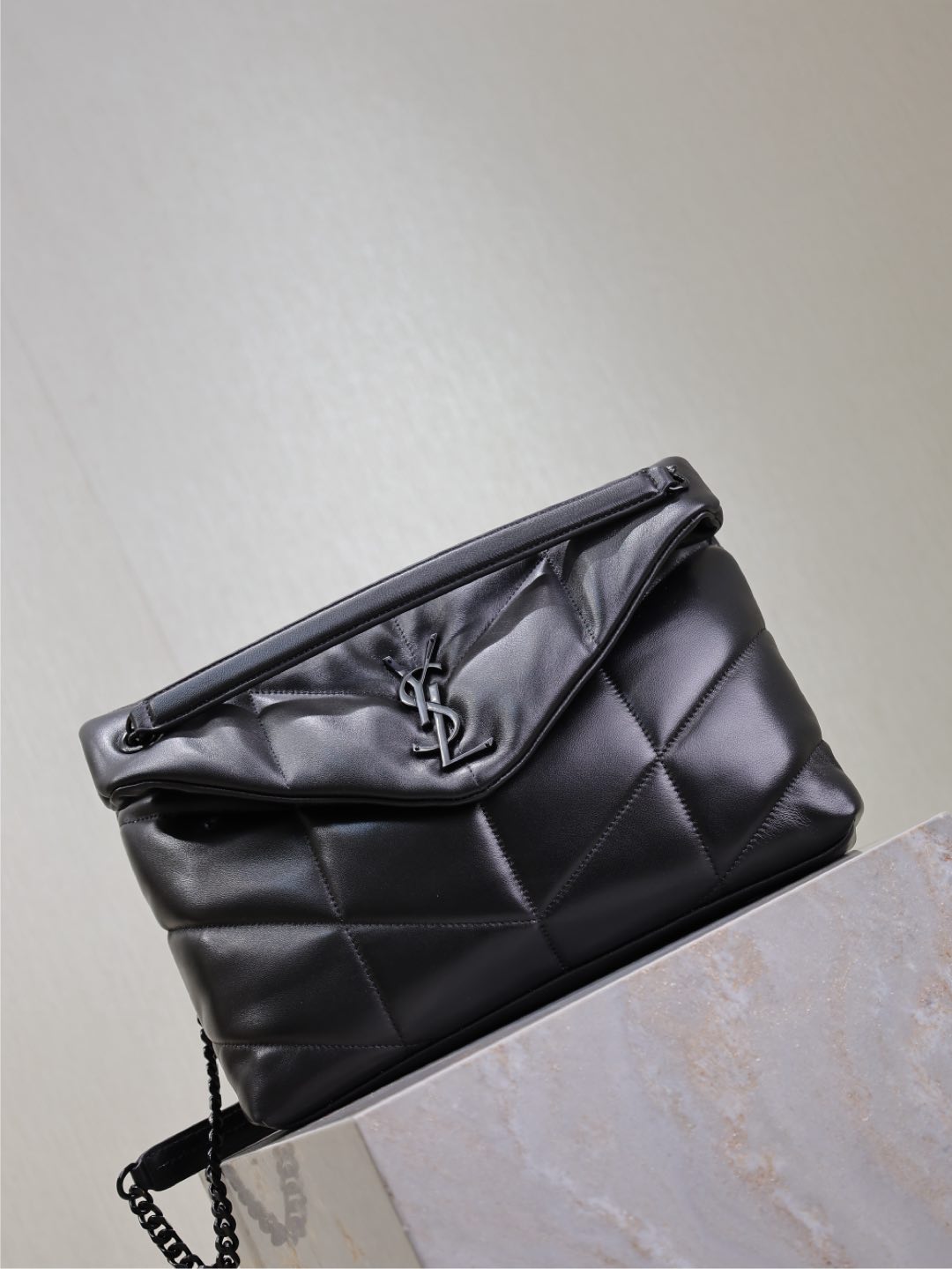 YSL 25S LOULOU PUFFER GM 35 IN BLACK CALFSKIN BLACK HARDWRE