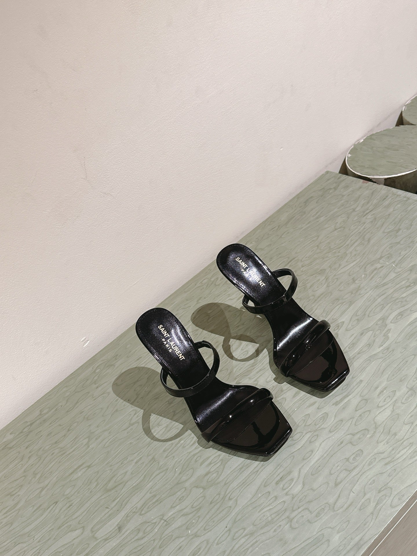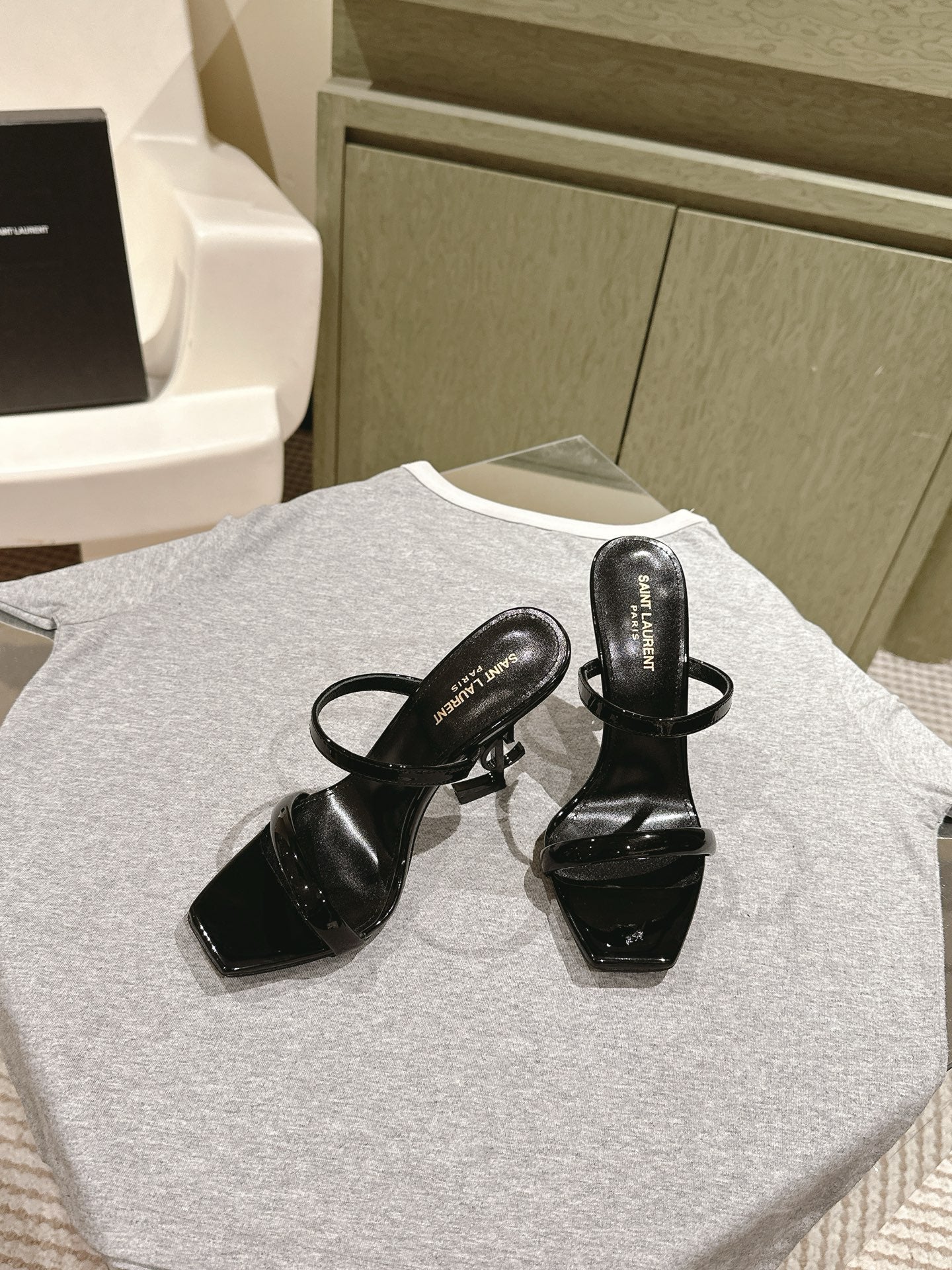 YSL 25S OPYUM HIGH-HEEL SANDALS 100 MM IN BLACK LAMBSKIN