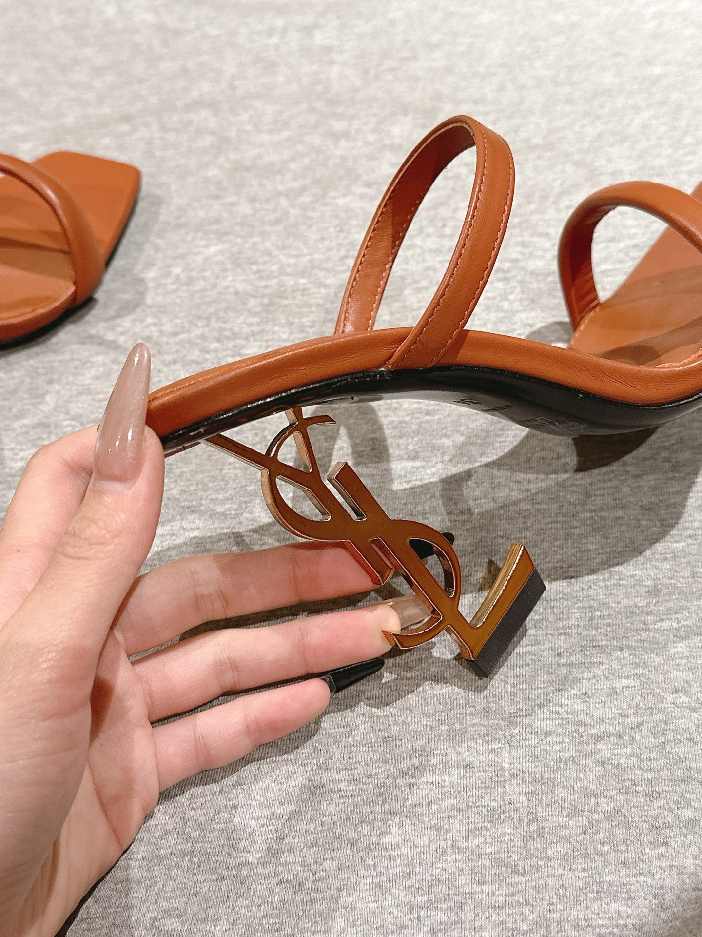 YSL 25S OPYUM HIGH-HEEL SANDALS 100 MM IN BURNT ORANGE BROWN LAMBSKIN